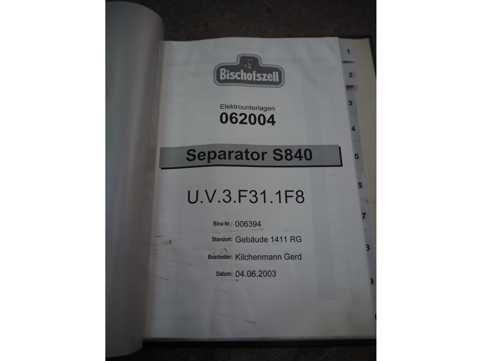 Hoegger Alpina separator, type: S840, plate diameter: 300 mm, dimensions separator: 1450 mm x 1200 mm x 2470 mm, dimensions switch cabinet: 1000 mm x 800 mm x 350 mm.