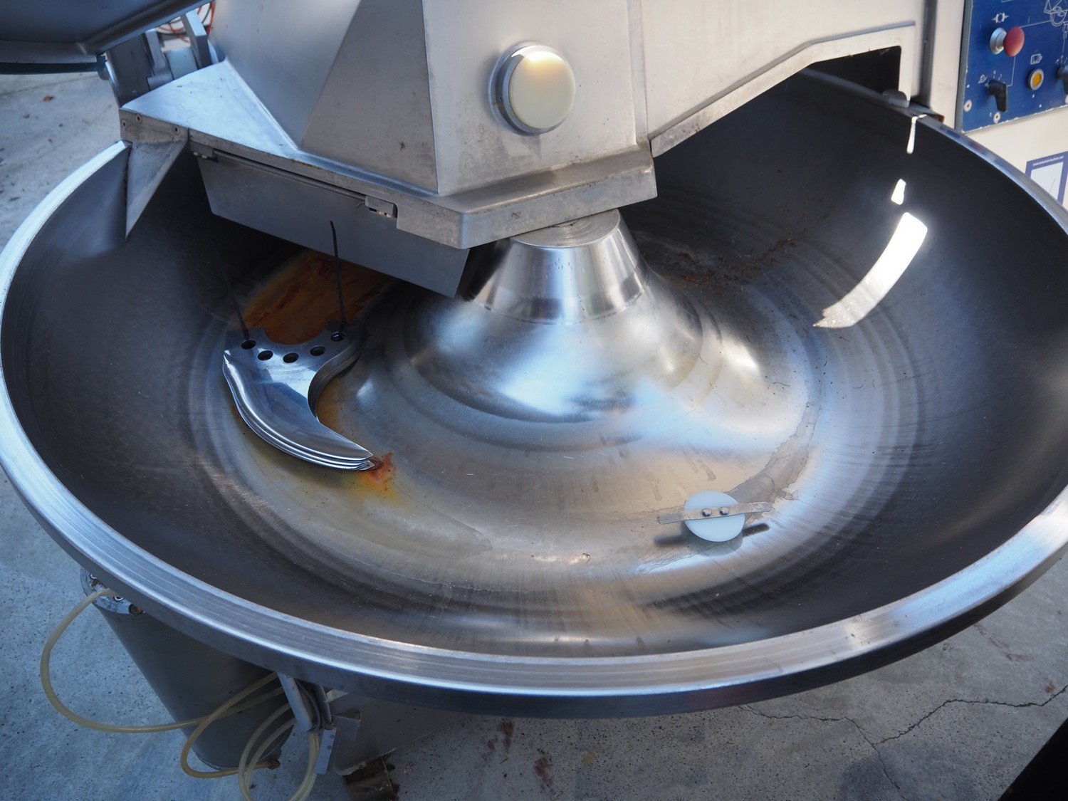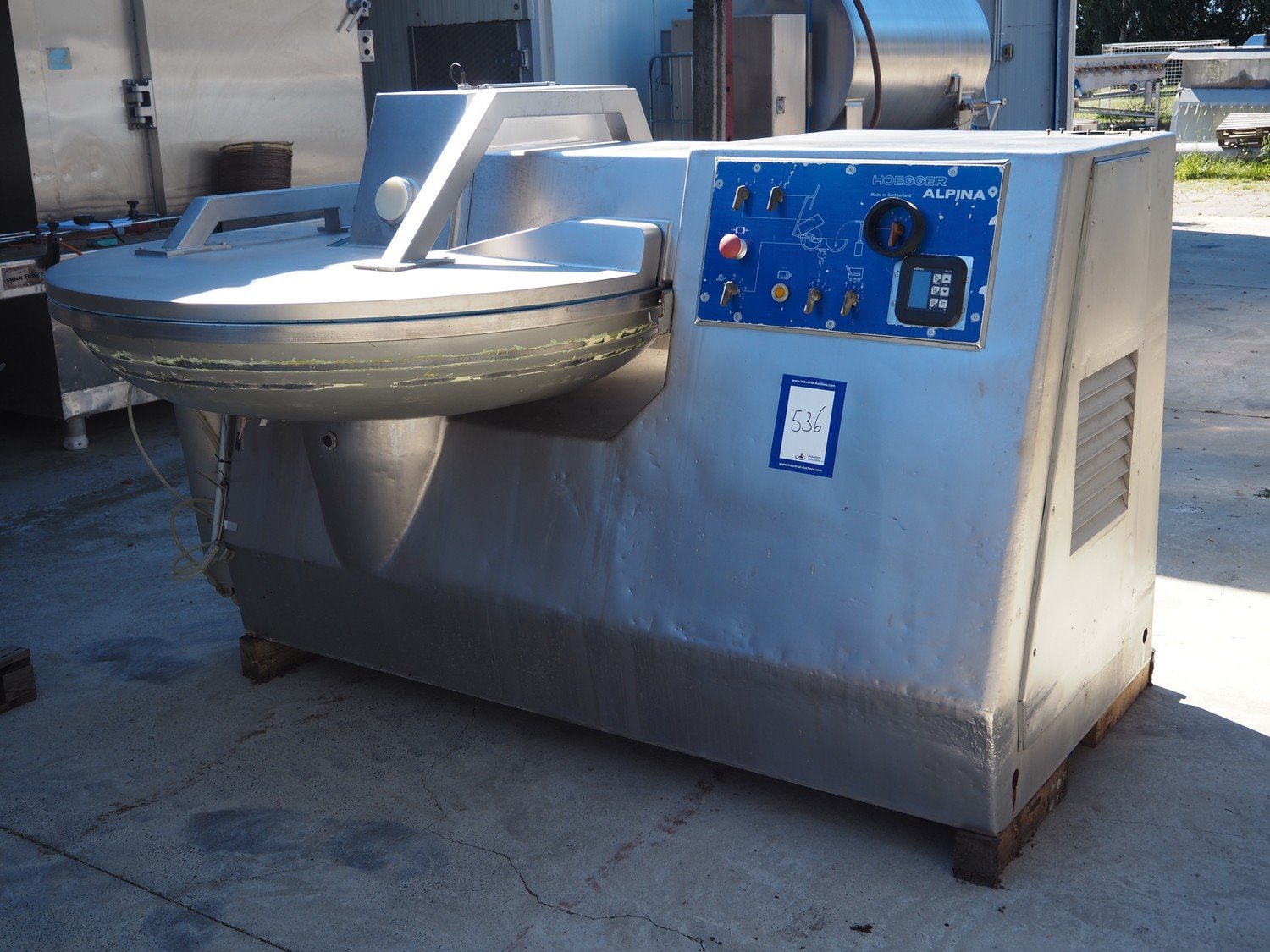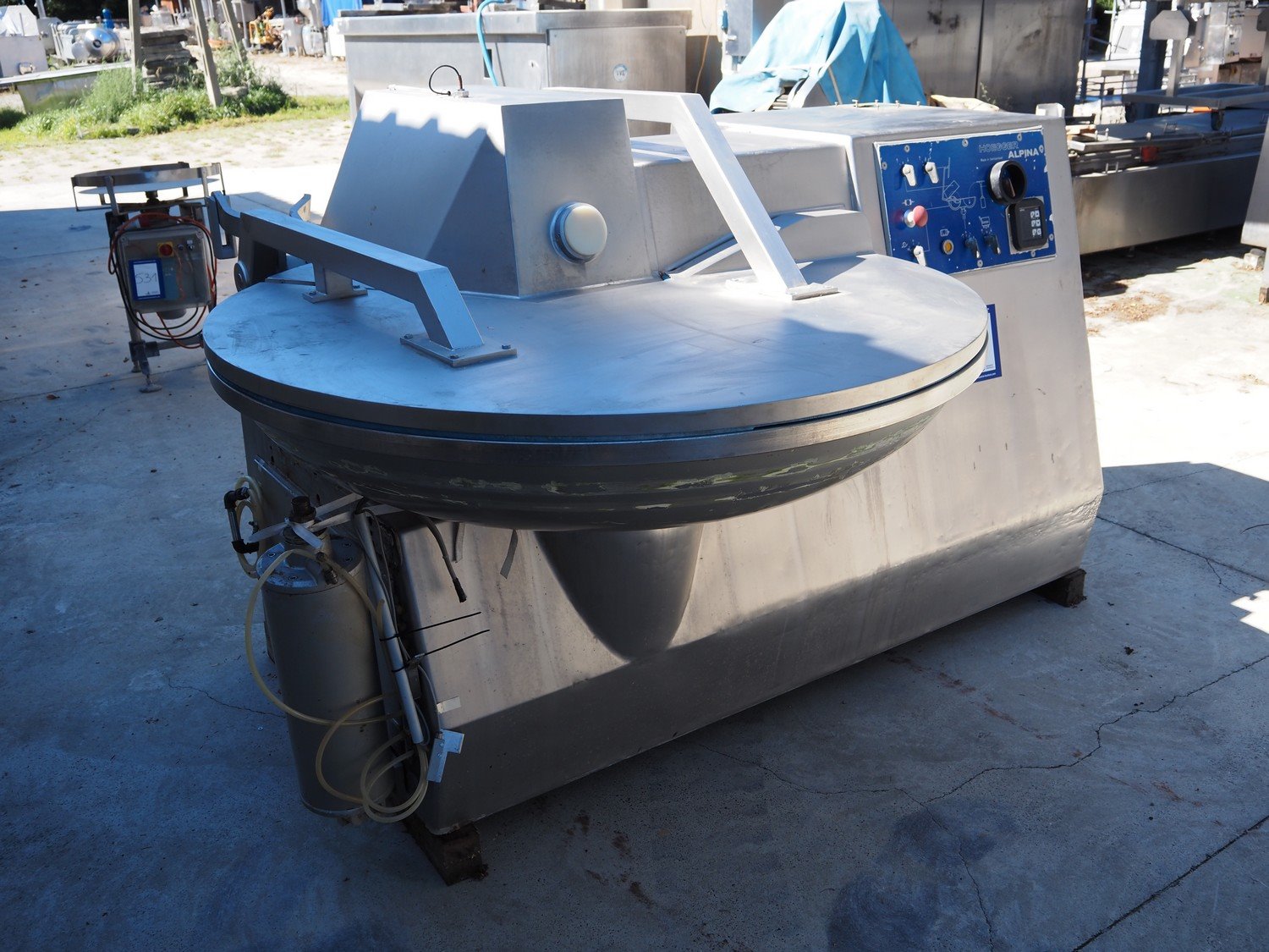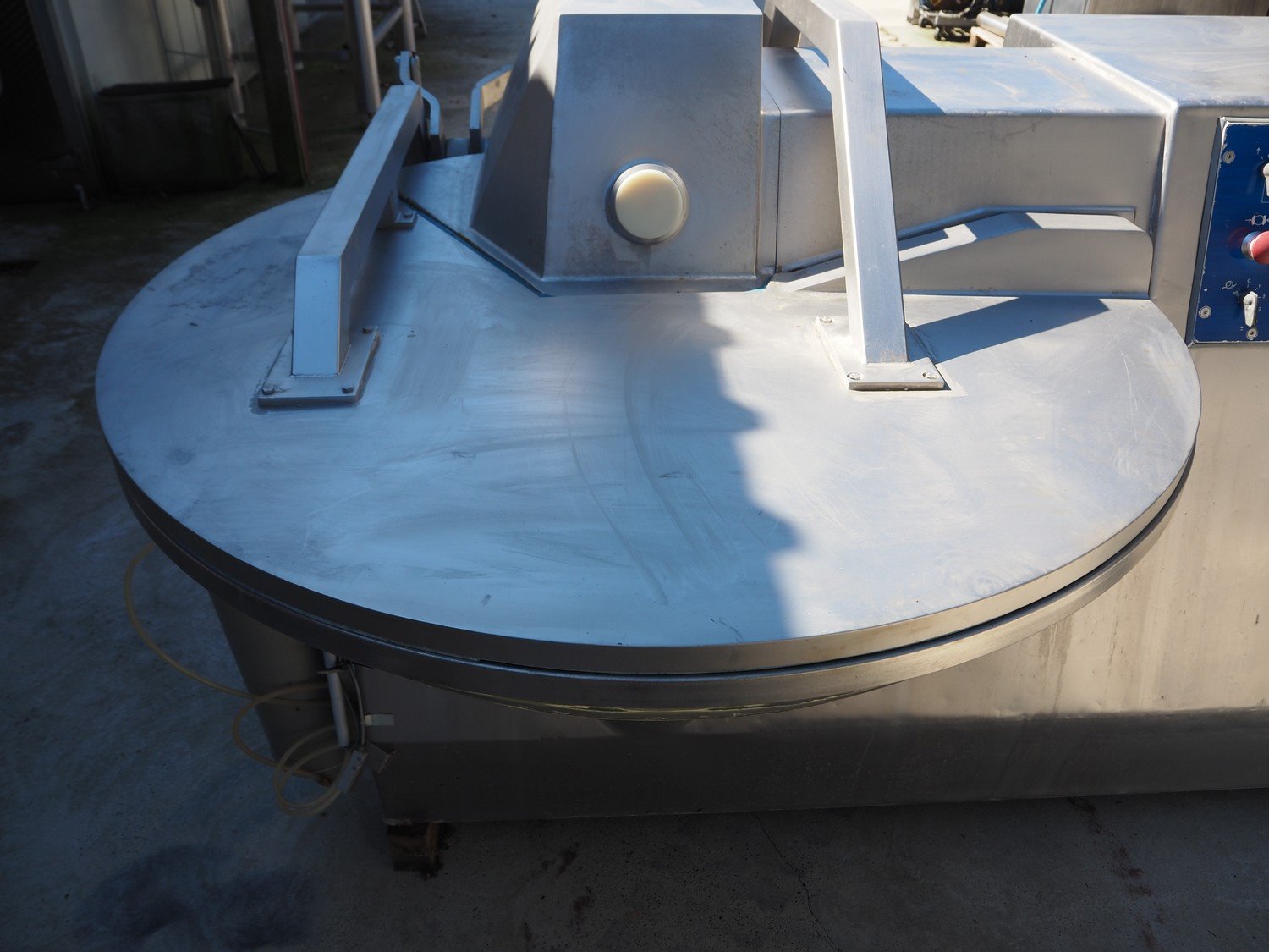 Hoegger Alpina bowl cutter with ejector, type: 300 990, number: 812069, 380 V, 3 Ph, 50 Hz, s/s bowl and knives, dimensions bowl: Ø 1460 mm x 230 mm, total dimensions: 2300 mm x 1700 mm x 1600 mm.