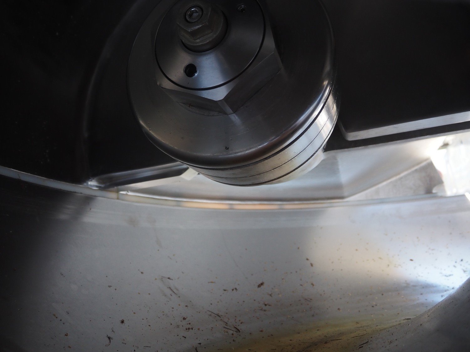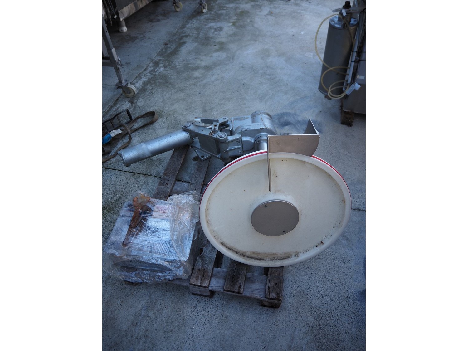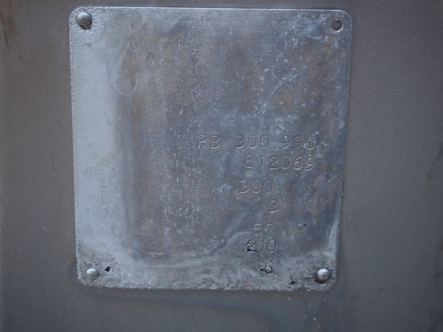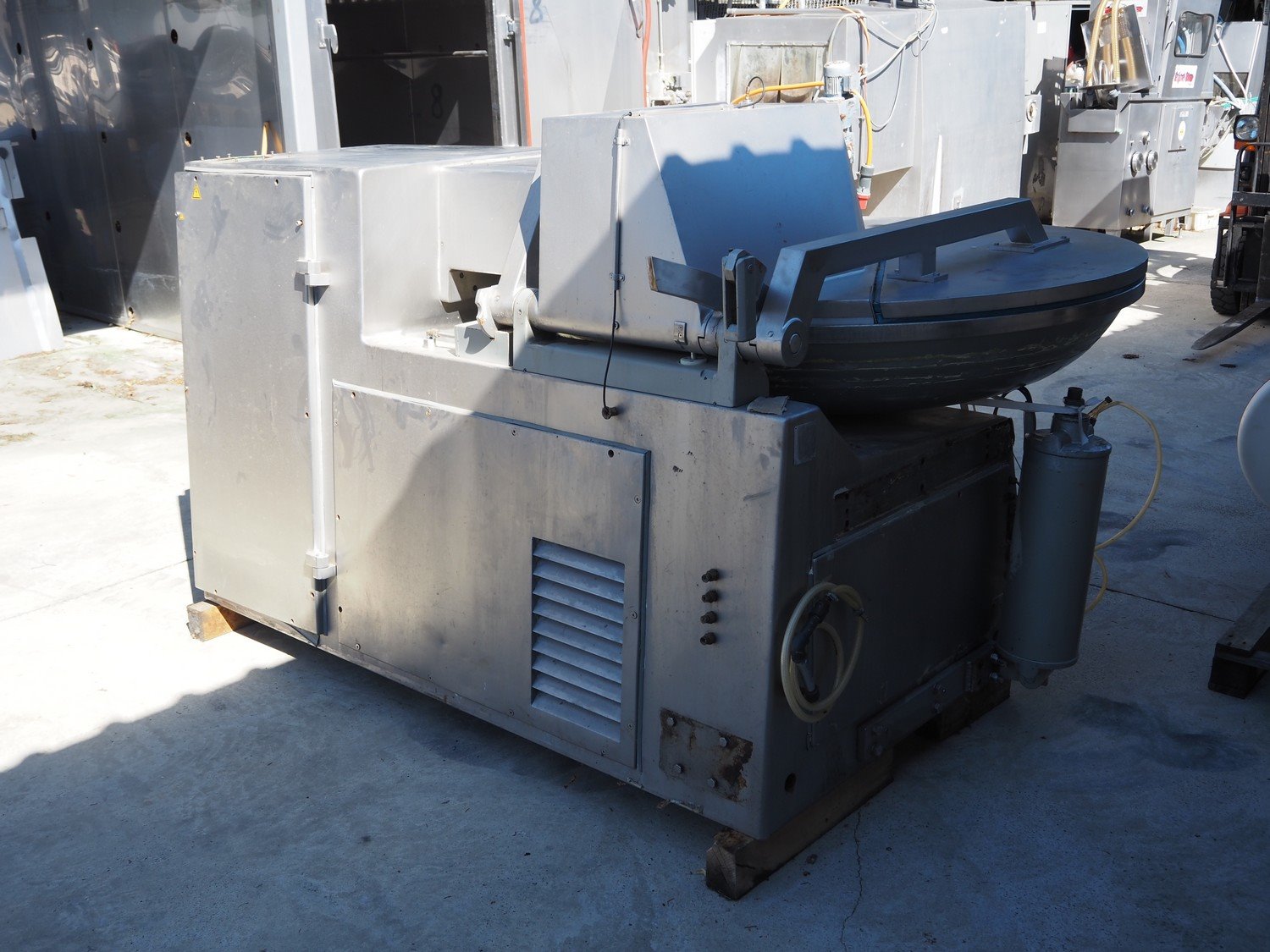 Hoegger Alpina bowl cutter with ejector, type: 300 990, number: 812069, 380 V, 3 Ph, 50 Hz, s/s bowl and knives, dimensions bowl: Ø 1460 mm x 230 mm, total dimensions: 2300 mm x 1700 mm x 1600 mm.