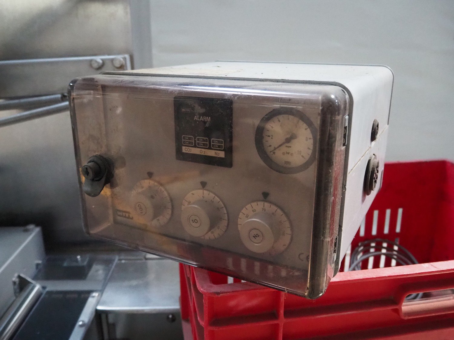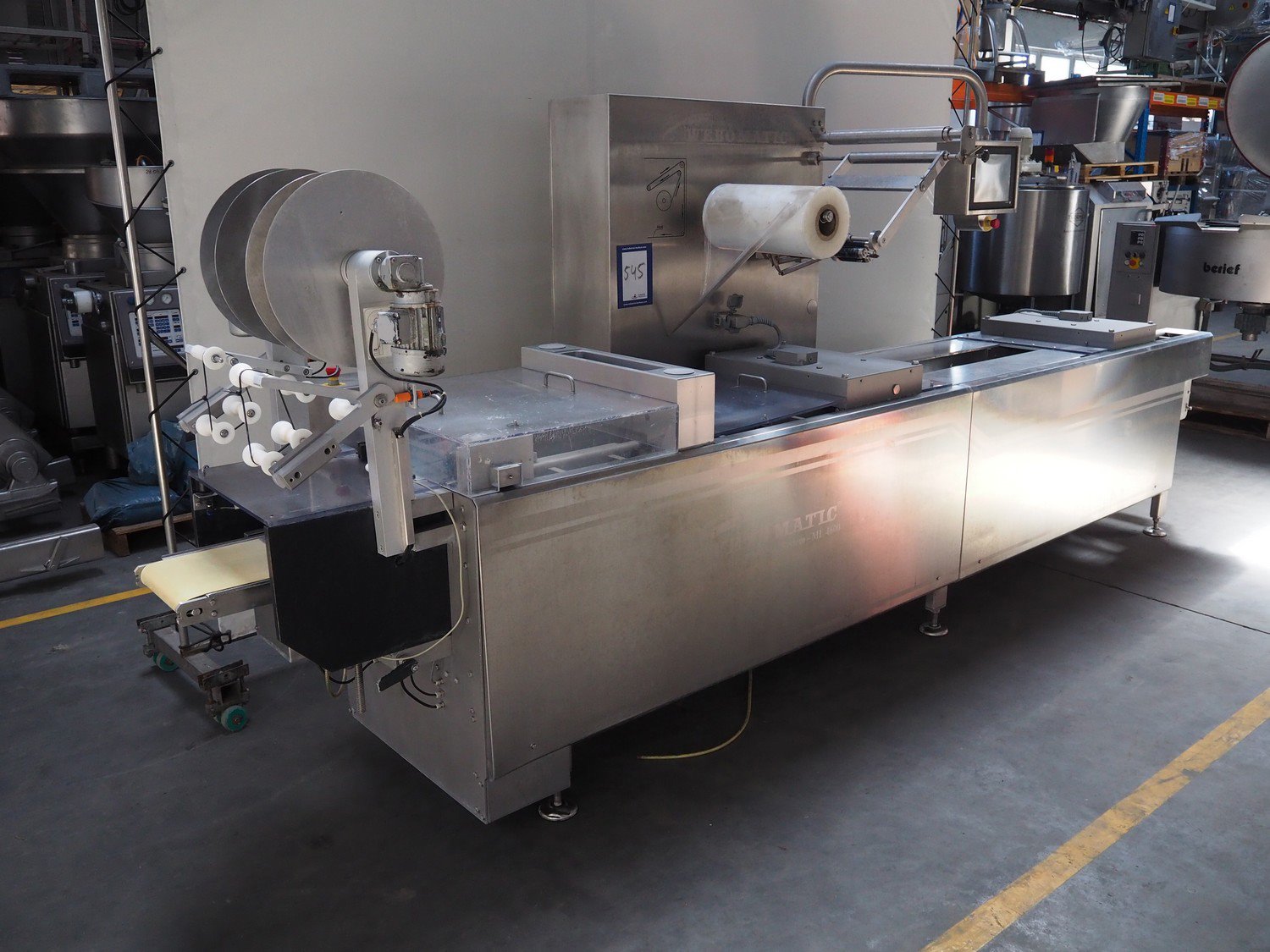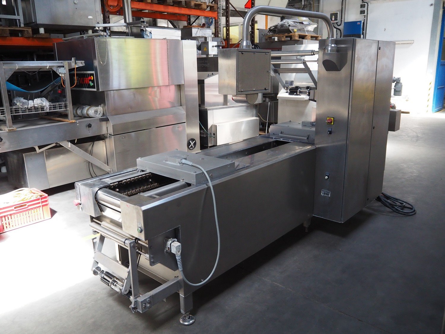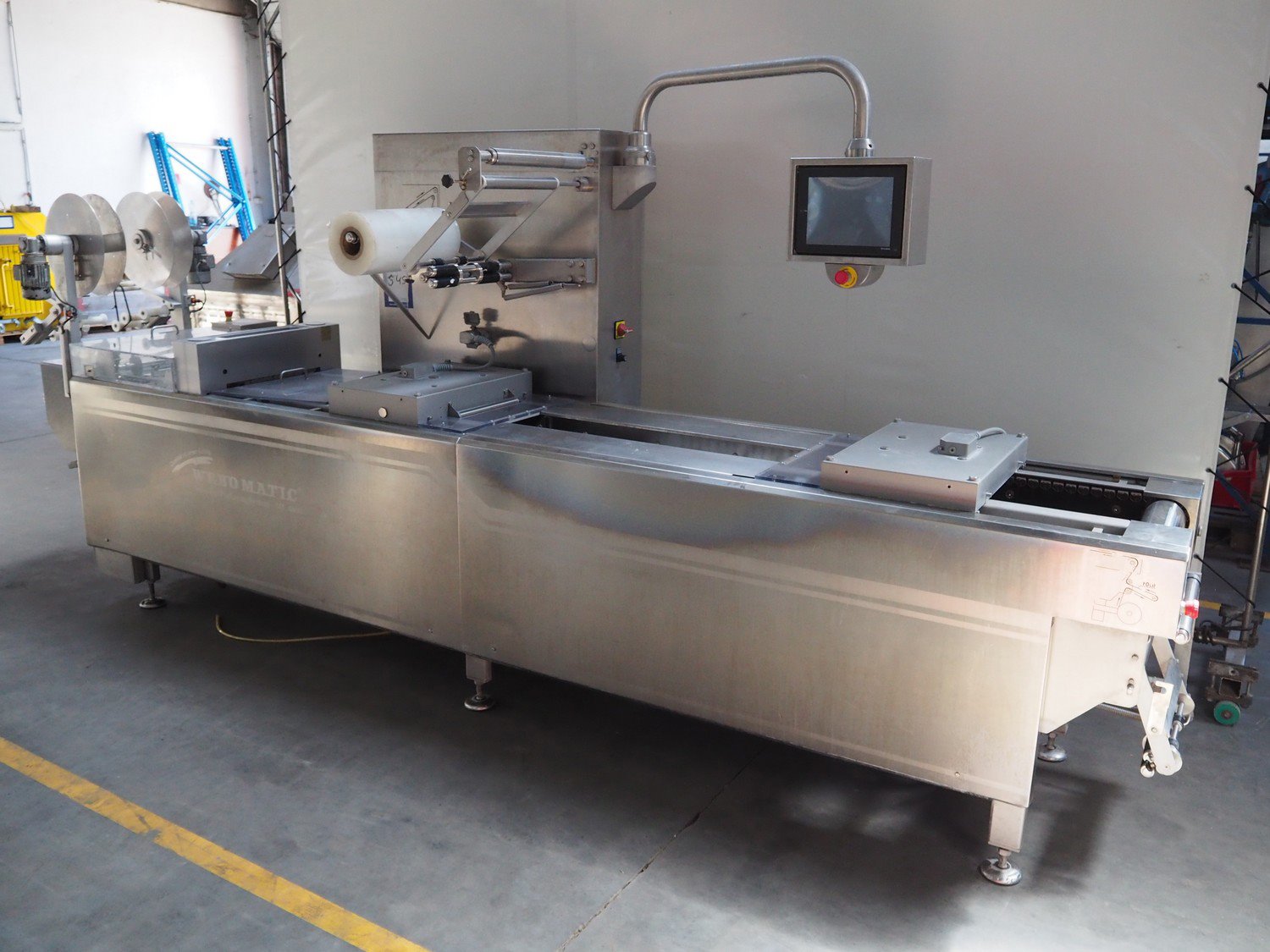 Webomatic thermoformer, type: ML 4600, machine number: B6513II132, 400 V, 3 Ph, 50 Hz, 18.0 kW, 29.2 A, film width: 320 mm, dimensions dye: 265 mm x 225 mm, index: 380 mm, plastic outfeed belt, belt width: 260 mm, total dimensions: 4400 mm x 1050 mm x 1980 mm. With Witt-gasetechnik GmbH & Co. KG gas mixing station, type: KM 100-3 MEM, serial number: 37223, year of construction: 2000, gas: CO2 / O2 / N2.