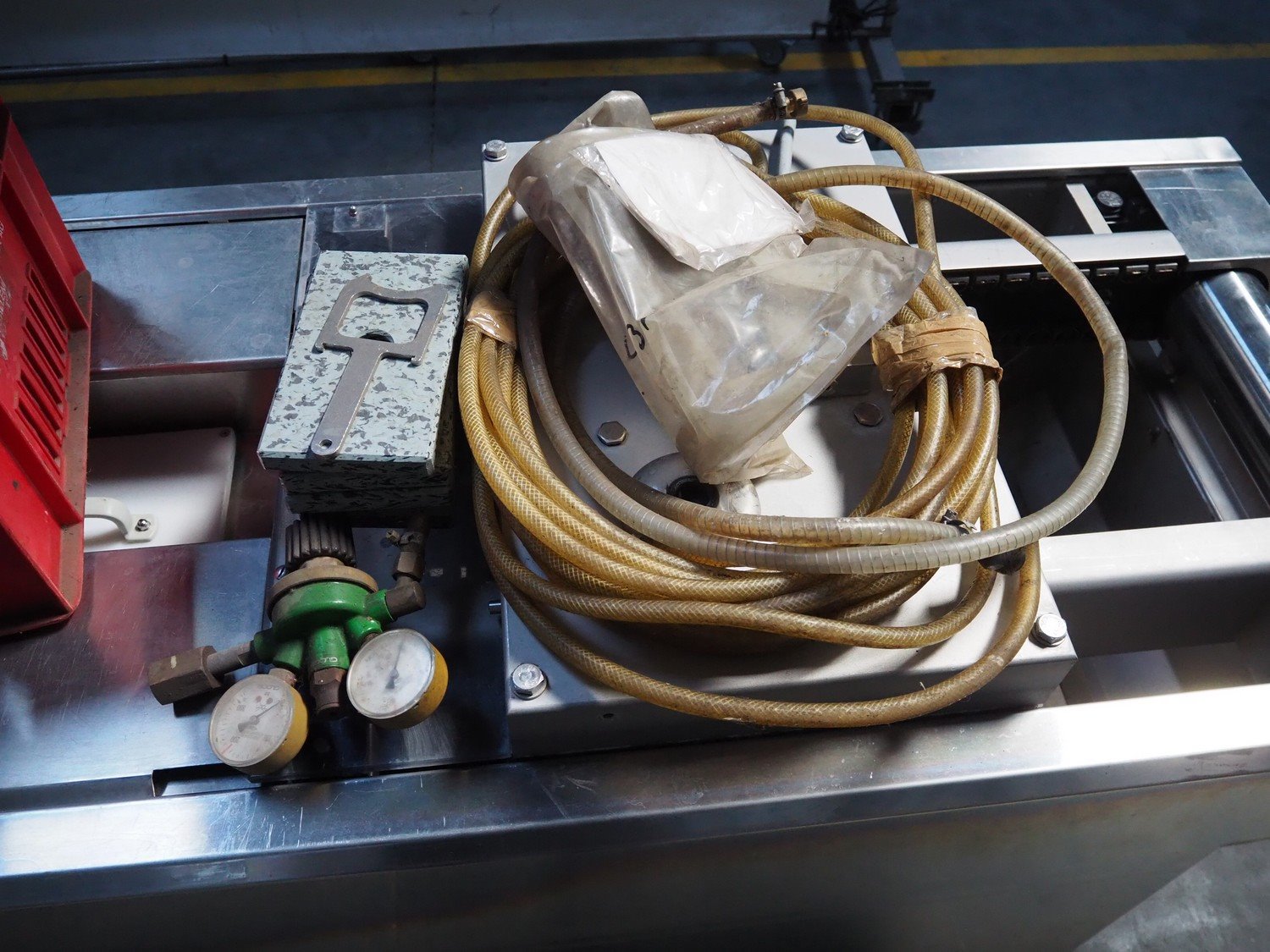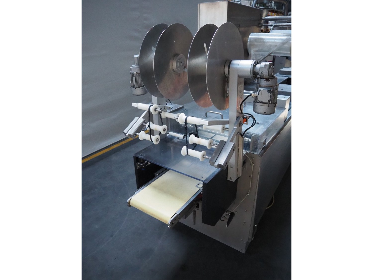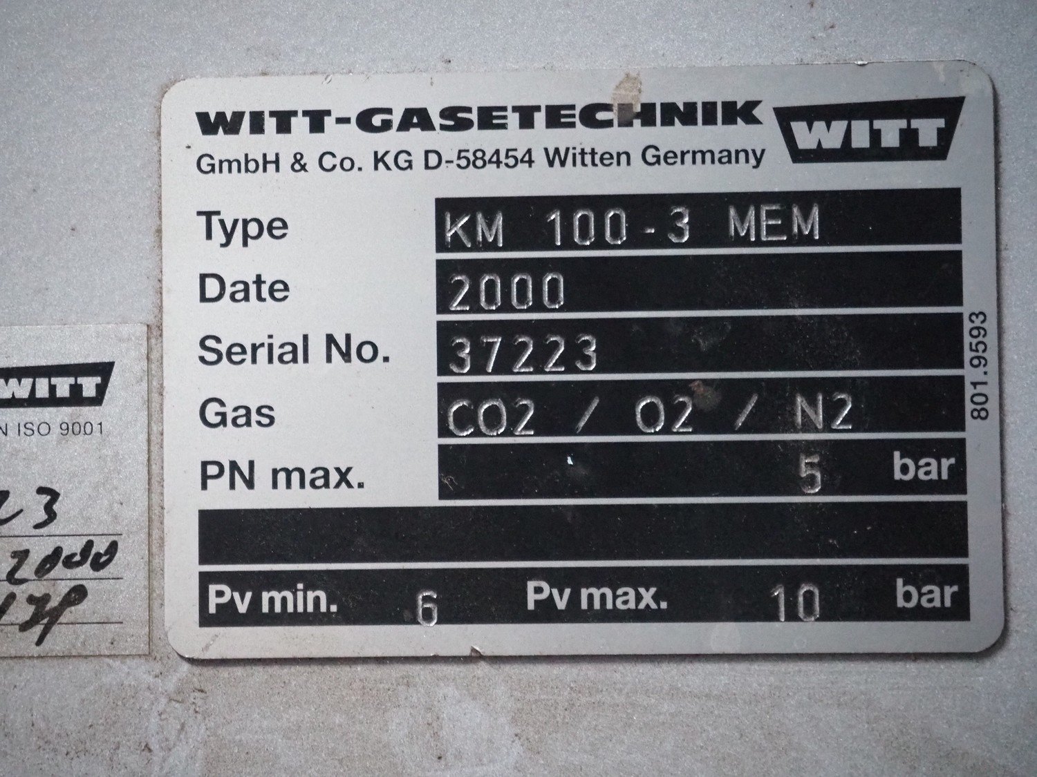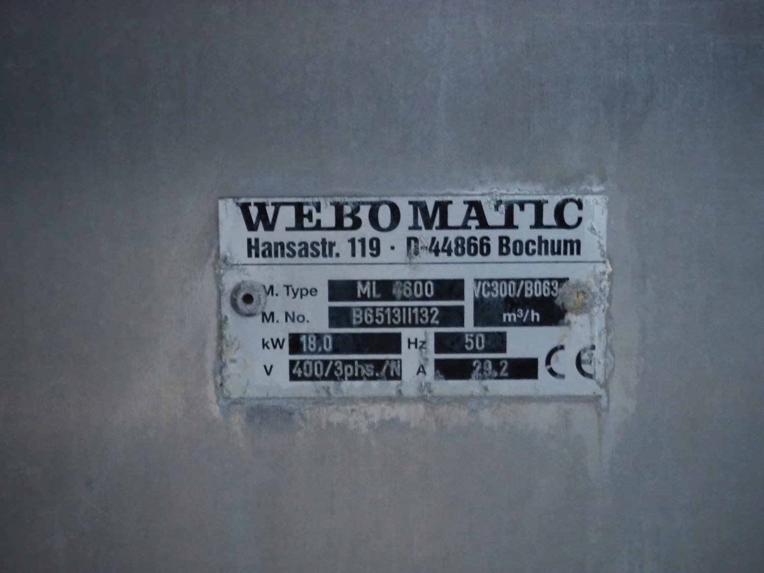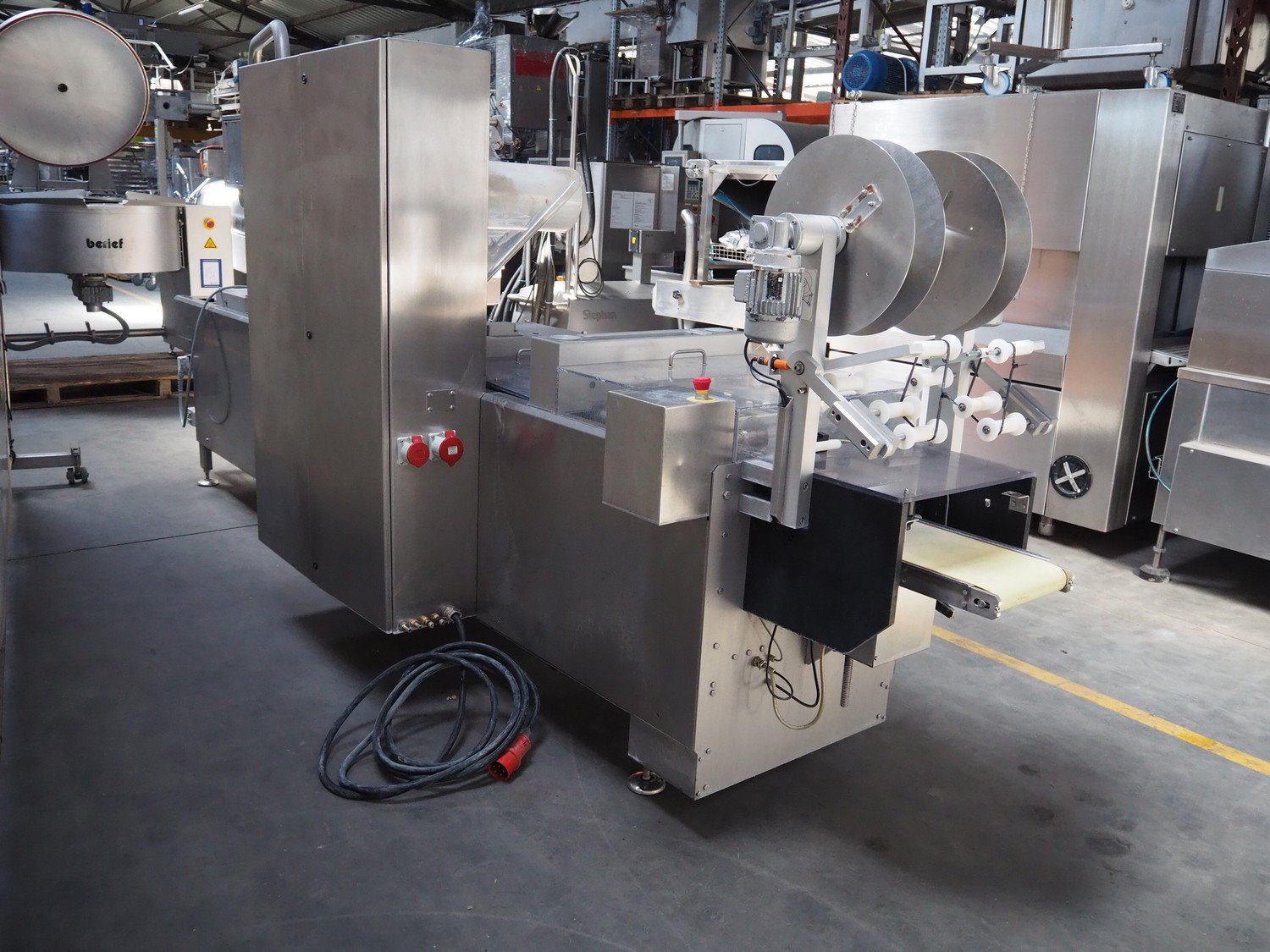 Webomatic thermoformer, type: ML 4600, machine number: B6513II132, 400 V, 3 Ph, 50 Hz, 18.0 kW, 29.2 A, film width: 320 mm, dimensions dye: 265 mm x 225 mm, index: 380 mm, plastic outfeed belt, belt width: 260 mm, total dimensions: 4400 mm x 1050 mm x 1980 mm. With Witt-gasetechnik GmbH & Co. KG gas mixing station, type: KM 100-3 MEM, serial number: 37223, year of construction: 2000, gas: CO2 / O2 / N2.