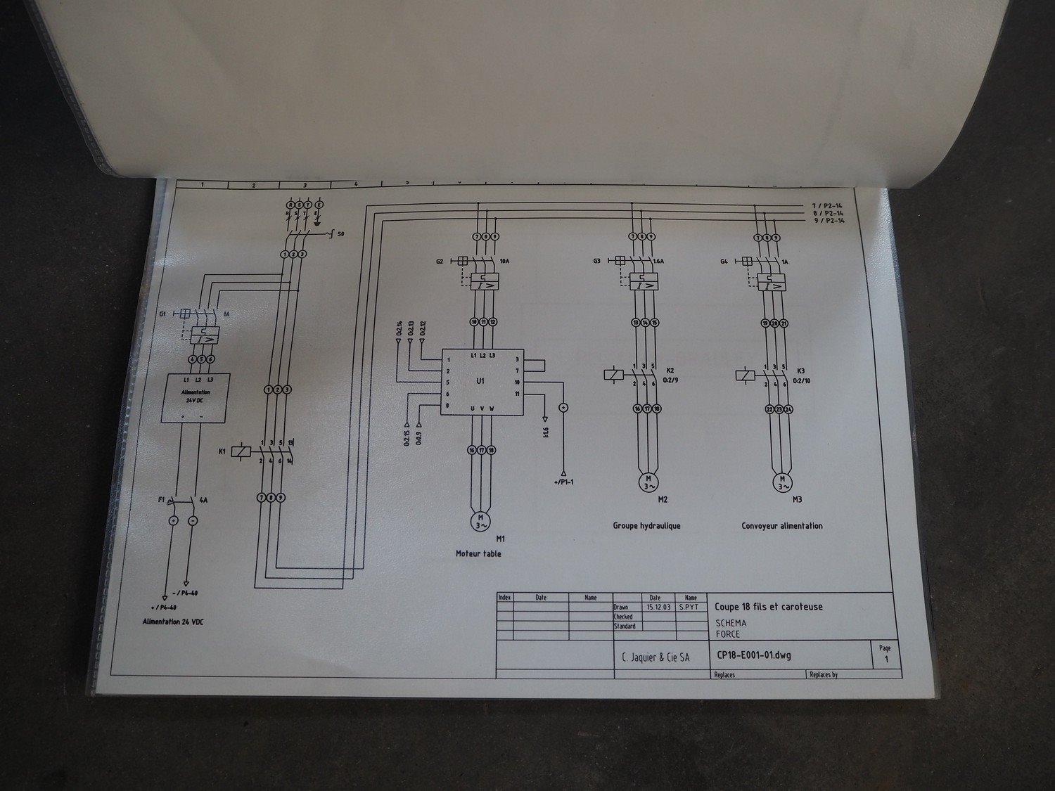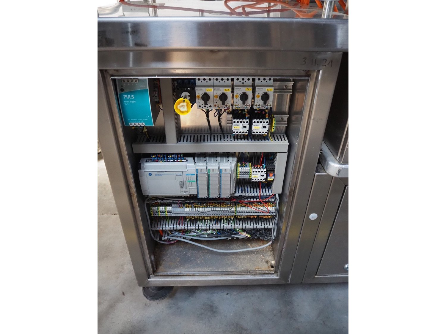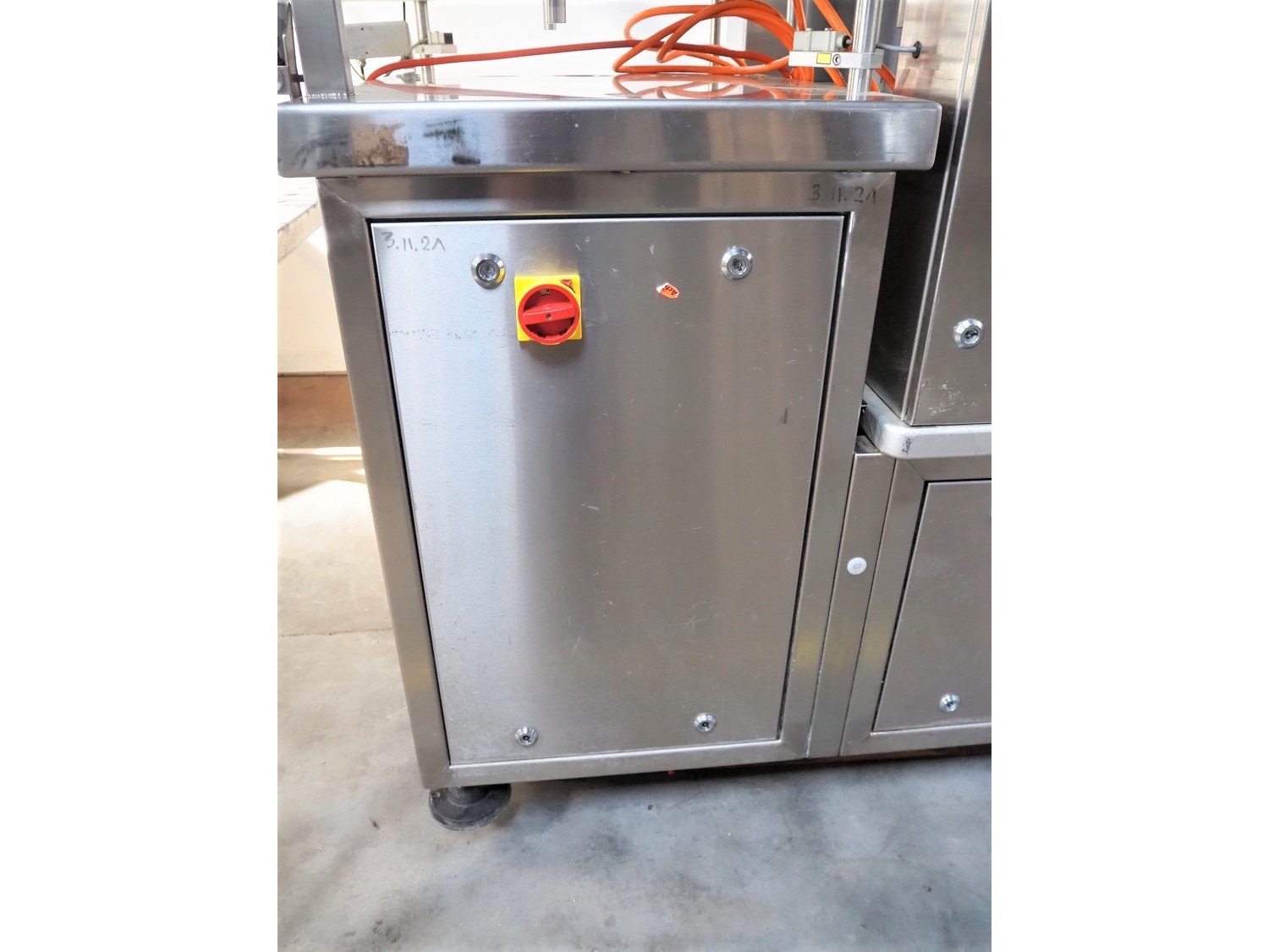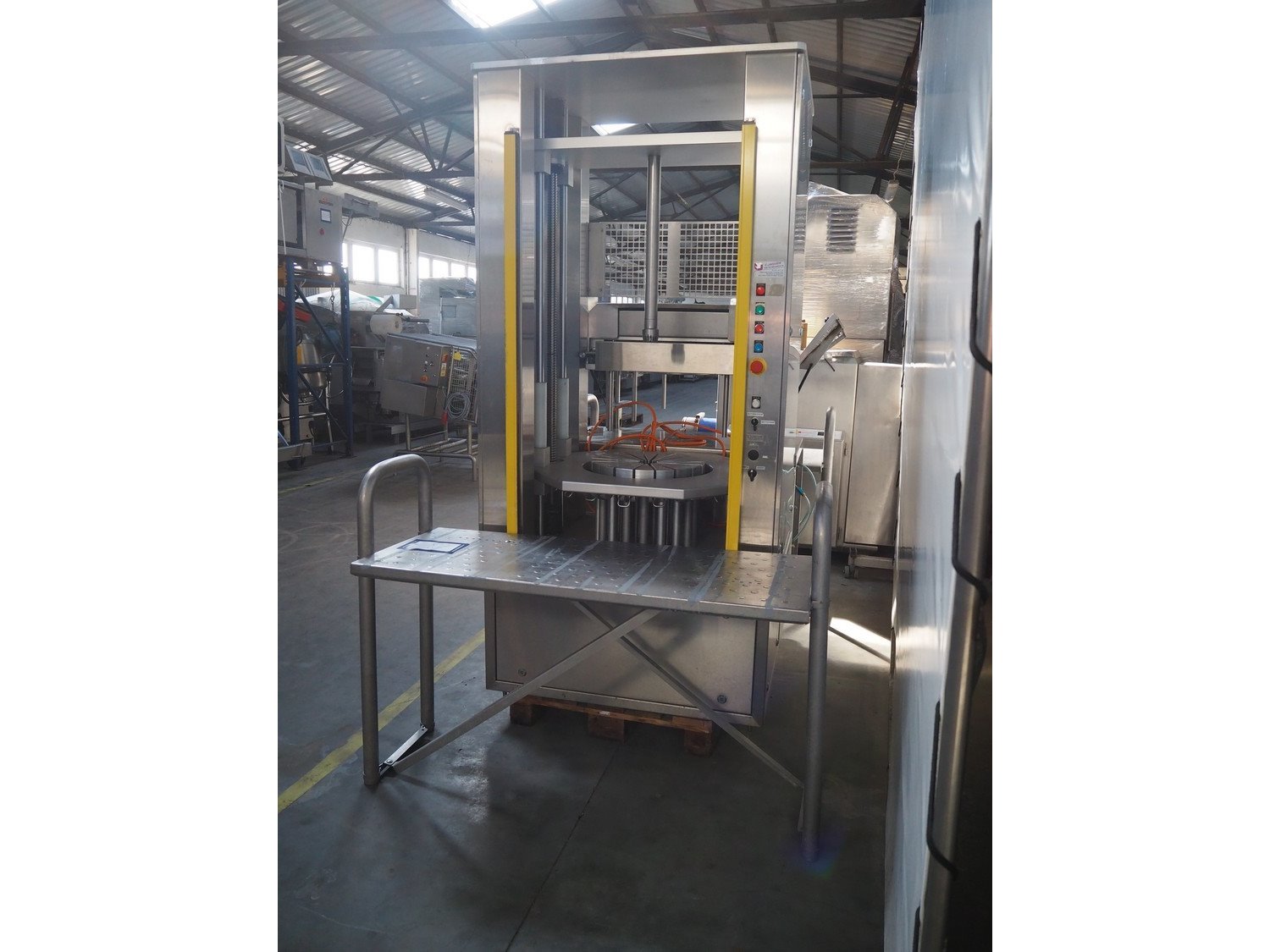 C. Jaquier cheese slicer, type: CP18, year of construction: 2001, diameter plate: Ø 440 mm, total dimensions: 2200 mm x 1550 mm x 2390 mm. Including 2 tables, dimensions : 1040 x 560 x 1400 mm.