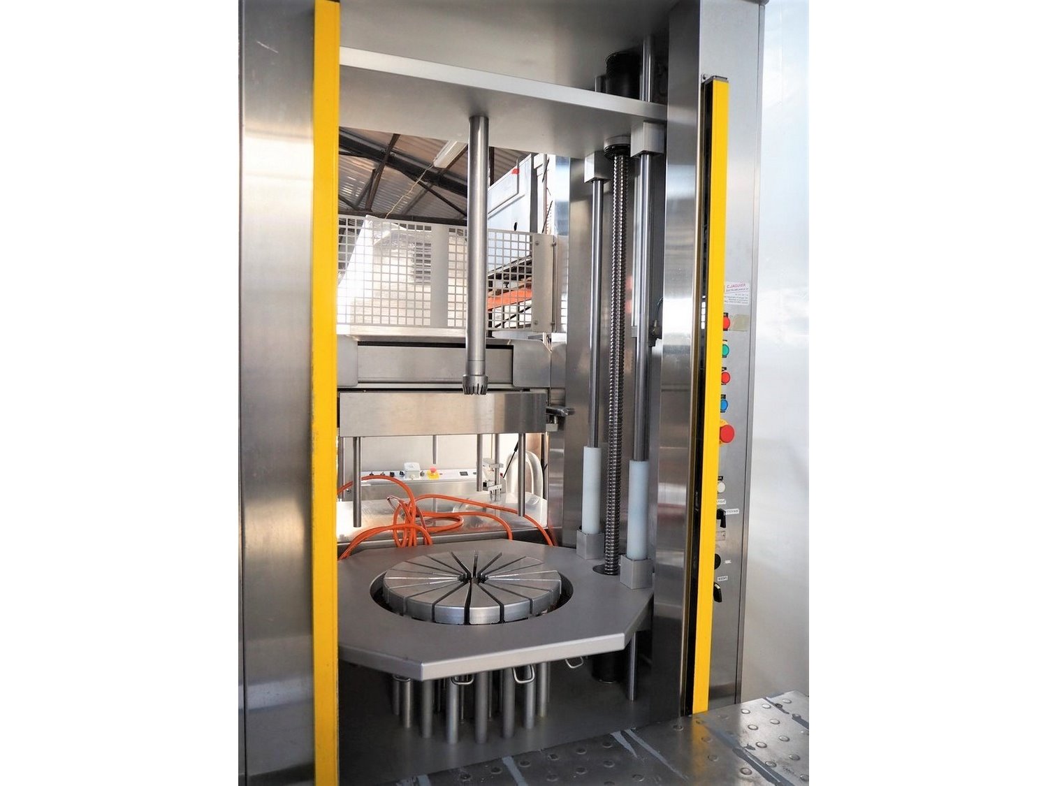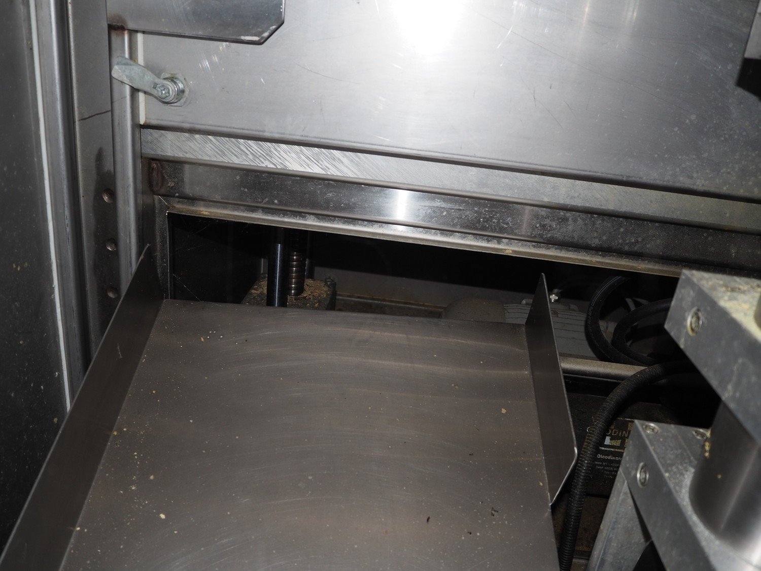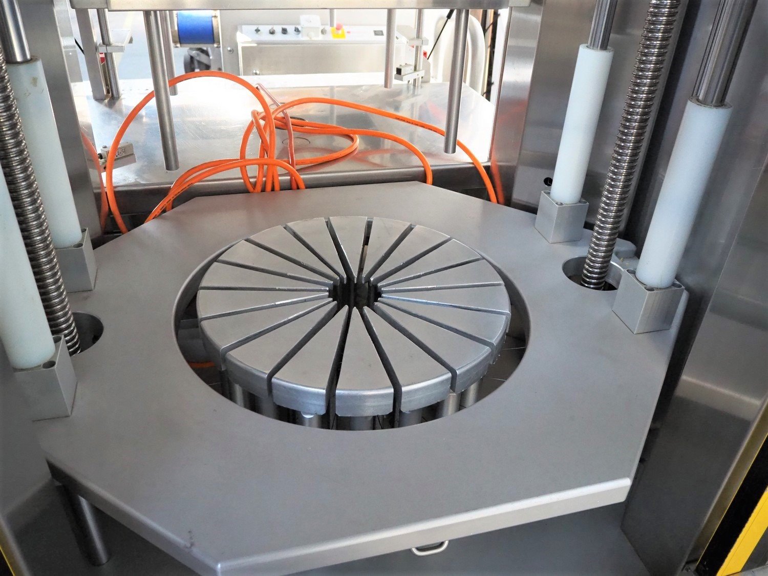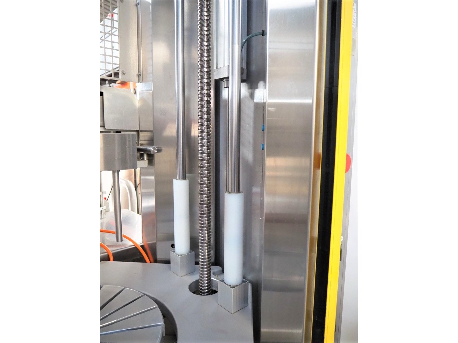 C. Jaquier cheese slicer, type: CP18, year of construction: 2001, diameter plate: Ø 440 mm, total dimensions: 2200 mm x 1550 mm x 2390 mm. Including 2 tables, dimensions : 1040 x 560 x 1400 mm.