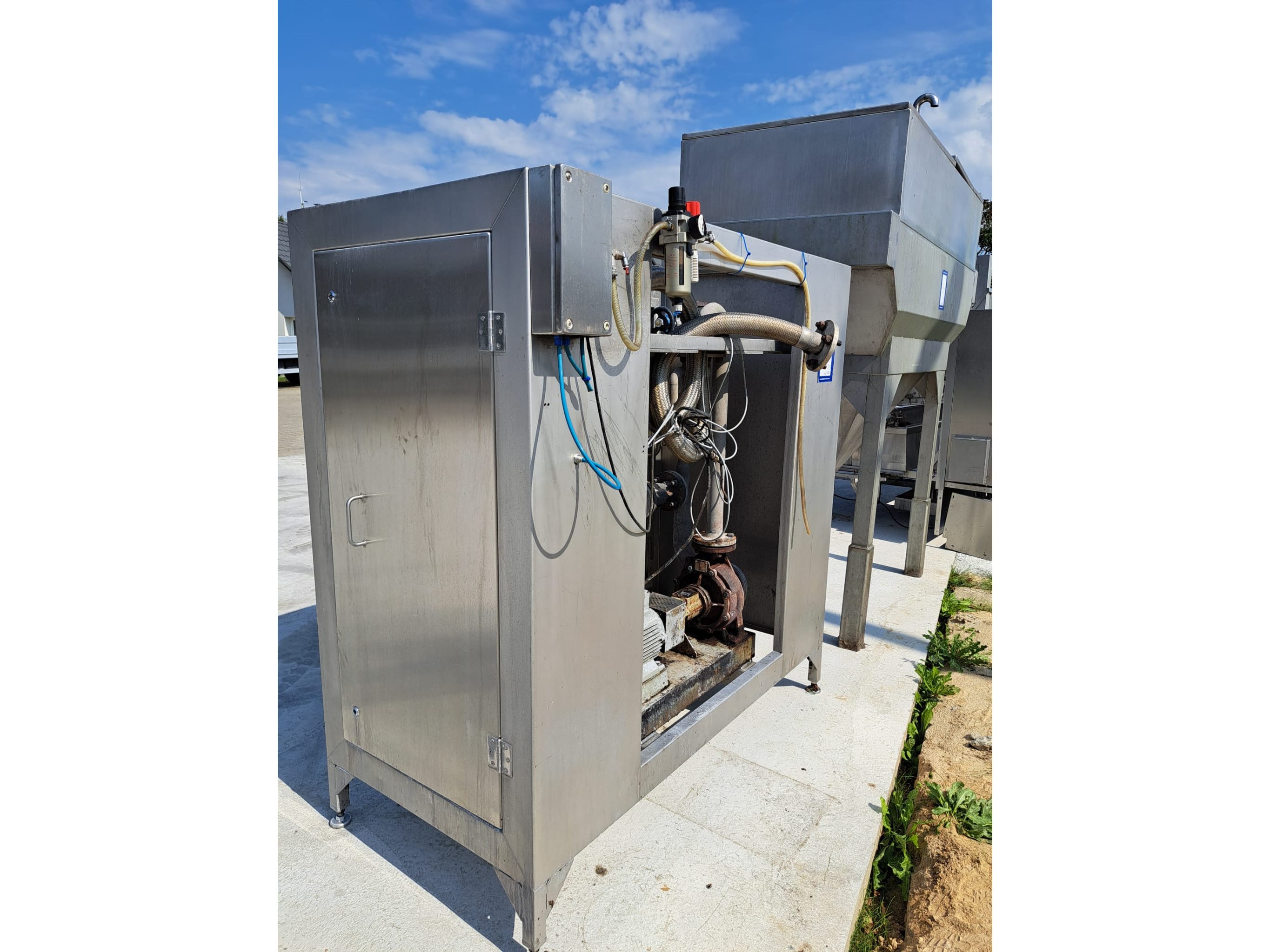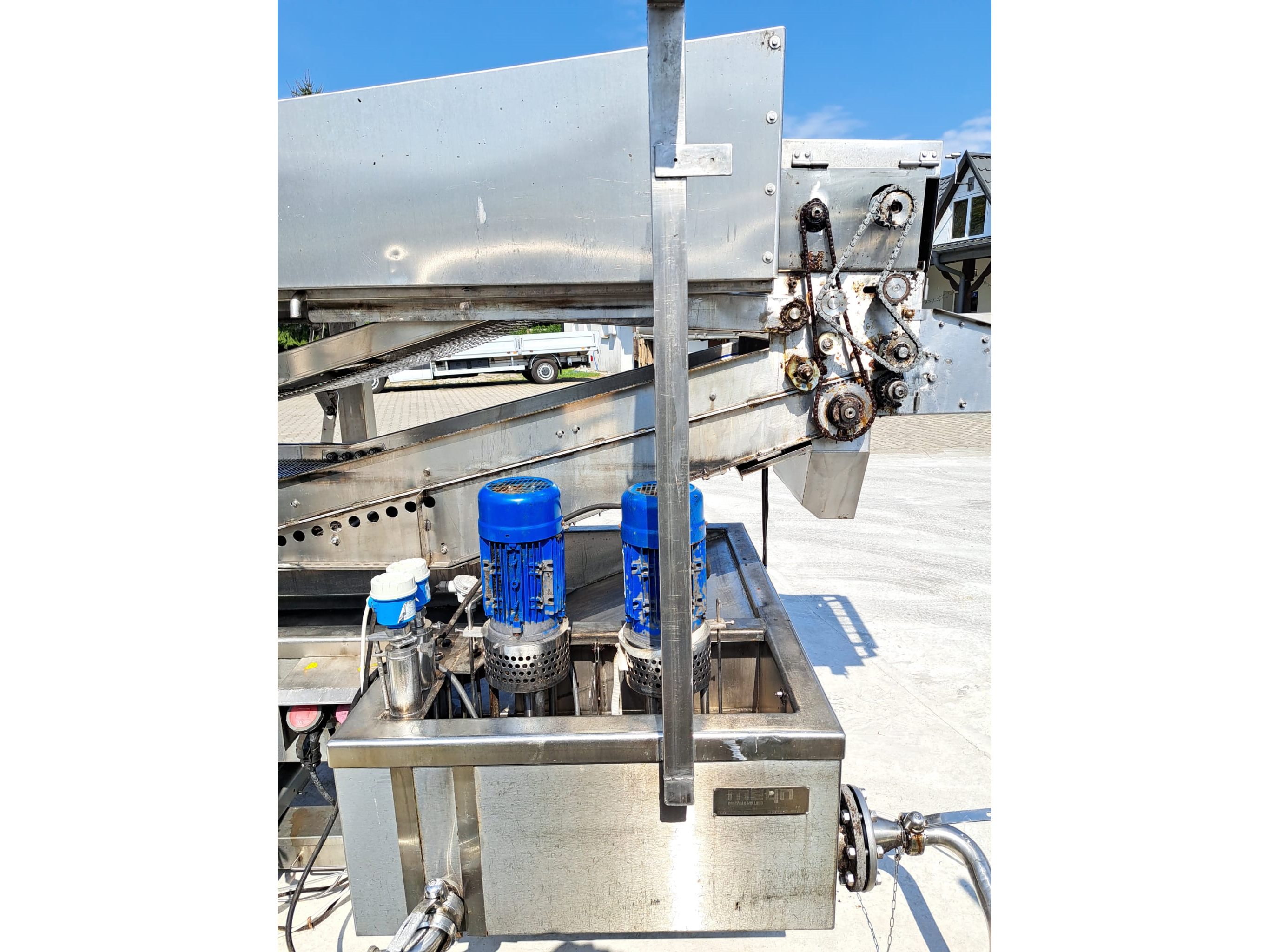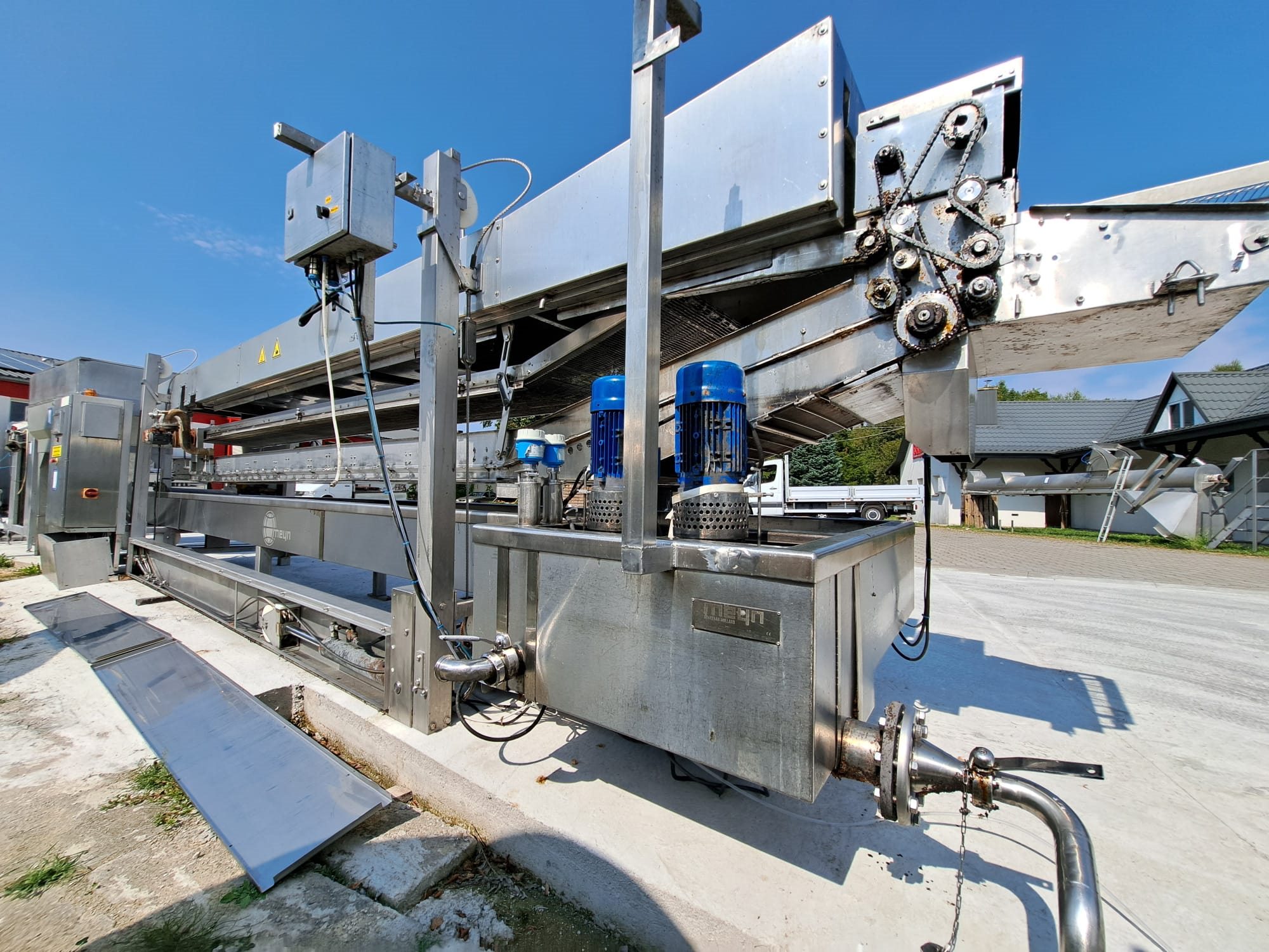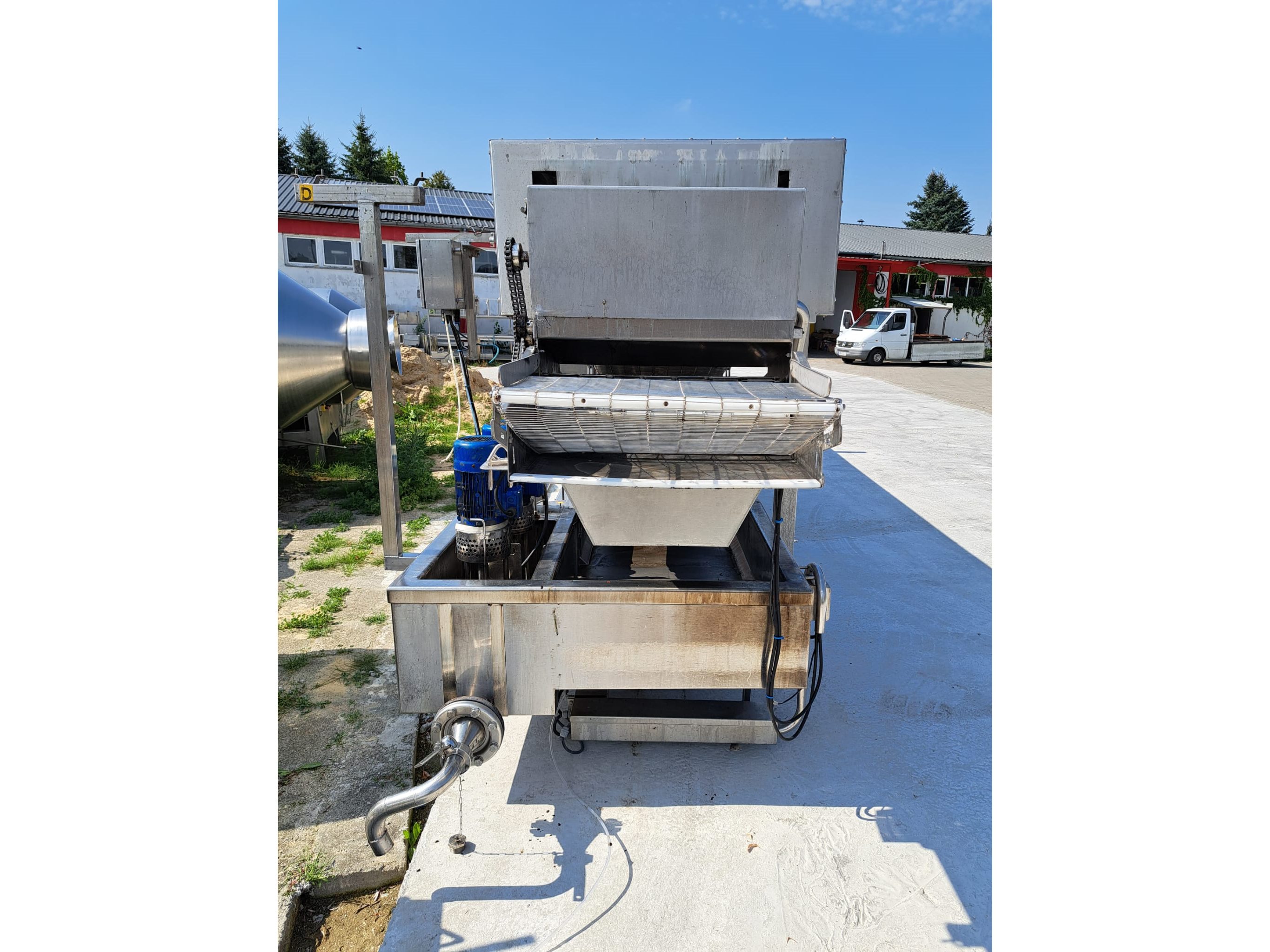Meyn fryer, type: 600/5000 TH, machine number: 83390, year of construction: 1998, s/s mesh belt, belt width: 600 mm, total dimensions: 8000 mm x 1900 mm x 2400 mm. Including s/s thermic oil tank, circulation pump in s/s cabinet and other spare parts, dimensions tank: 2250 mm x 1000 mm x 2350 mm, dimensions cabinet: 1700 mm x 1000 mm x 1750 mm.