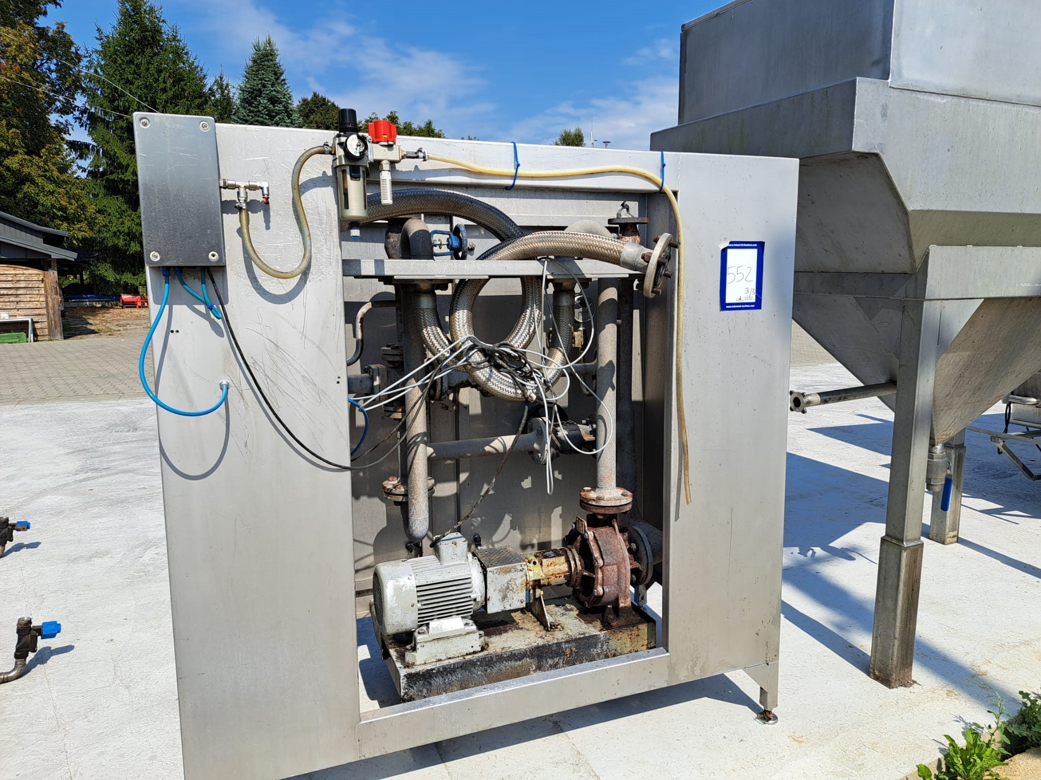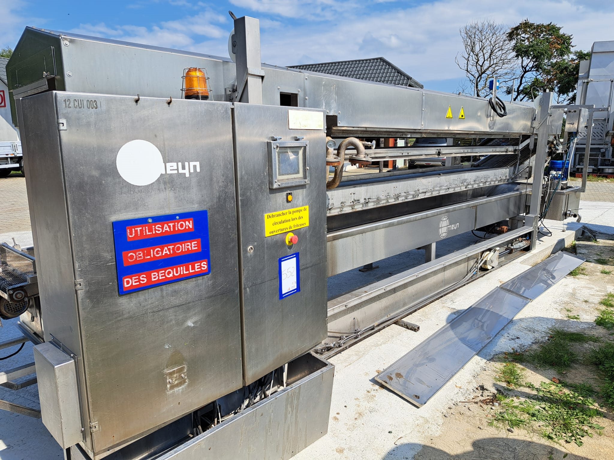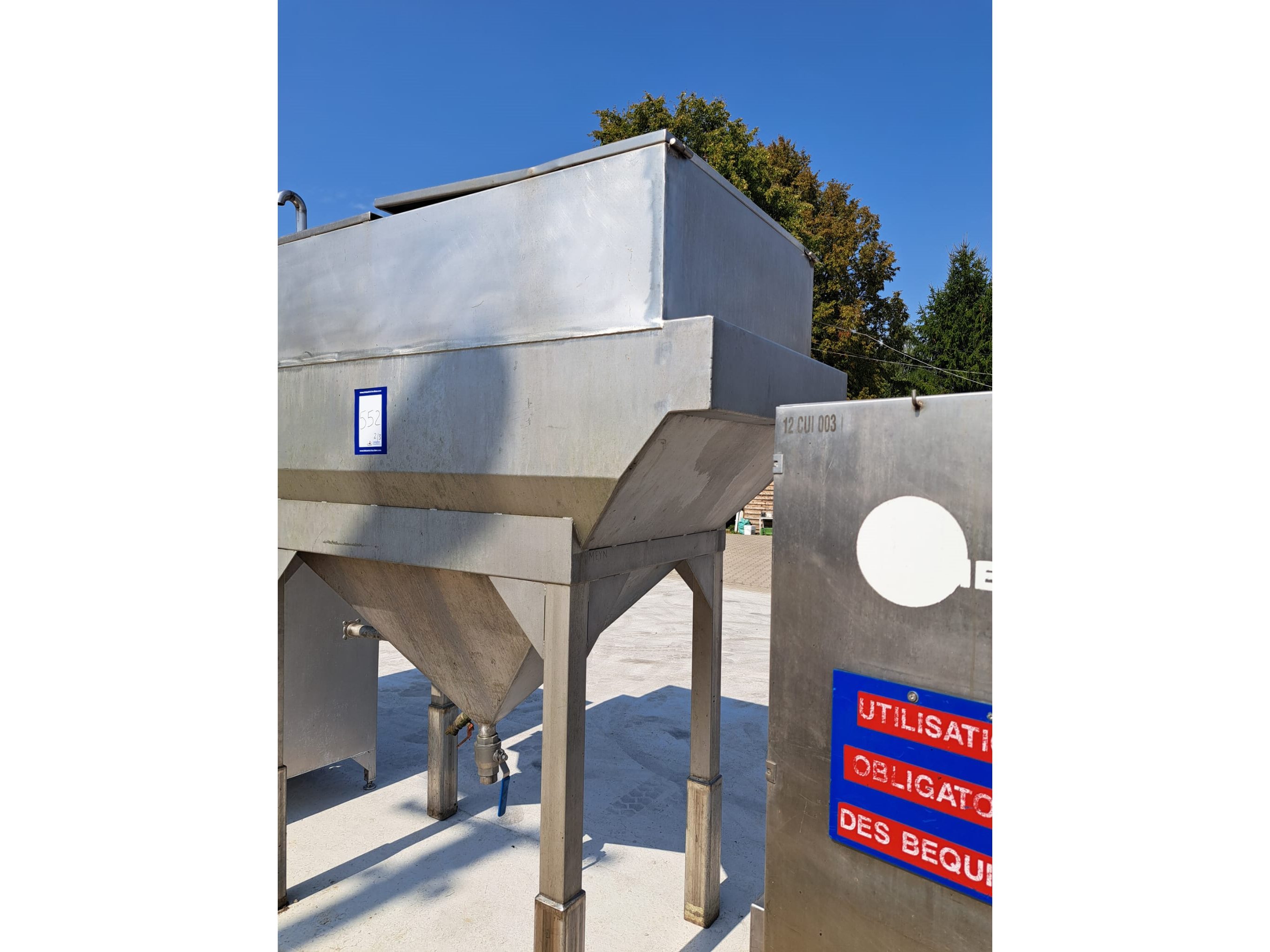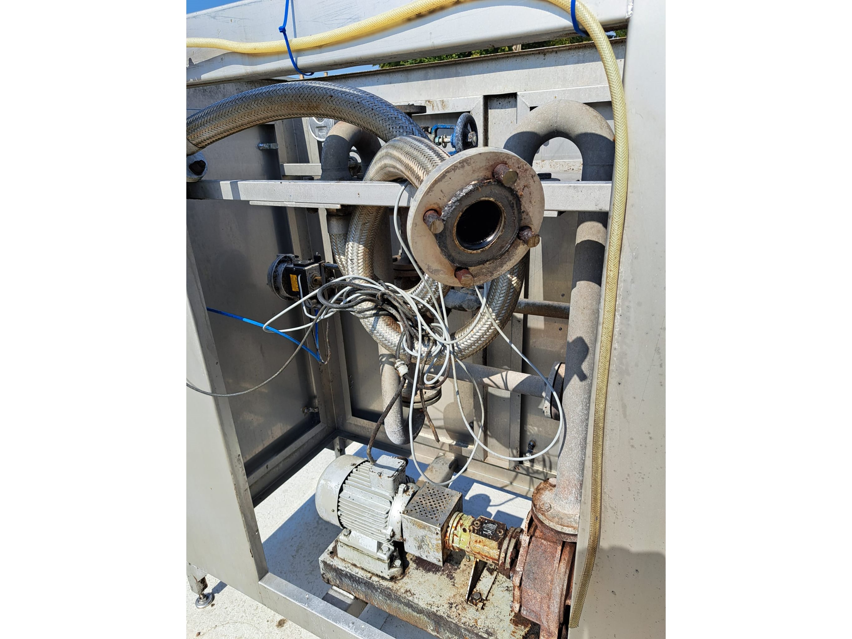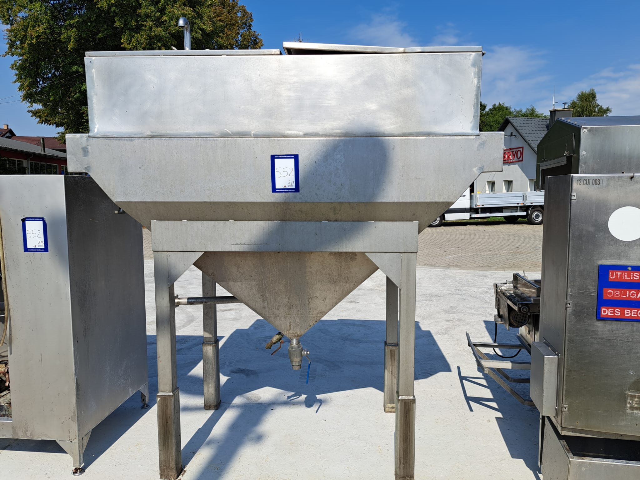 Meyn fryer, type: 600/5000 TH, machine number: 83390, year of construction: 1998, s/s mesh belt, belt width: 600 mm, total dimensions: 8000 mm x 1900 mm x 2400 mm. Including s/s thermic oil tank, circulation pump in s/s cabinet and other spare parts, dimensions tank: 2250 mm x 1000 mm x 2350 mm, dimensions cabinet: 1700 mm x 1000 mm x 1750 mm.