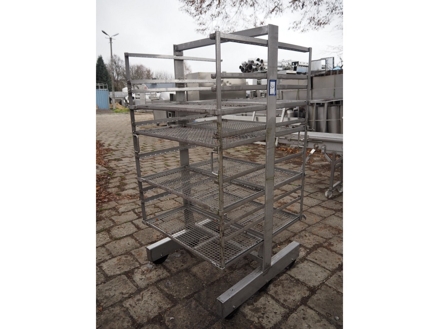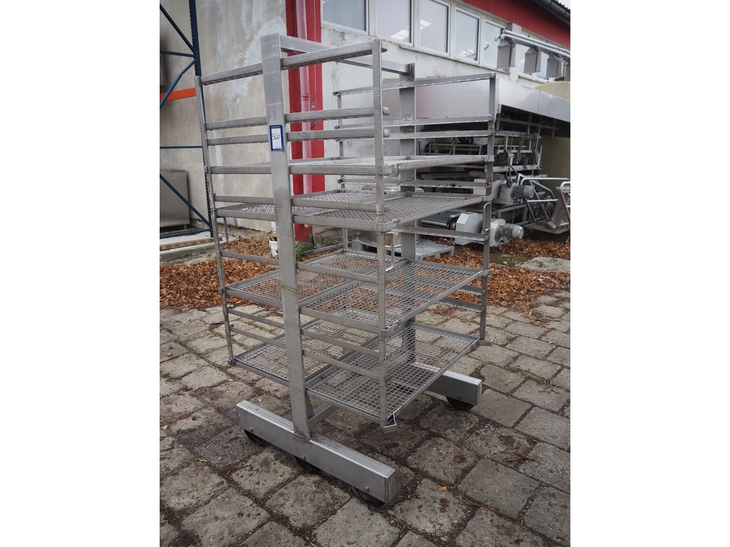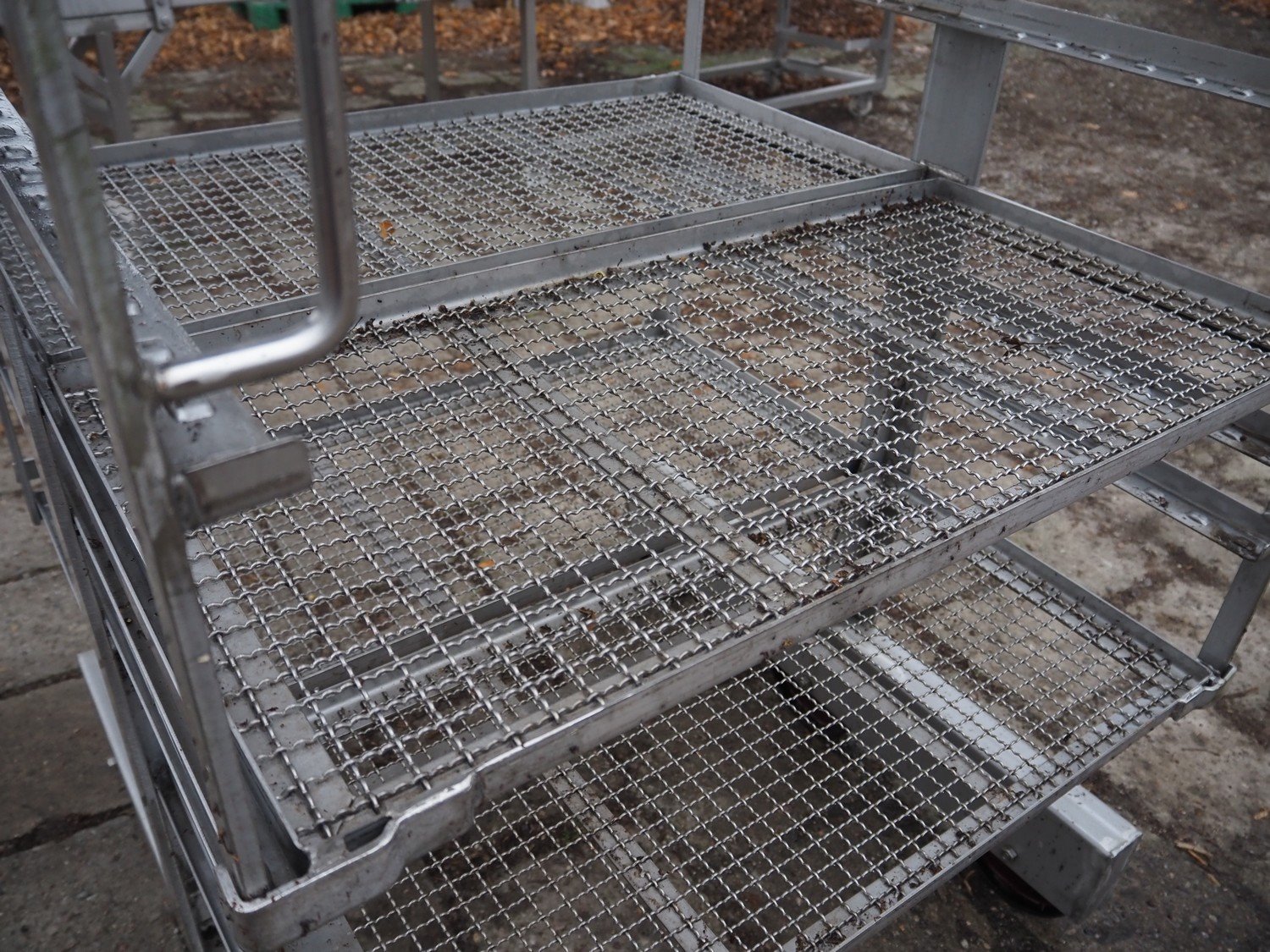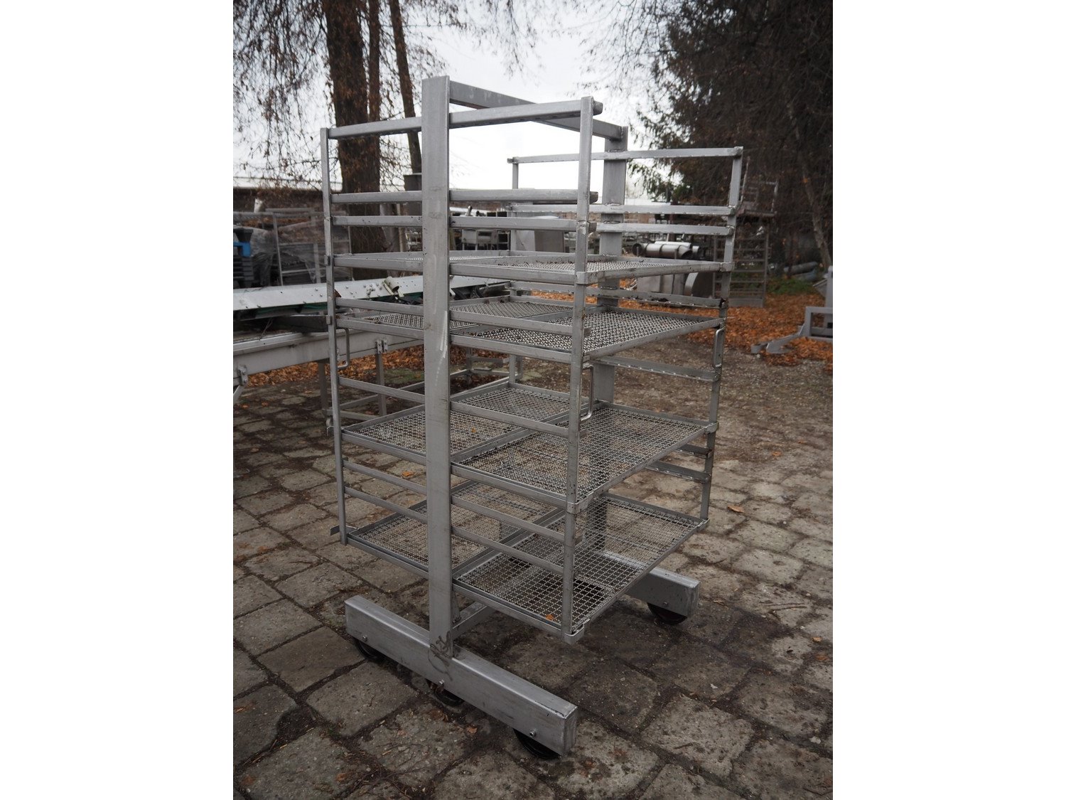 S/s smoke trolley, 10 floors, dimensions each floor: 1000 mm x 970 mm, total dimensions: 1010 mm x 1000 mm x 1980 mm.
