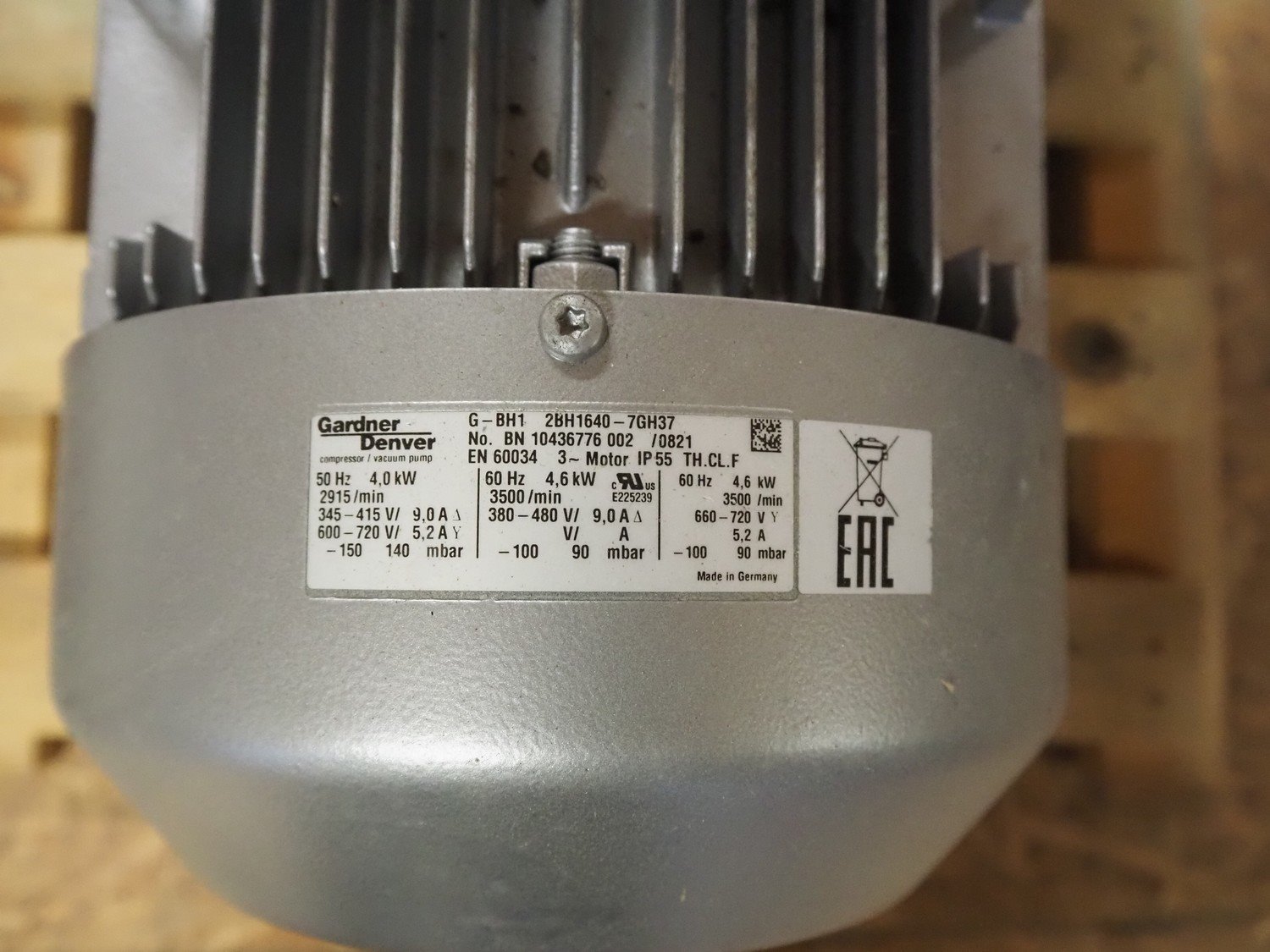 Gardner Denver side channel vacuum pump, model: G-BH1, number: BN 10436776 002, dimensions: 510 mm x 420 mm x 440 mm.