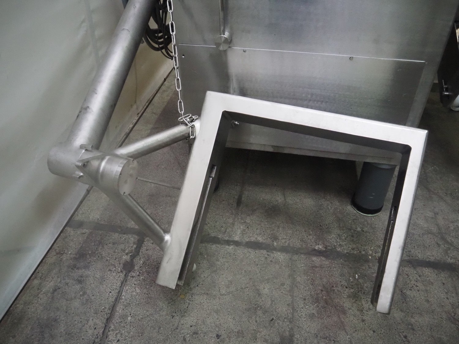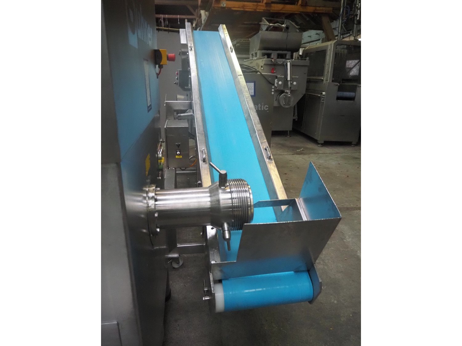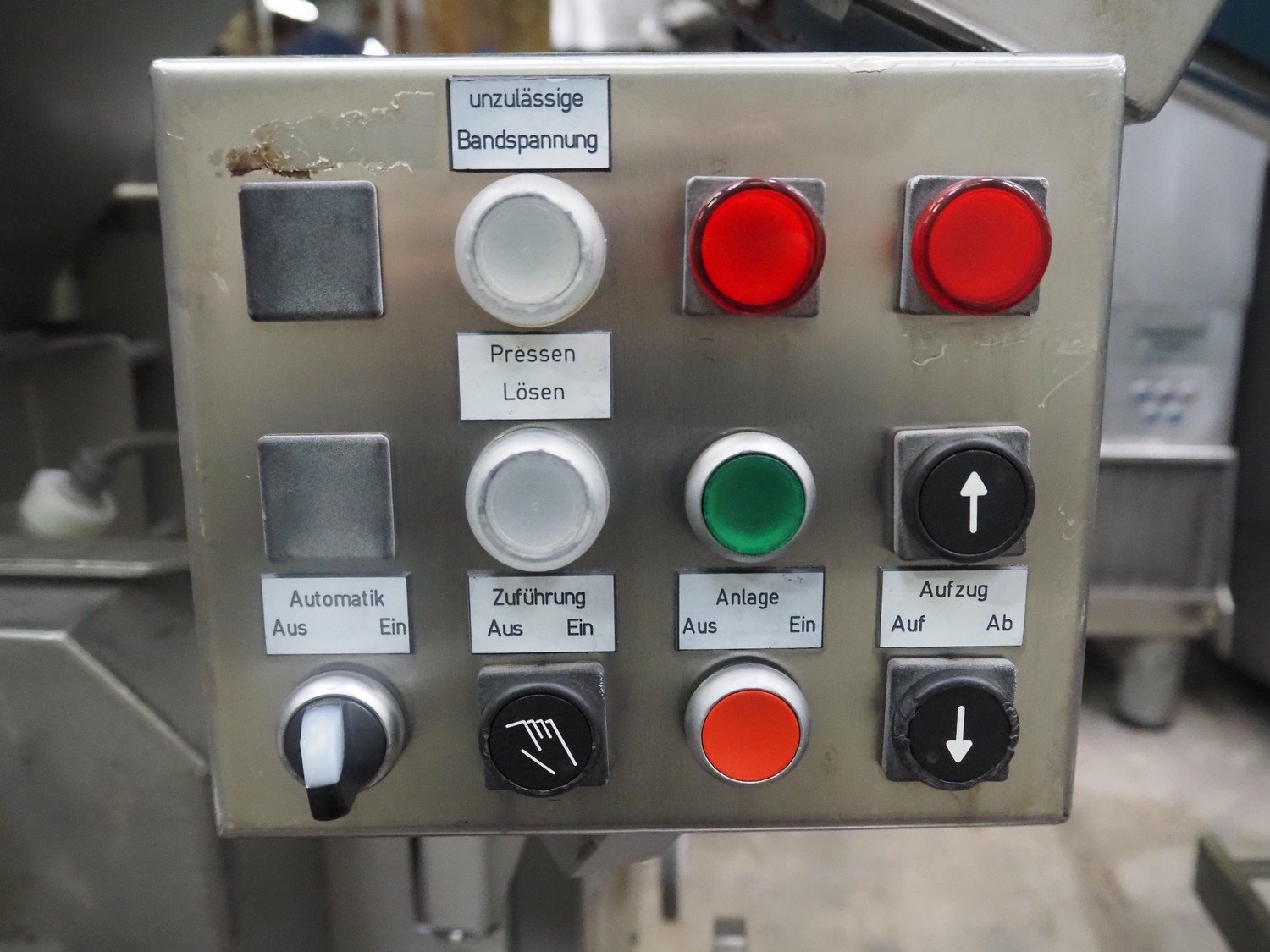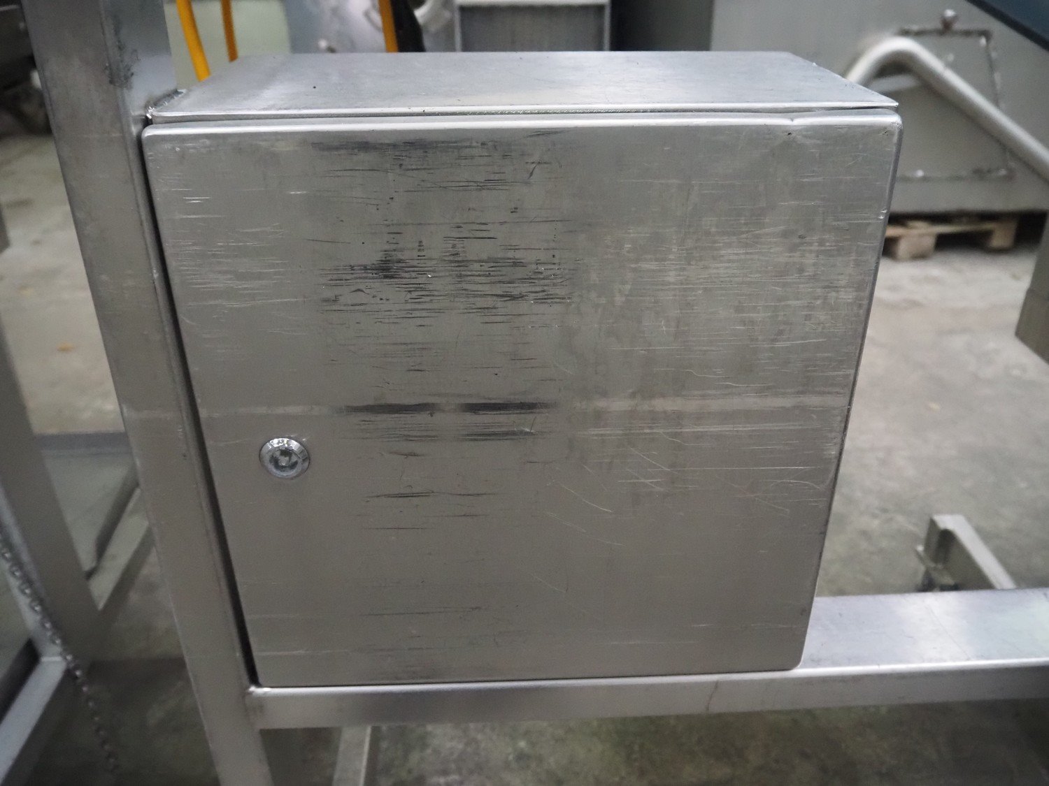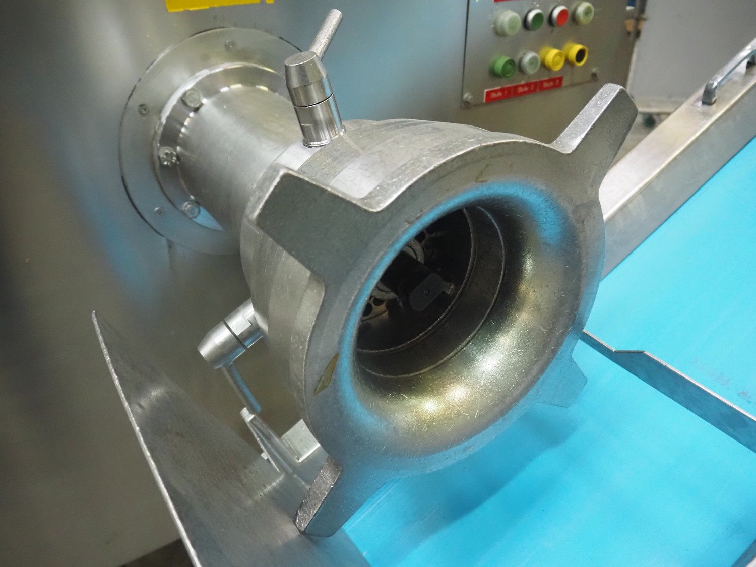 Grinder / separator line, consisting of: Seydelmann mixer-grinder with lifter for 200 liter meat bins, type: MG160B, machine number: 92379-1, 380 V, 50 Hz, 70 A, plate diameter: 160 mm, dimensions: 2000 mm x 1700 mm x 2200 mm. Switch cabinet, dimensions: 1230 mm x 1000 mm x 600 mm. Mobile elevating belt, s/s frame, plastic belt, belt width: 370 mm, elevating height: 1950 mm, total dimensions: 2950 mm x 850 mm x 2080 mm. Sepamatic separator, type: SEPA 1200, machine number: 195712, 400 V, 50 Hz, 12 A, 6 kW, 24 volt, plastic belt, belt width: 180 mm, perforations: 3 mm, total dimensions: 1500 mm x 1400 mm x 1750 mm. S/s trolley with extra drum, perforations: 4 mm, total dimensions: 850 mm x 700 mm x 1100 mm.