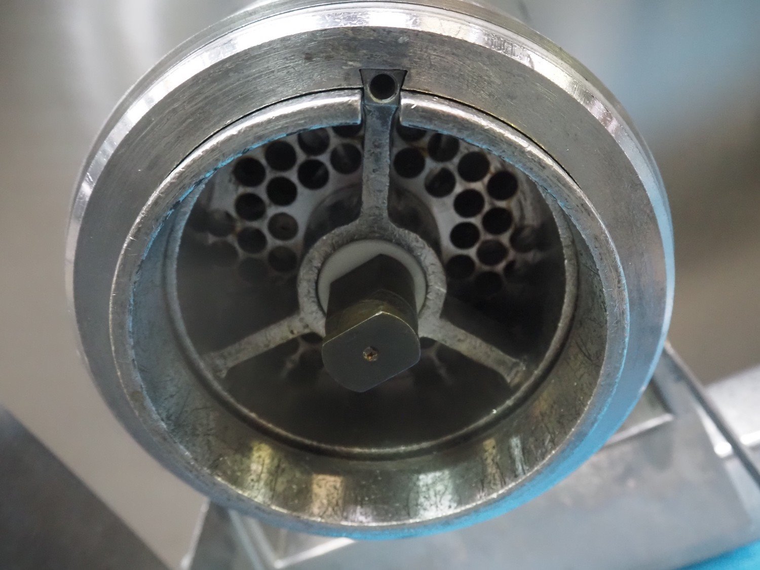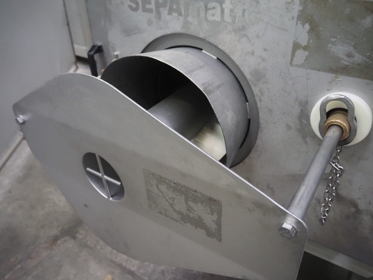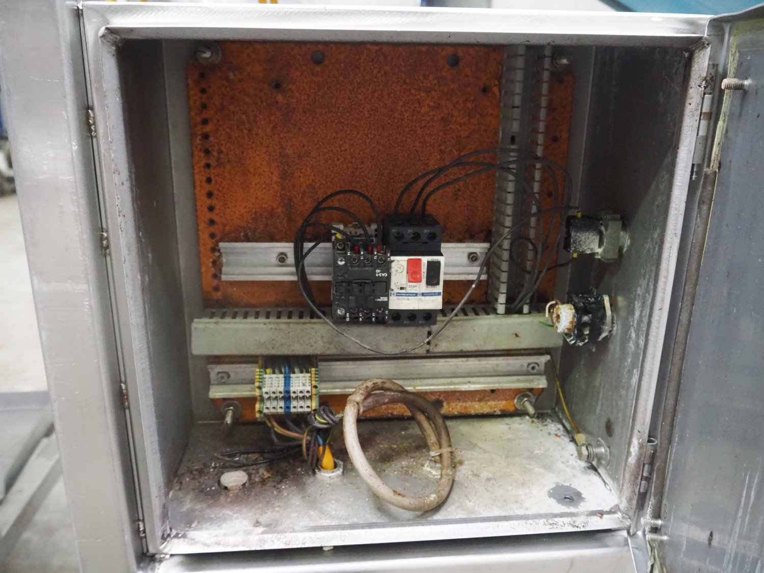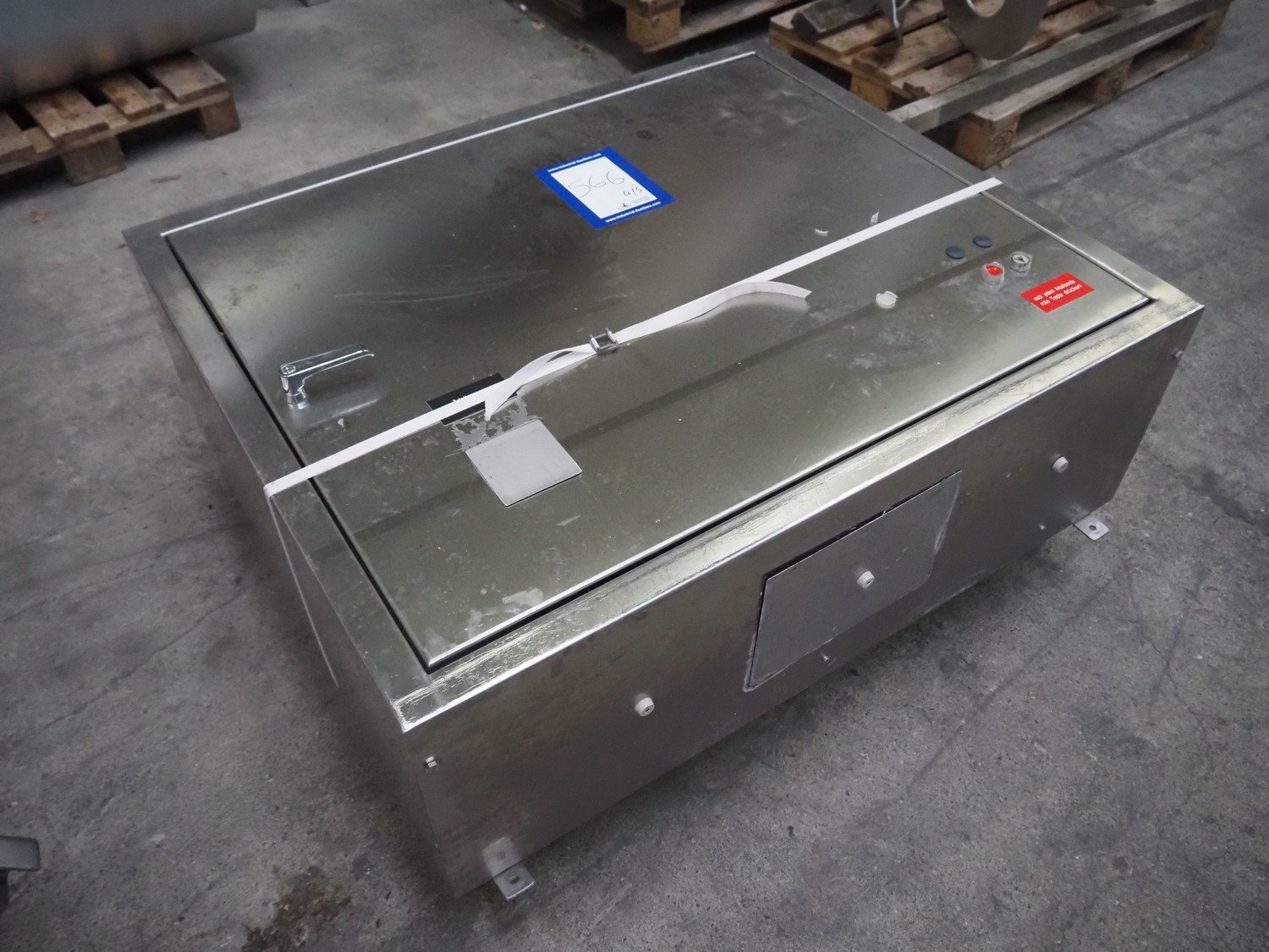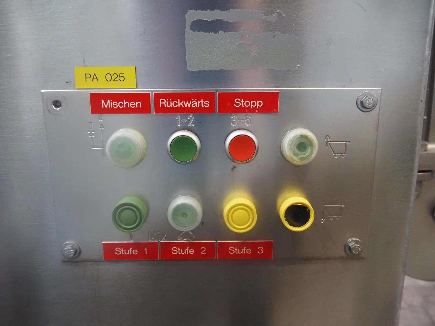 Grinder / separator line, consisting of: Seydelmann mixer-grinder with lifter for 200 liter meat bins, type: MG160B, machine number: 92379-1, 380 V, 50 Hz, 70 A, plate diameter: 160 mm, dimensions: 2000 mm x 1700 mm x 2200 mm. Switch cabinet, dimensions: 1230 mm x 1000 mm x 600 mm. Mobile elevating belt, s/s frame, plastic belt, belt width: 370 mm, elevating height: 1950 mm, total dimensions: 2950 mm x 850 mm x 2080 mm. Sepamatic separator, type: SEPA 1200, machine number: 195712, 400 V, 50 Hz, 12 A, 6 kW, 24 volt, plastic belt, belt width: 180 mm, perforations: 3 mm, total dimensions: 1500 mm x 1400 mm x 1750 mm. S/s trolley with extra drum, perforations: 4 mm, total dimensions: 850 mm x 700 mm x 1100 mm.