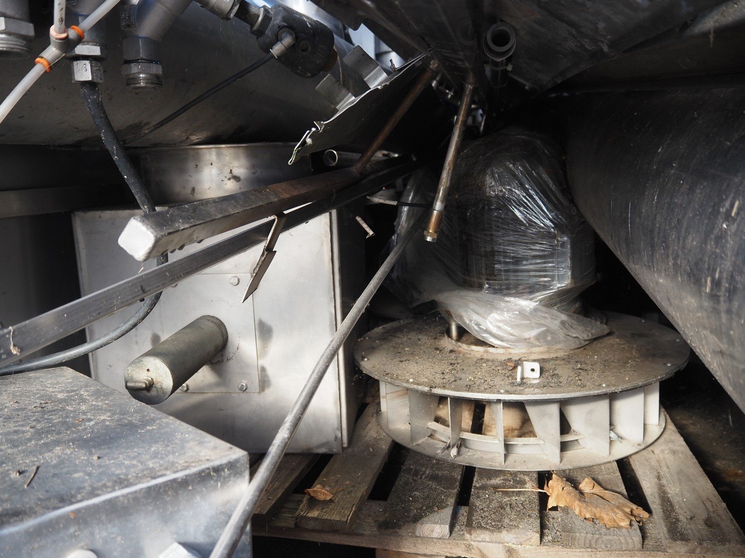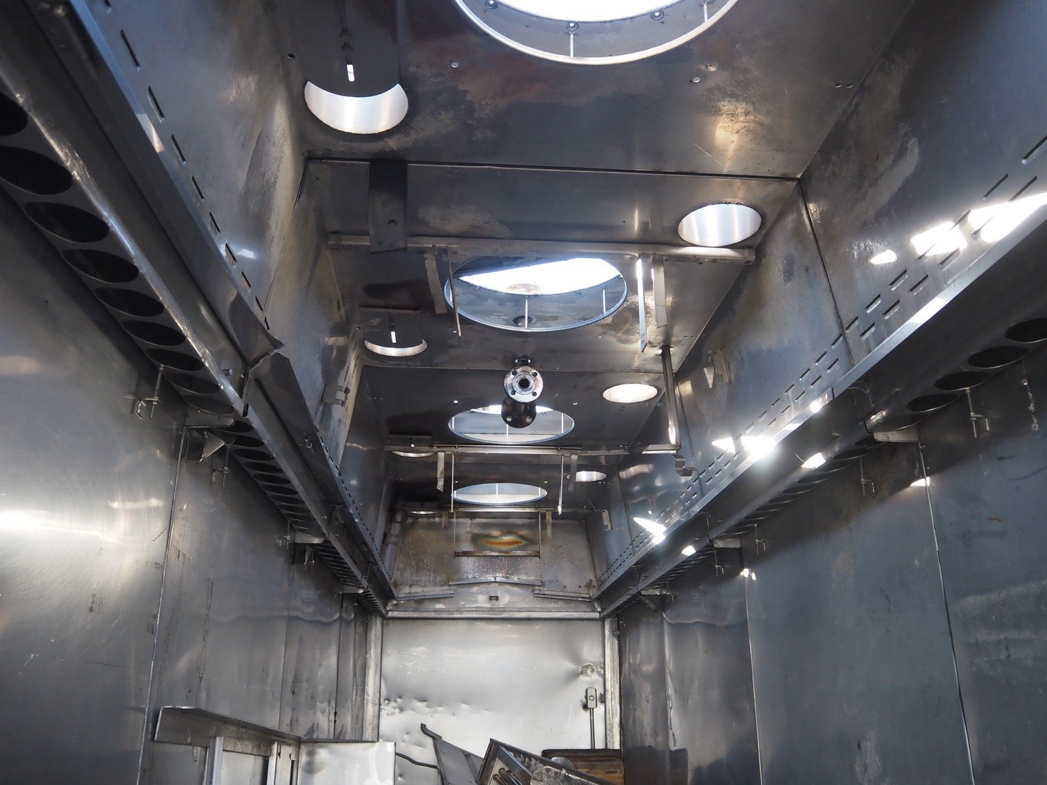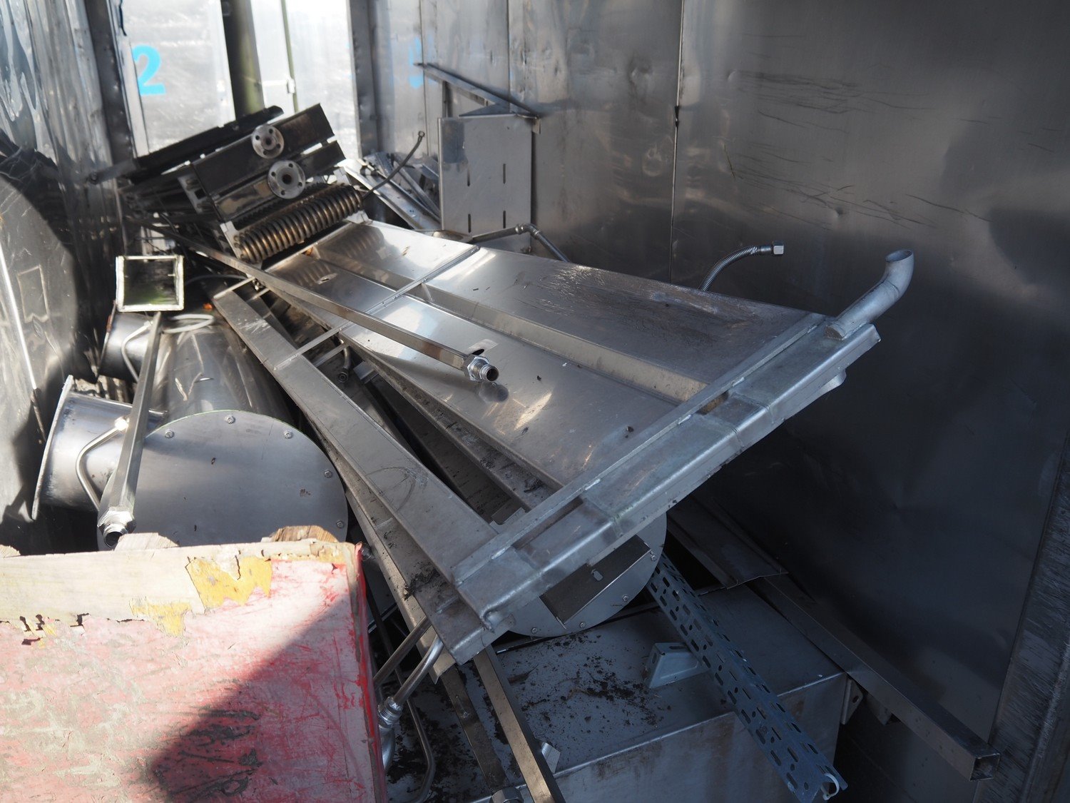 Maurer-Atmos GmbH push thru smoking chamber for 4 trolleys, type: 199180, serial number: 1095 EG, year of construction: 10/2006, steam heated, total dimensions: 4660 mm x 1400 mm x 3300 mm.