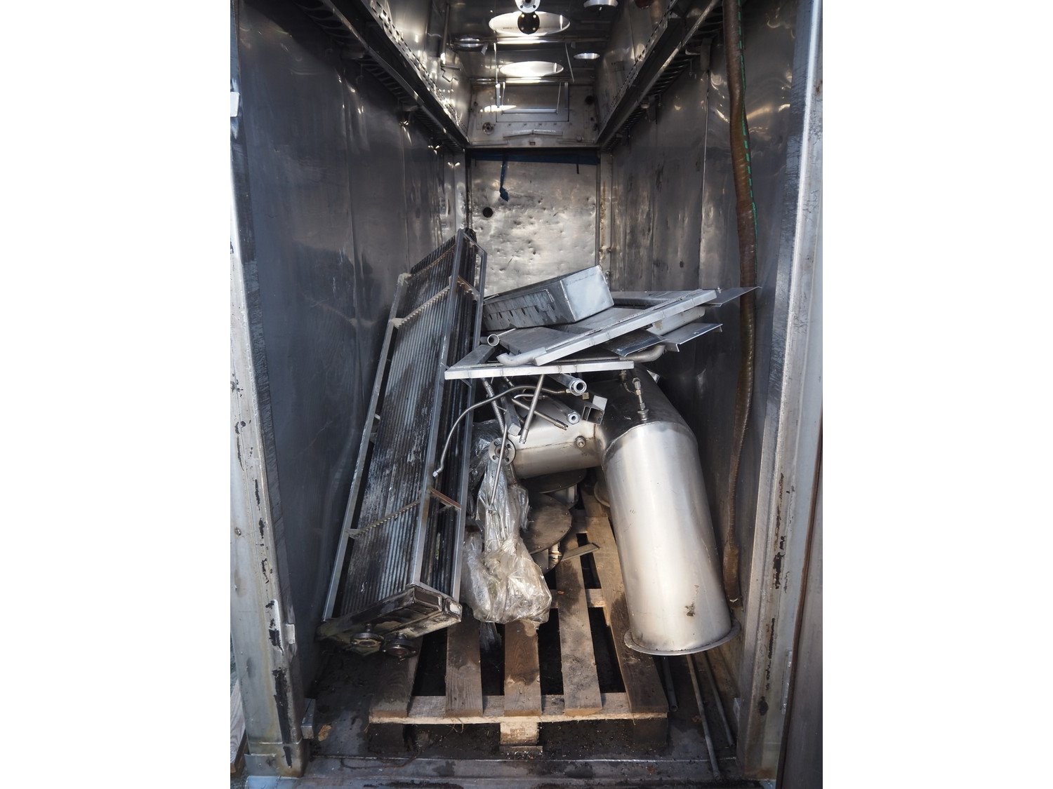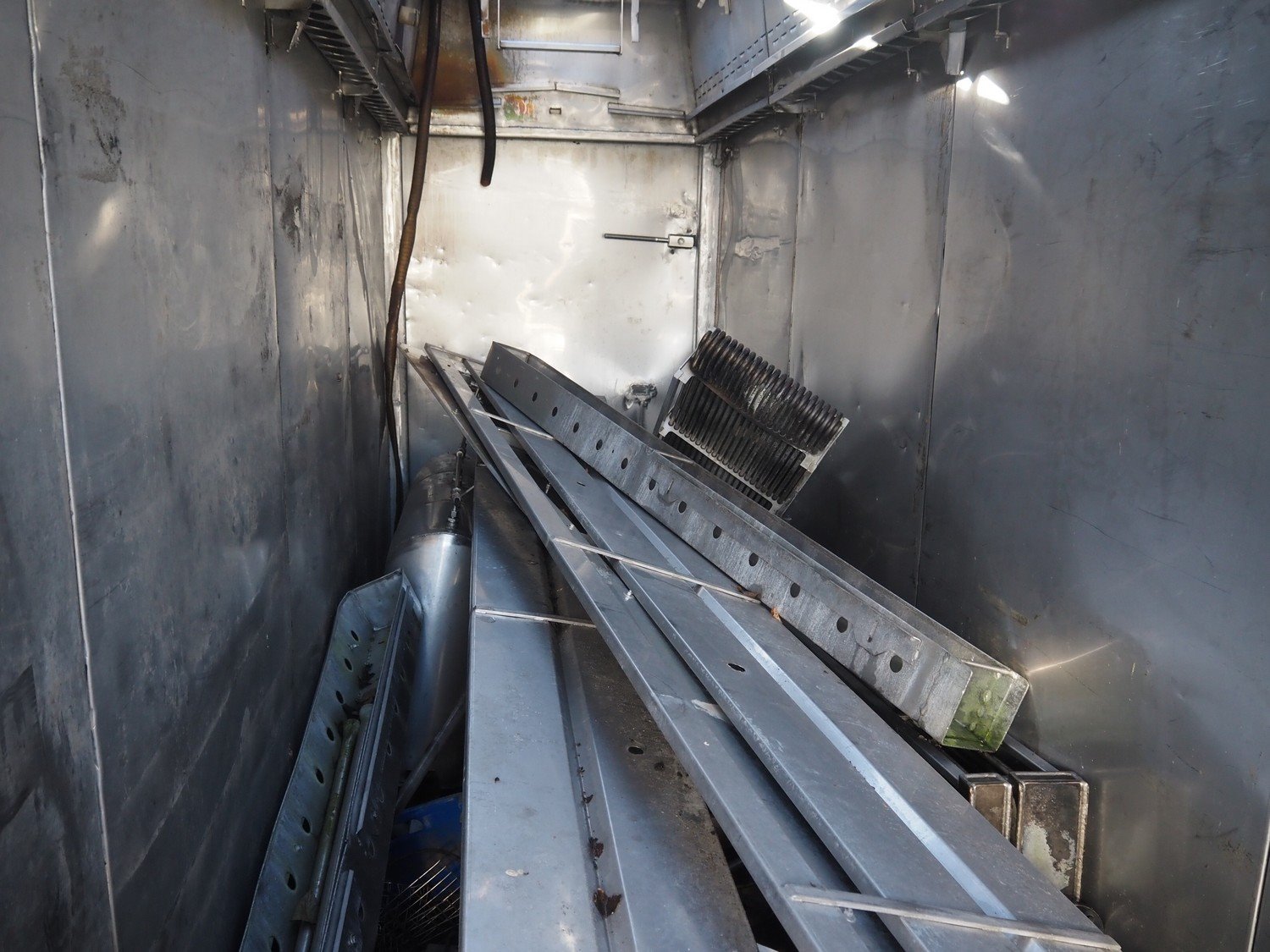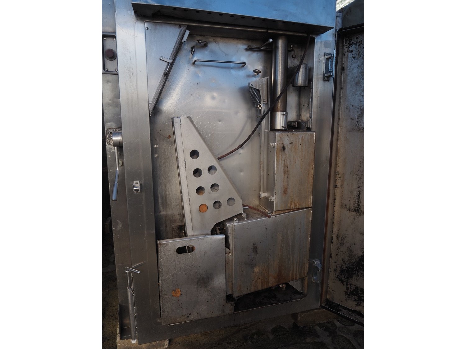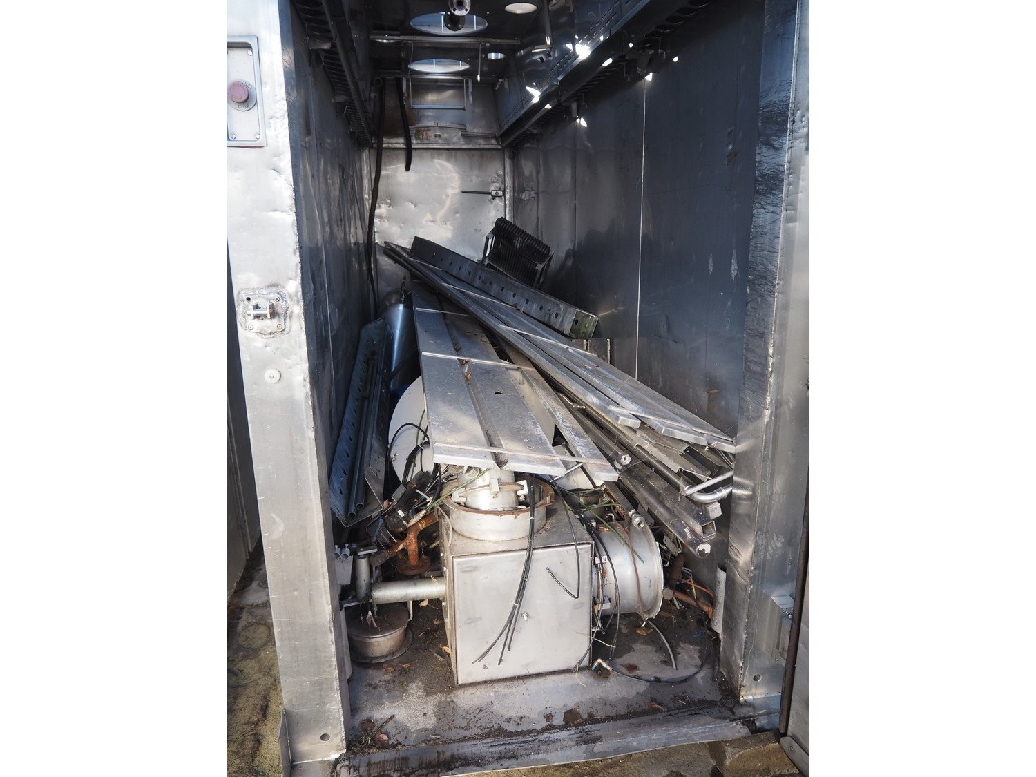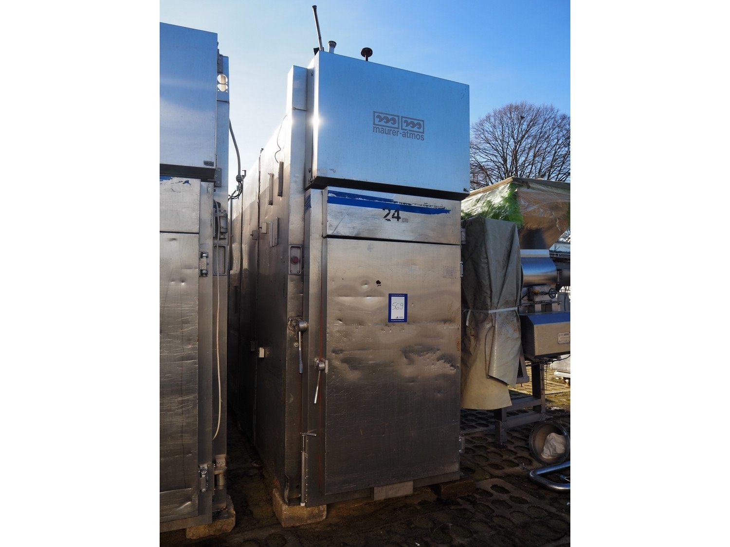 Maurer-Atmos GmbH push thru smoking chamber for 4 trolleys, total dimensions: 4660 mm x 1400 mm x 3300 mm.