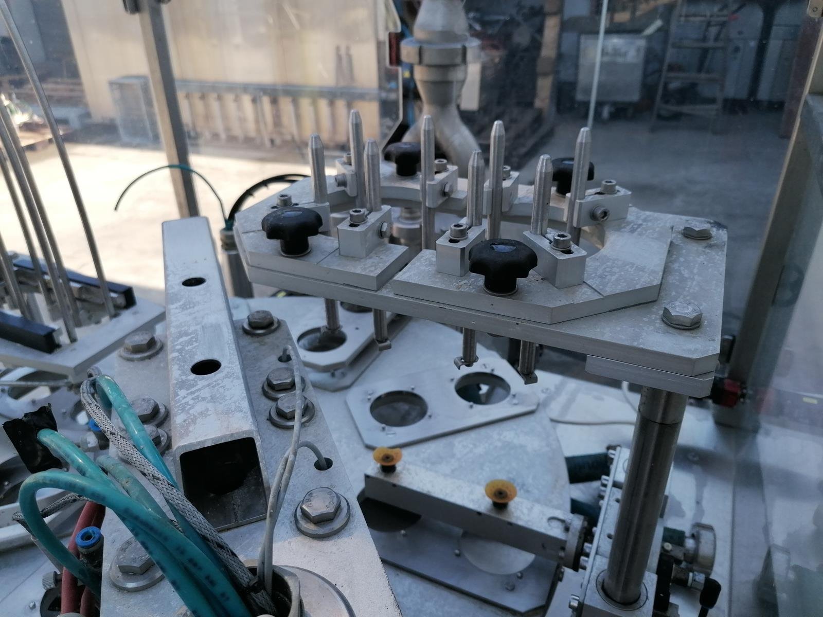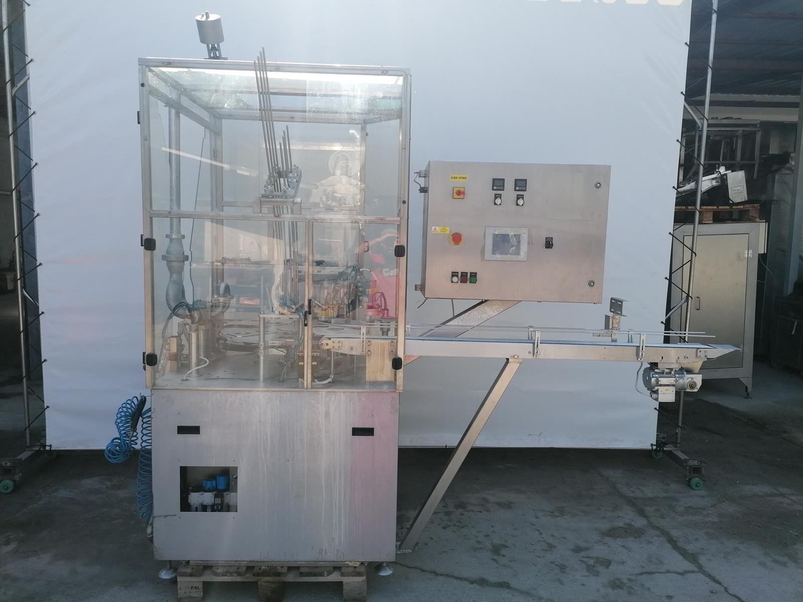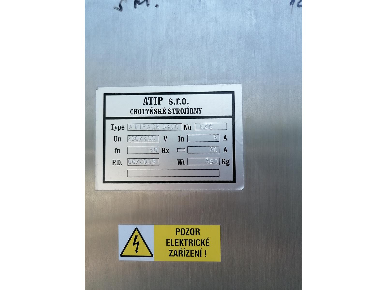 ATIP s.r.o. cup filling and closing machine, type: ATIPACK 5400, number: 026, year of construction: 06/2005, 230/400 V, 50 Hz, 8/20 A, weight: 650 kg, dye: (2x) Ø 70 mm, plastic outfeed belt, belt width: 80 mm, total dimensions: 2000 mm x 1130 mm x 2540 mm.