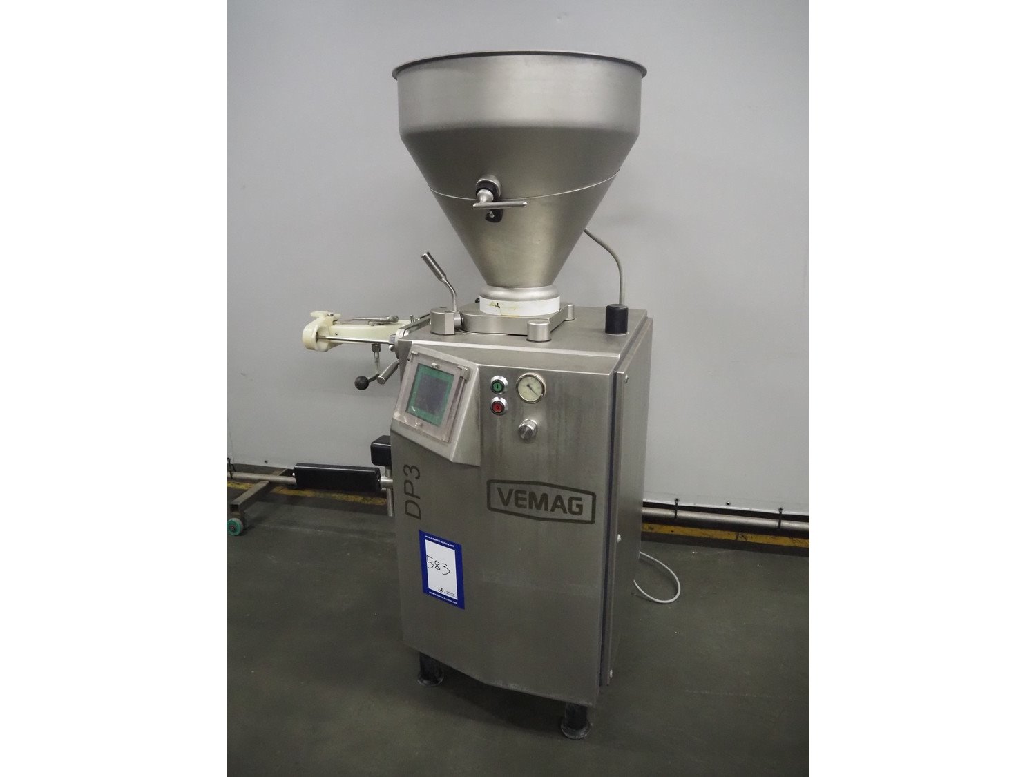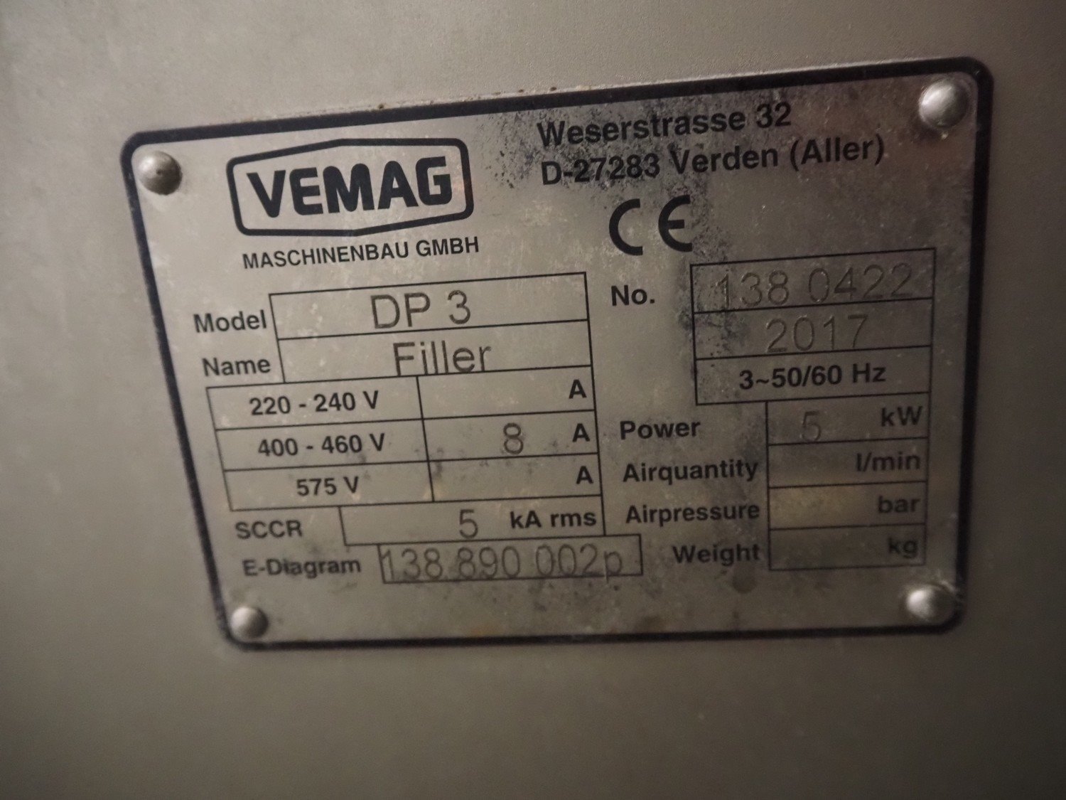 Vemag vacuum filling machine with twisting attachment, model: DP3, number: 1380422, year of construction: 2017, 400-460 V, 3 Ph, 50-60 Hz, 8 A, 5 kW, dimensions: 1050 mm x 800 mm x 750 mm.