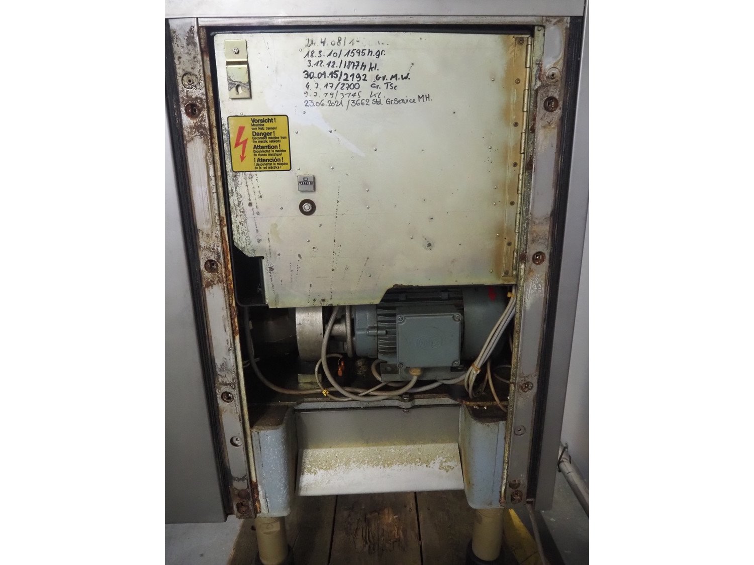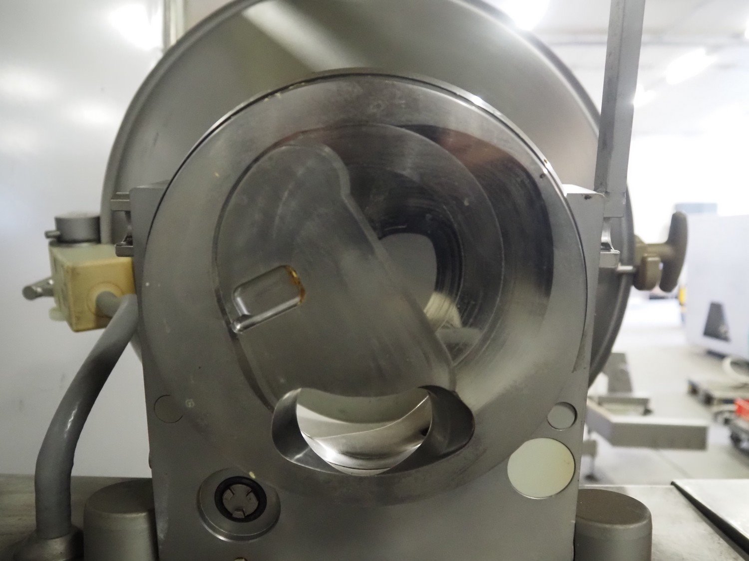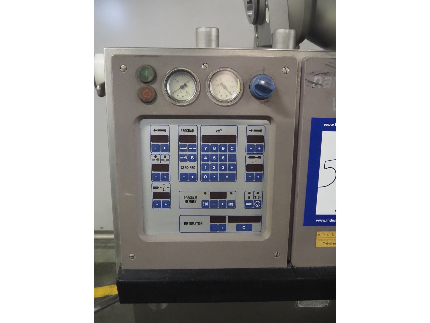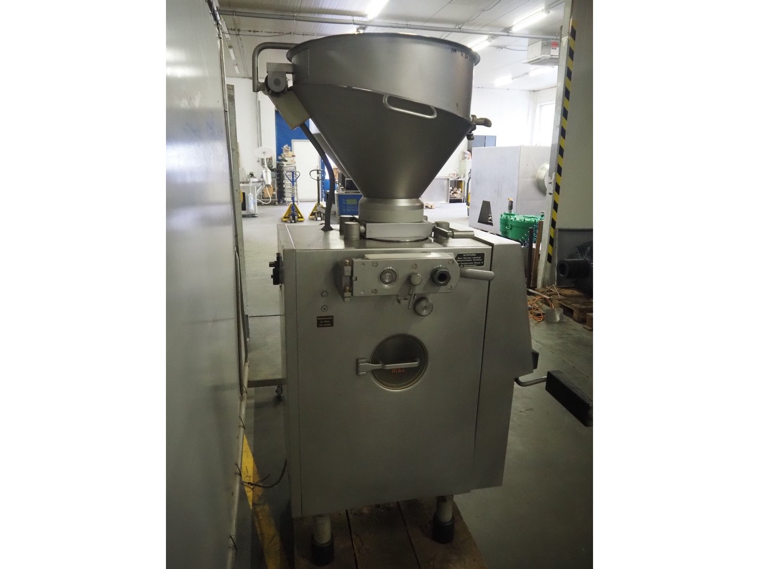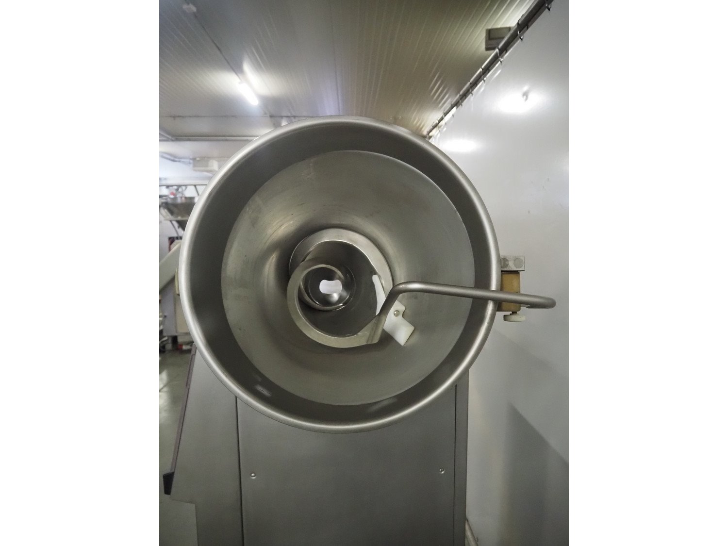 Handtmann vacuum filling machine with linking attachment, type: VF50, number: 3316, 380 V, 50 Hz, 11 A, 4 kW, dimensions: 830 mm x 690 mm x 1800 mm.