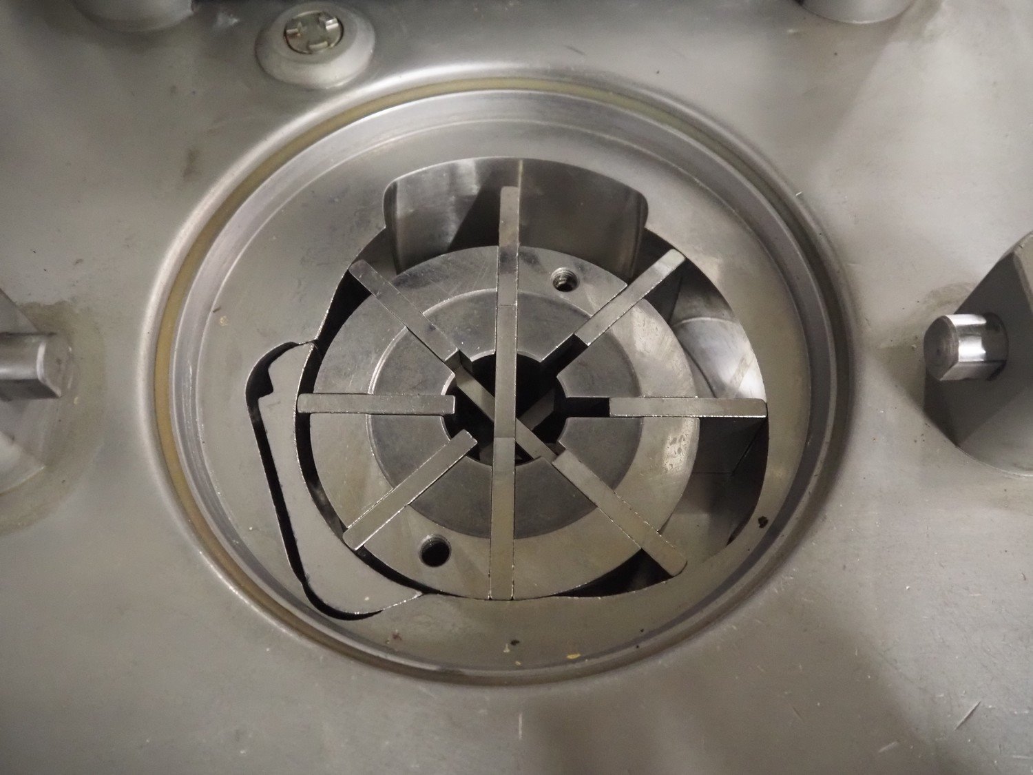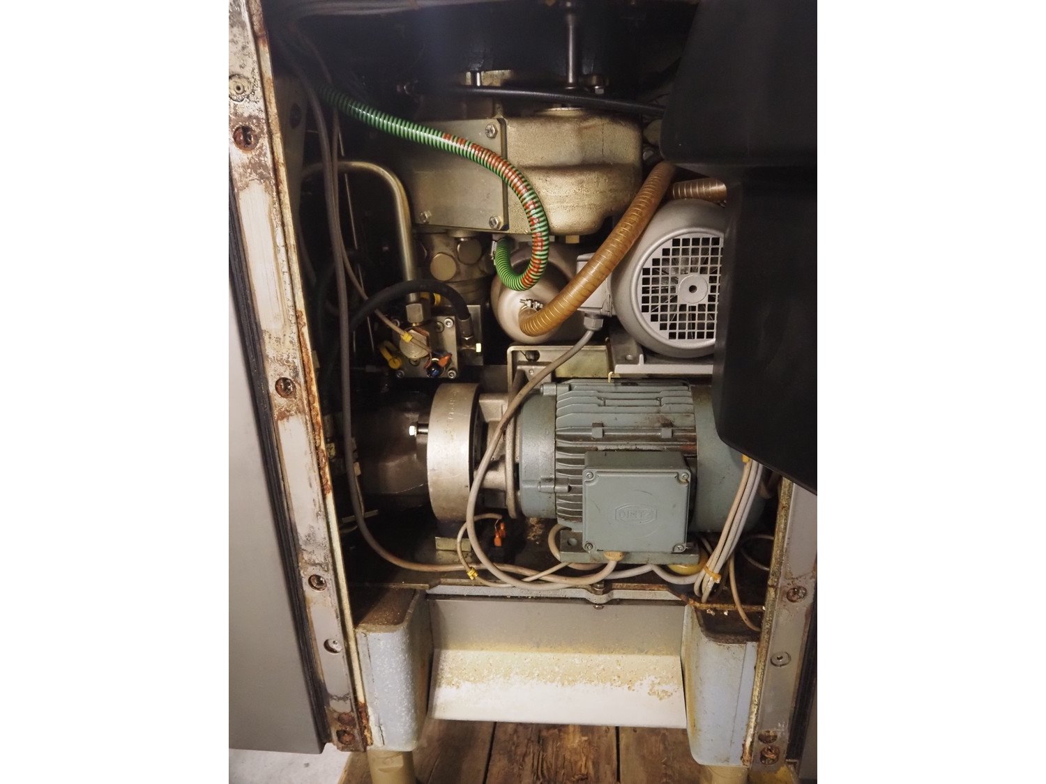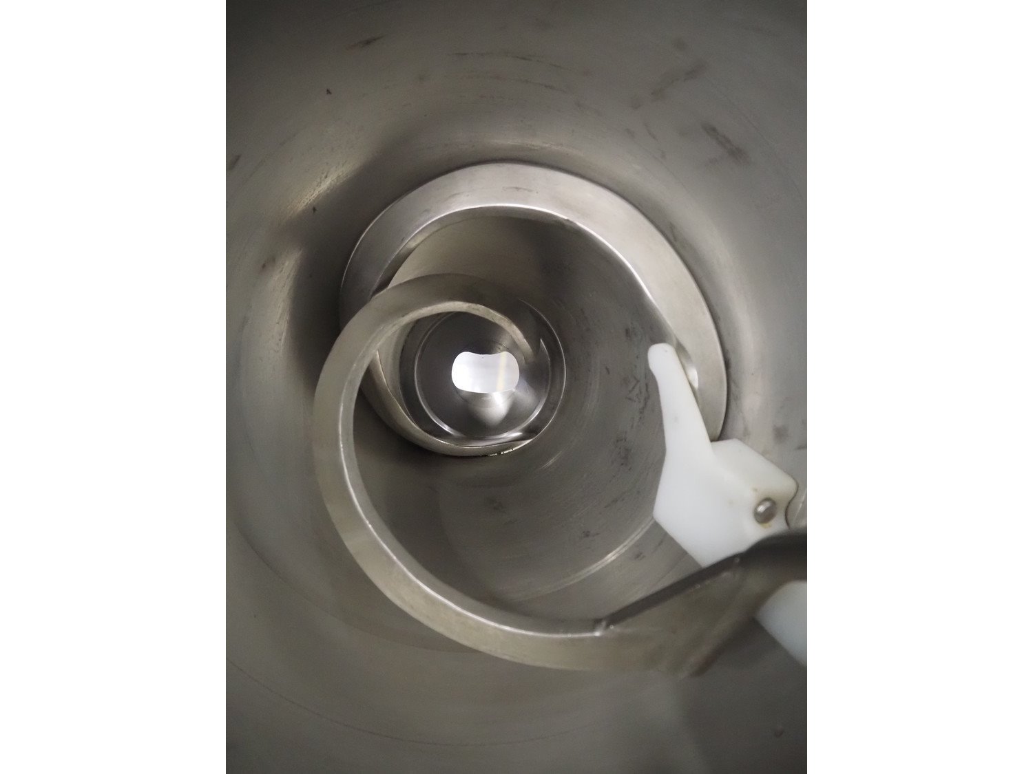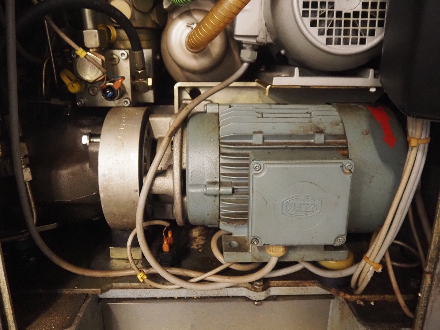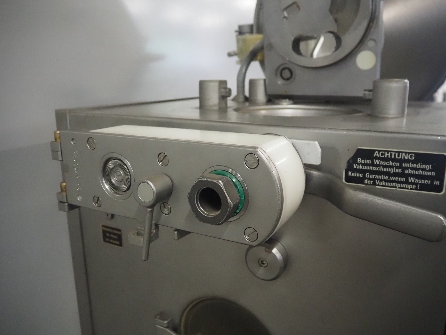 Handtmann vacuum filling machine with linking attachment, type: VF50, number: 3316, 380 V, 50 Hz, 11 A, 4 kW, dimensions: 830 mm x 690 mm x 1800 mm.