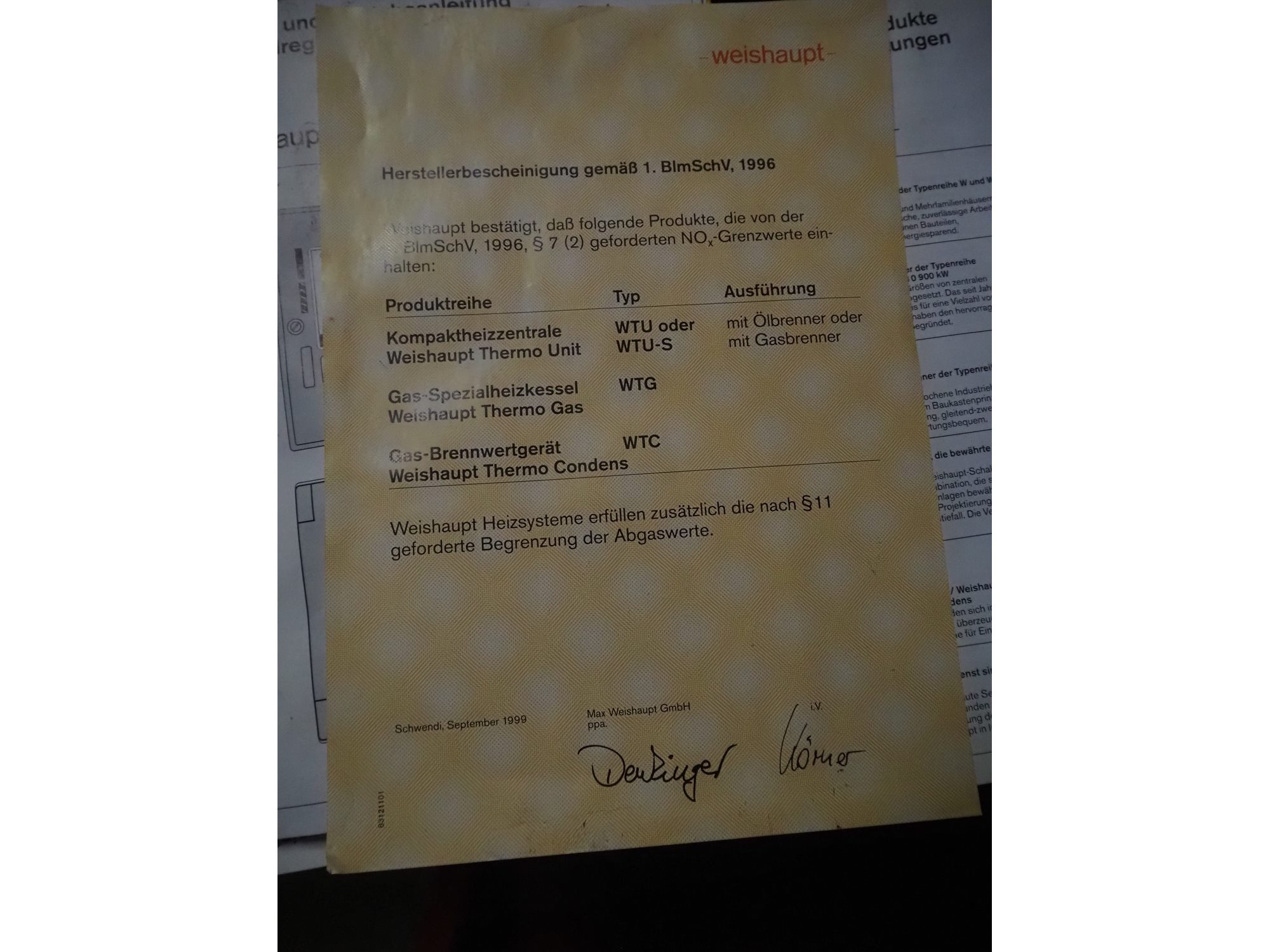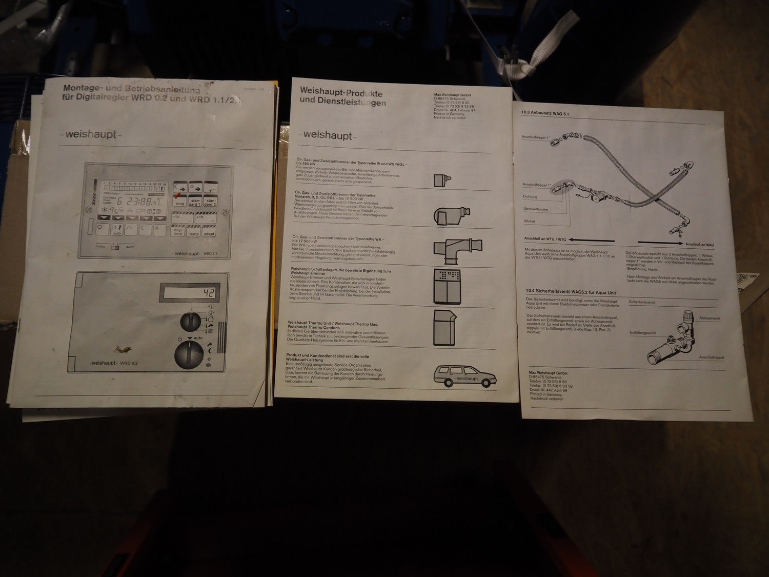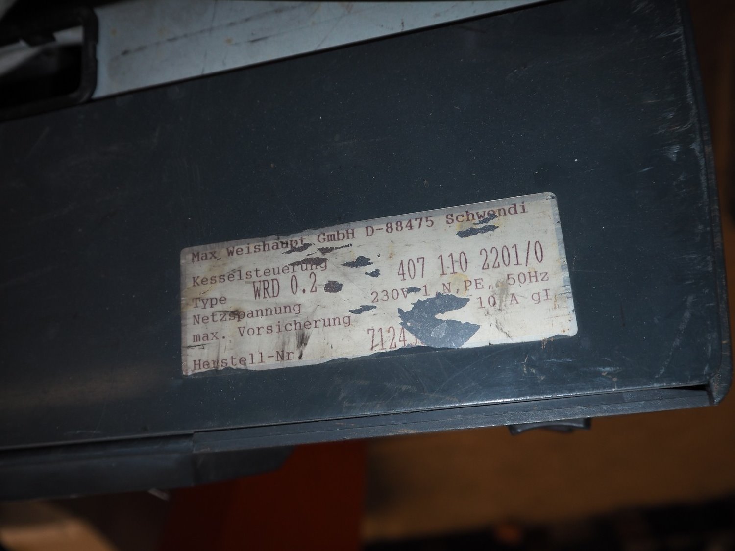 Weishaupt burner, type: WL 10-B, number: 4909112, year of construction: 2000, 230 V, 1 Ph, 50 Hz, 16 A, 0.40/0.22 kW, dimensions: 1200 mm x 570 mm x 1050 mm.