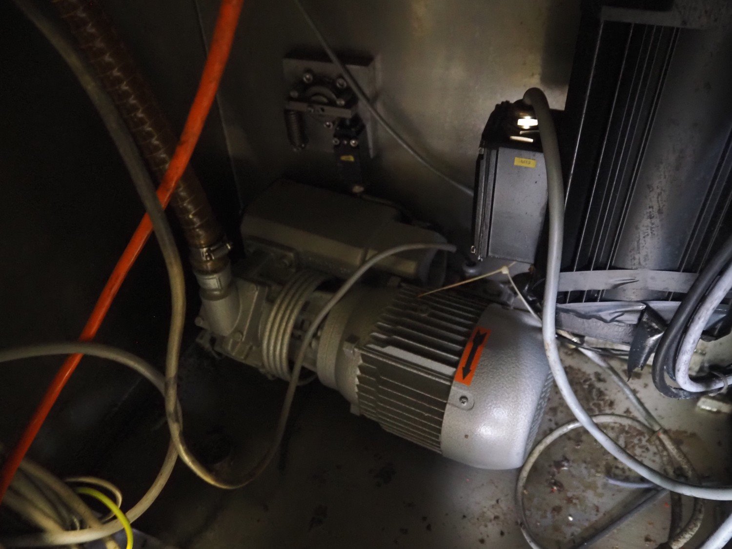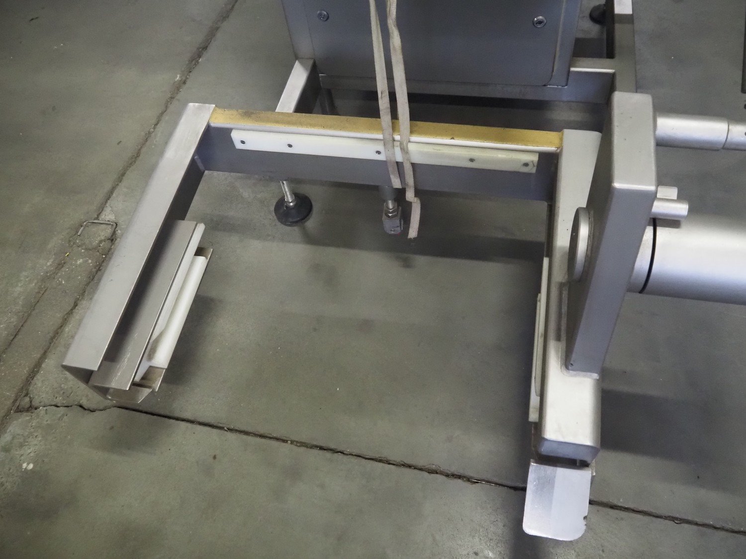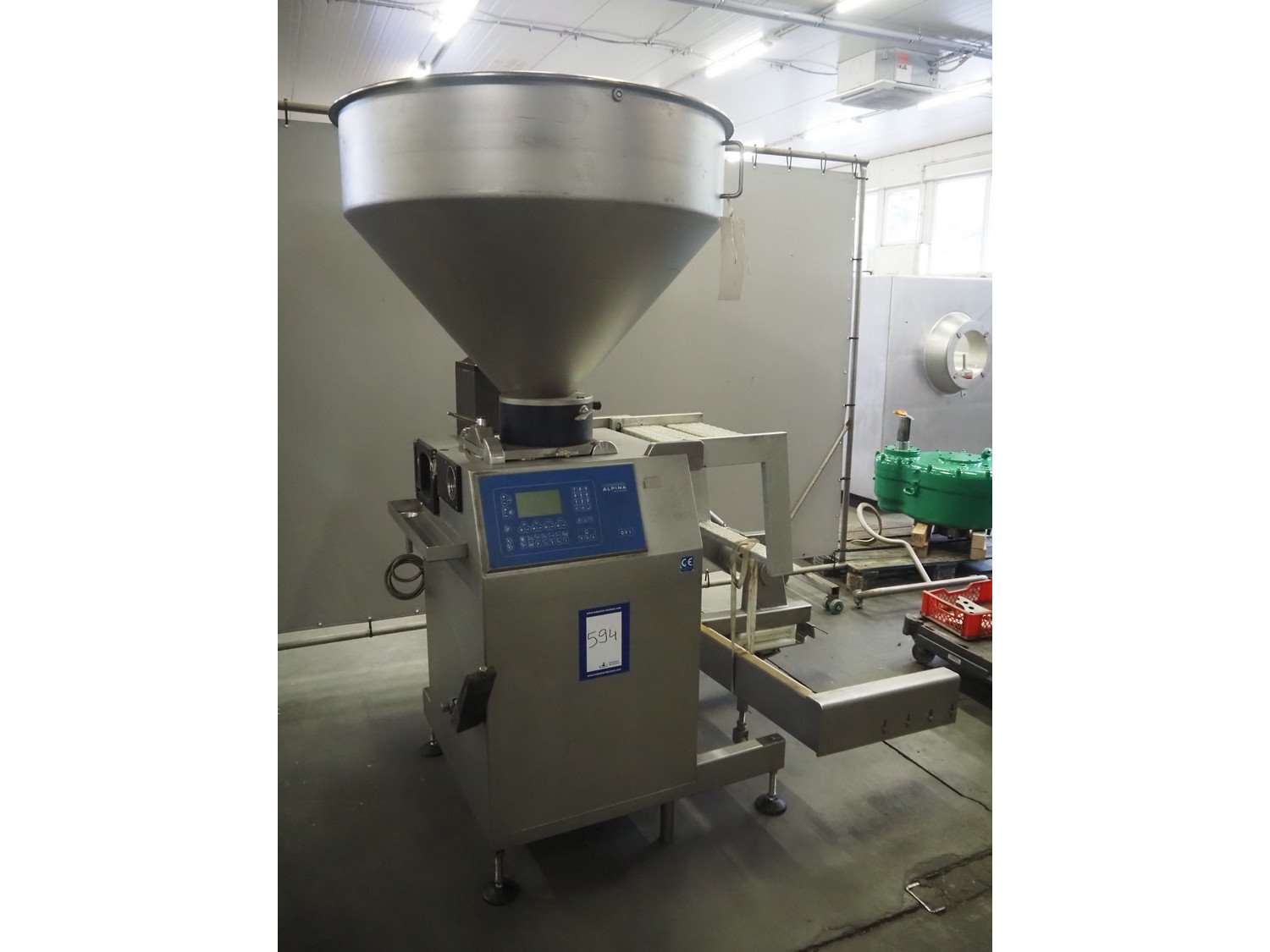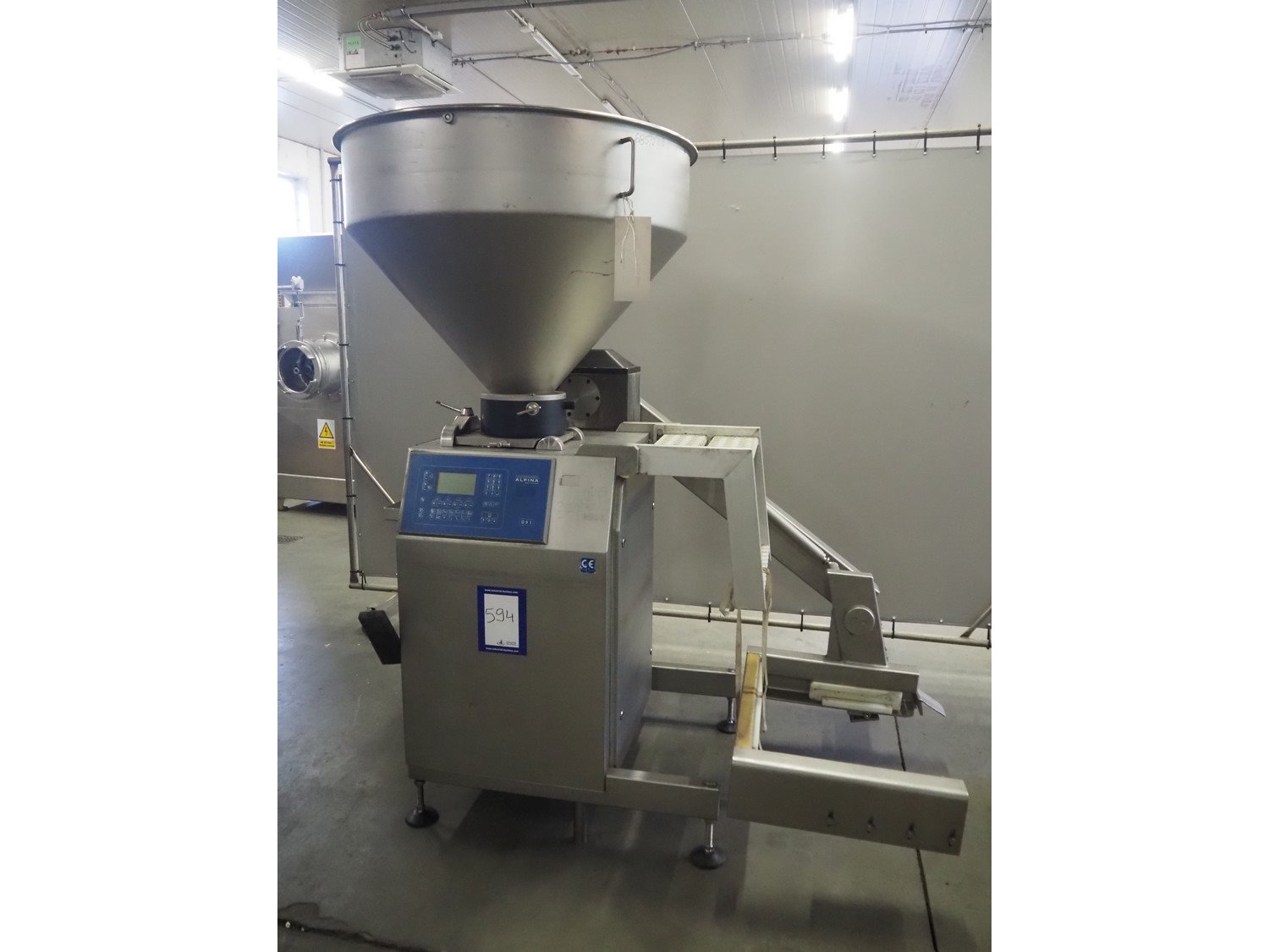 Hoegger Alpina vacuum filling machine with lifter for meat bins, type: SF 3200, machine number: 832512, 400 V, 3 Ph, 50 Hz, 15 A, dimensions: 1750 mm x 1080 mm x 2000 mm.