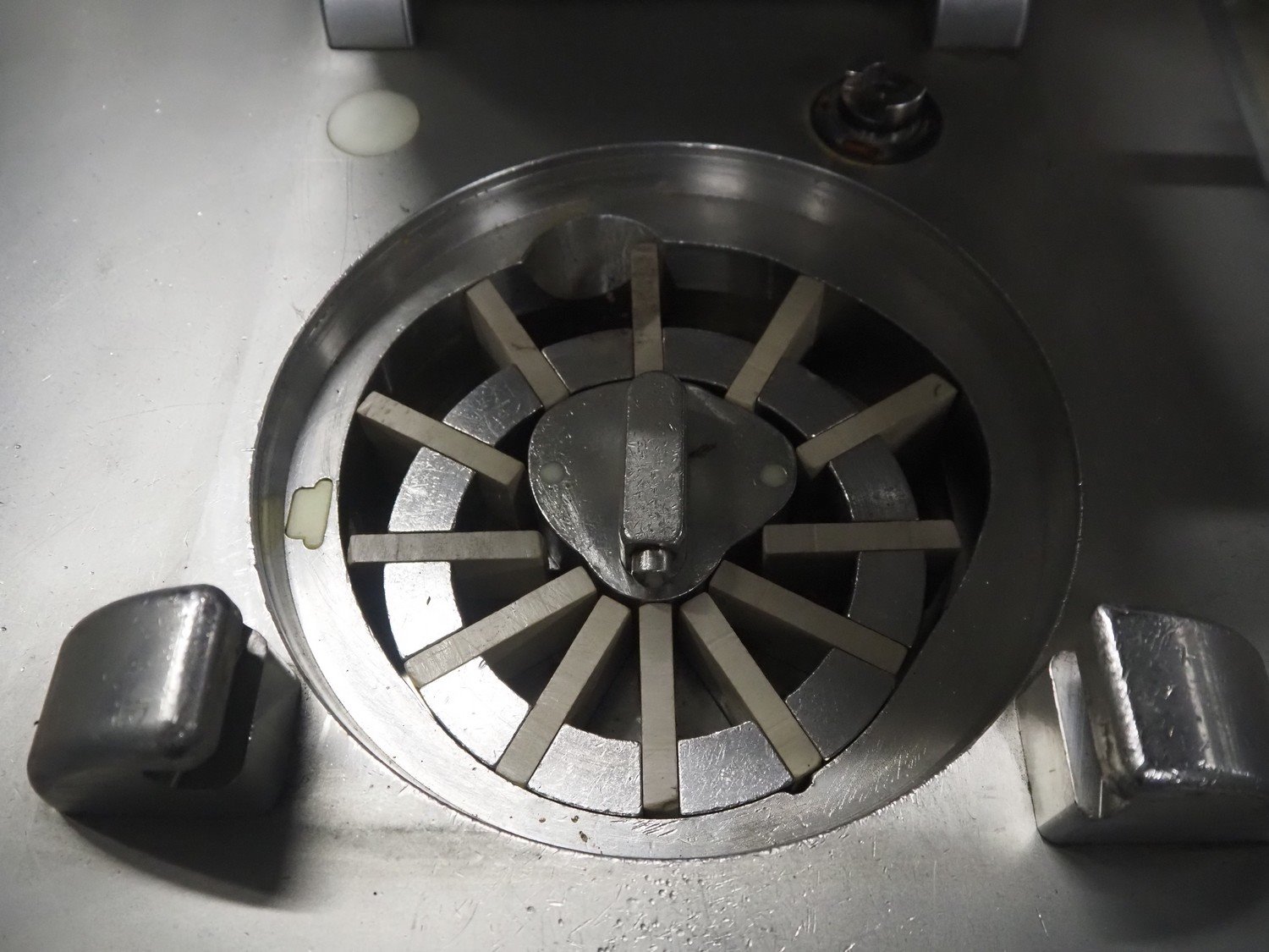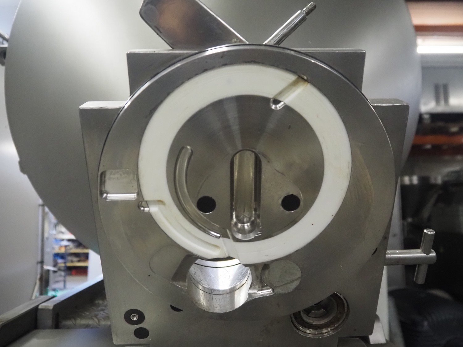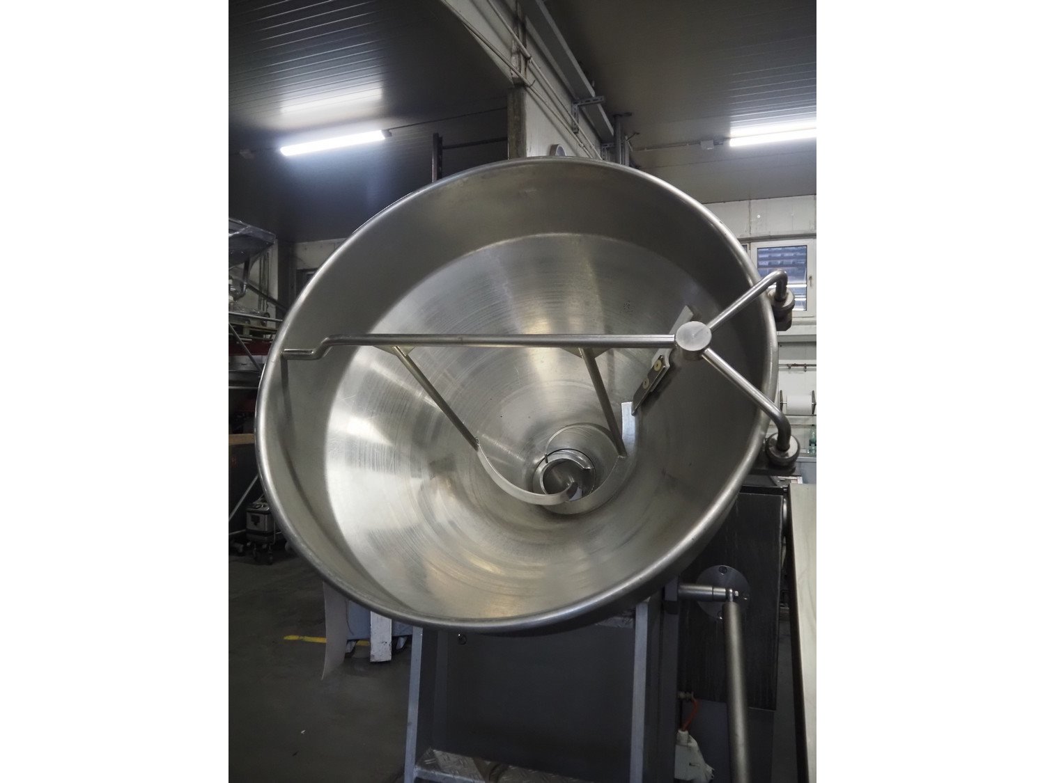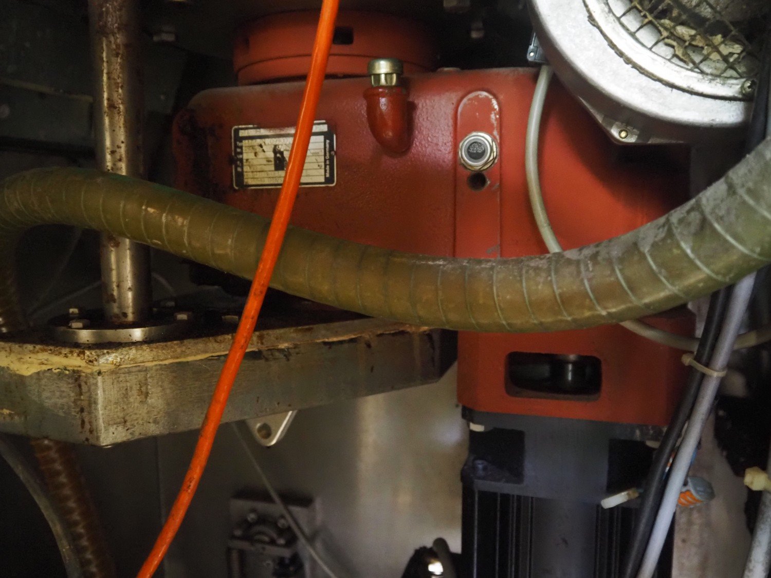 Hoegger Alpina vacuum filling machine with lifter for meat bins, type: SF 3200, machine number: 832512, 400 V, 3 Ph, 50 Hz, 15 A, dimensions: 1750 mm x 1080 mm x 2000 mm.