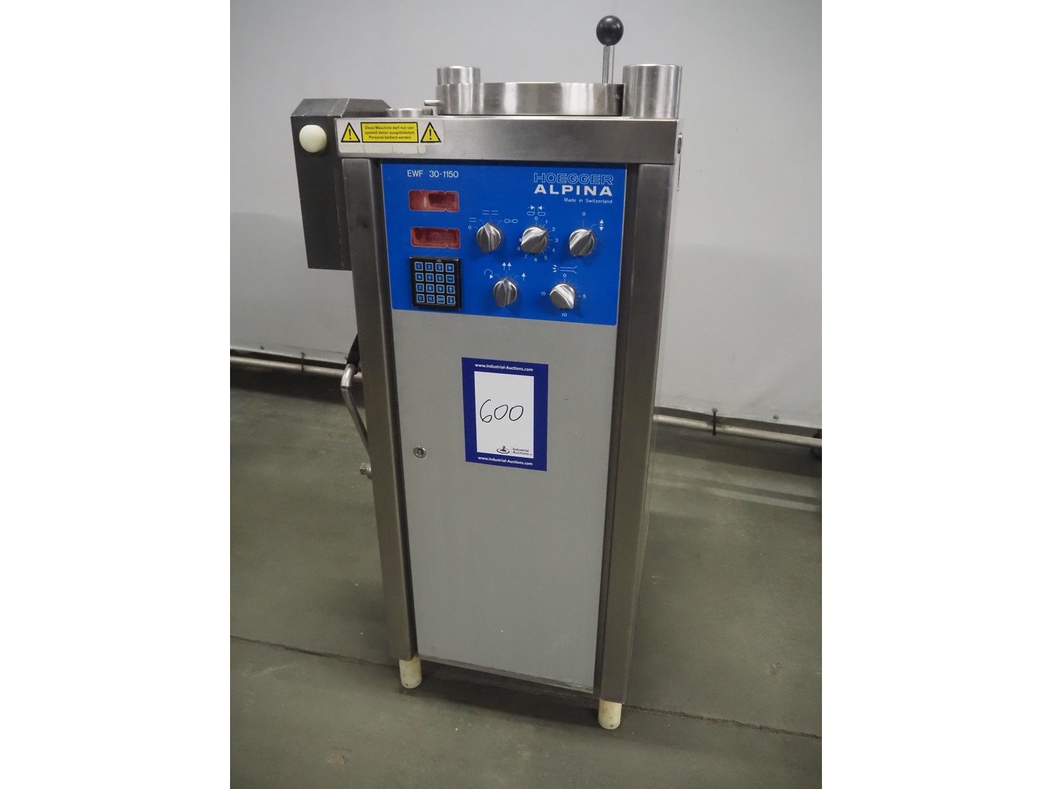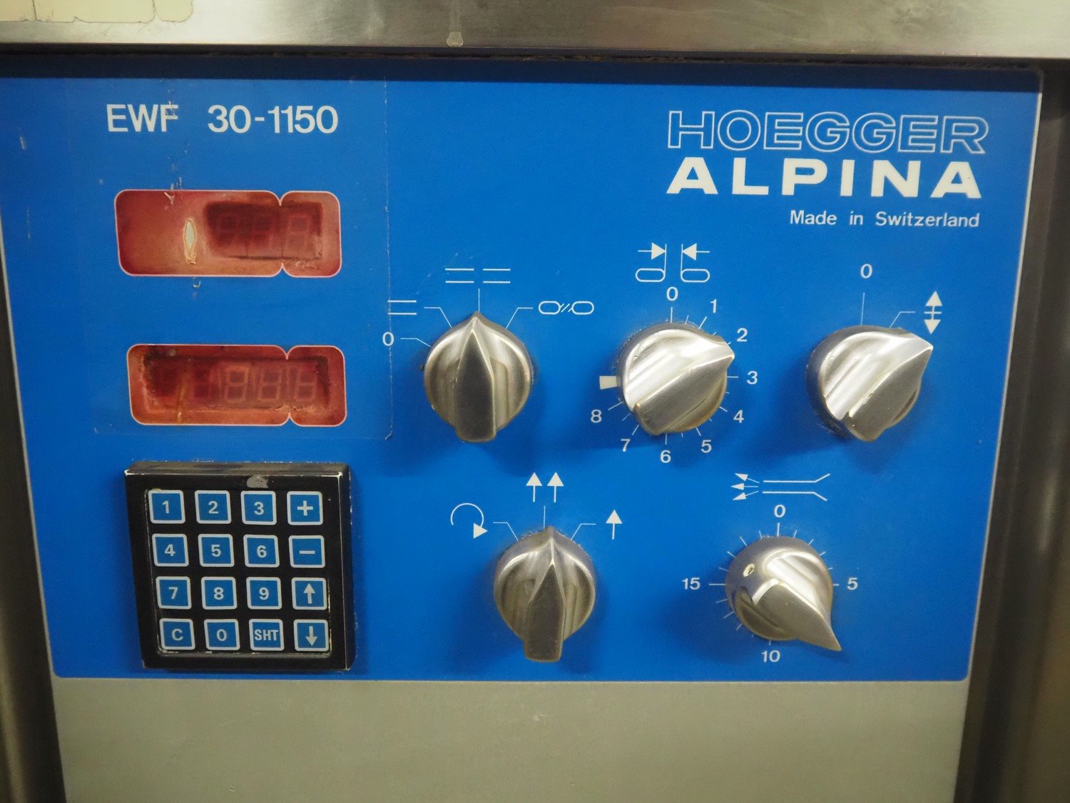 Hoegger Alpina piston filler, type: EWF 1150, machine number: 817318, 380 V, 3 Ph, 50 Hz, 8 A, dimensions: 690 mm x 630 mm x 1300 mm.