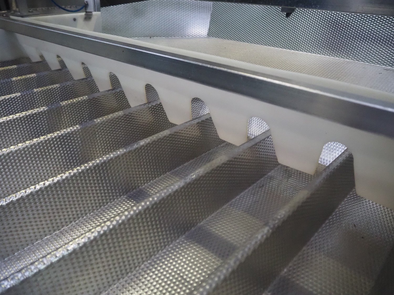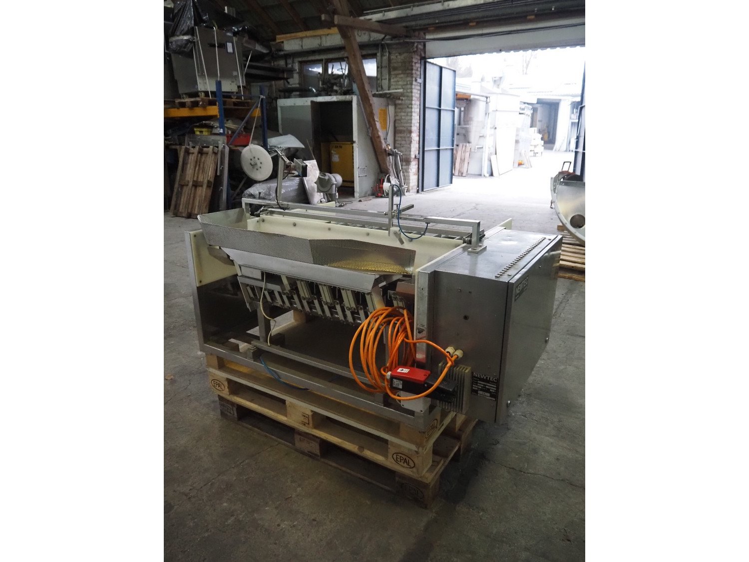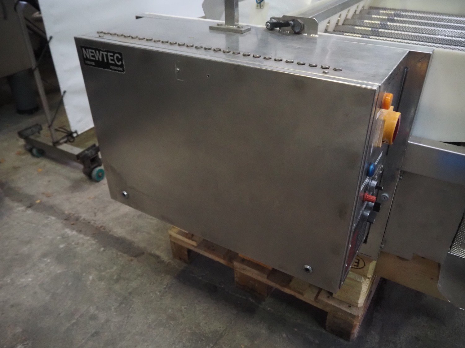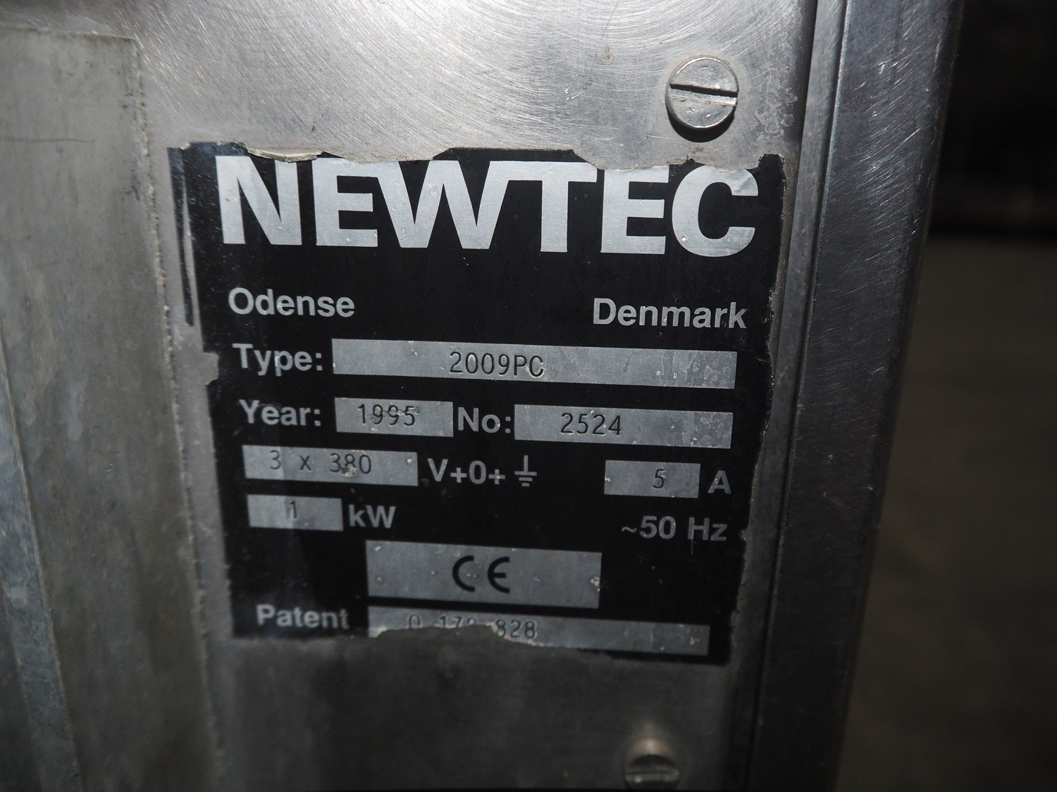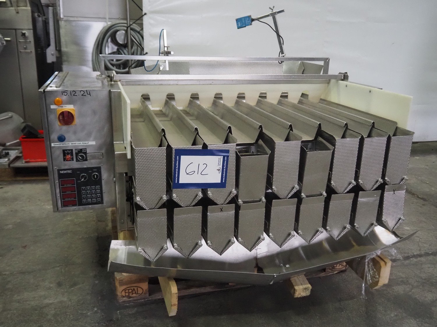 Newtec 9-lanes linear weigher, type: 200PC, serial number: 2524, year of construction: 1995, 380 V, 3 Ph, 50 Hz, 5 A, 1 kW, lane width: (9x) 110 mm, total dimensions: 1520 mm x 1380 mm x 1300 mm.