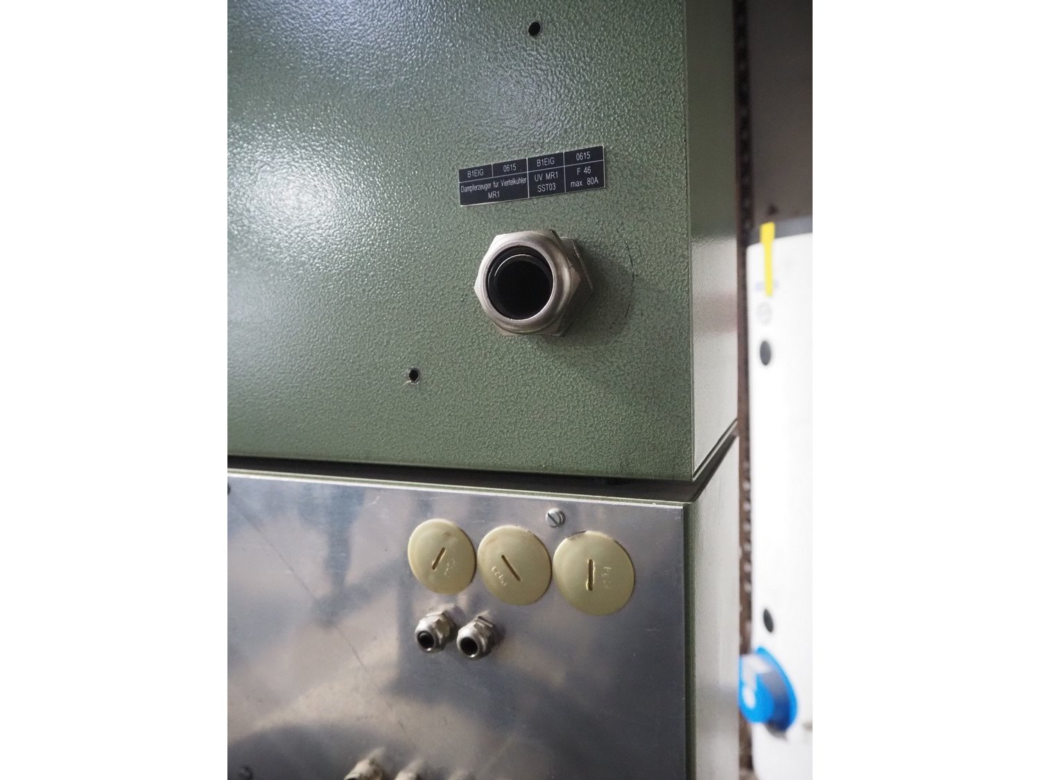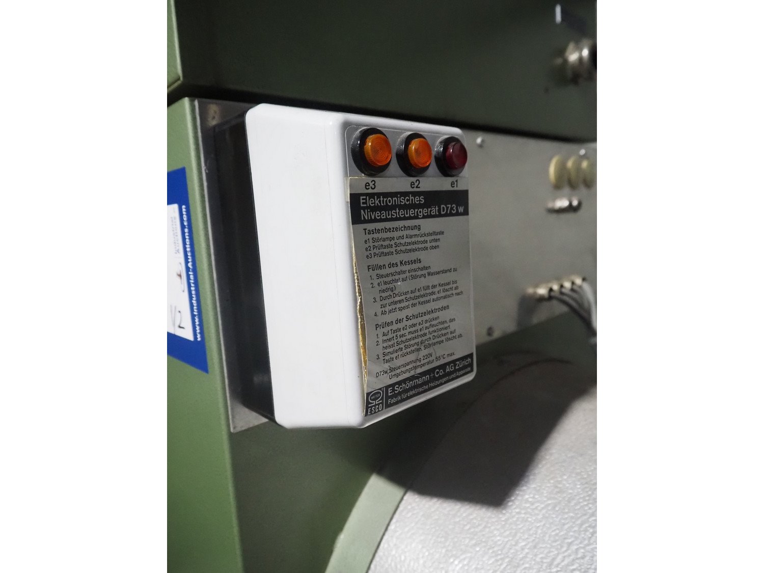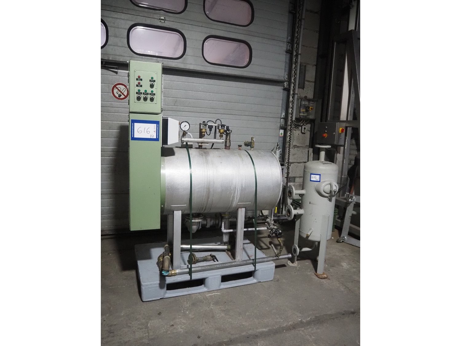 E. Schönmann + Co.AG. steam generator, type: DE 73-40 B, number: 83-3982, year of construction: 06-1985, 380/220 V, 3 Ph, 40 kW, volume: 60 liter, medium: H20 dimensions: 1860 mm x 650 mm x 1650 mm. Including Xmet AG steel pressure vessel, number: S 0461, year of construction: 12/2001, volume: 50 liter, working pressure: 4.0 bar, dimensions: 580 mm x 480 mm x 1250 mm.