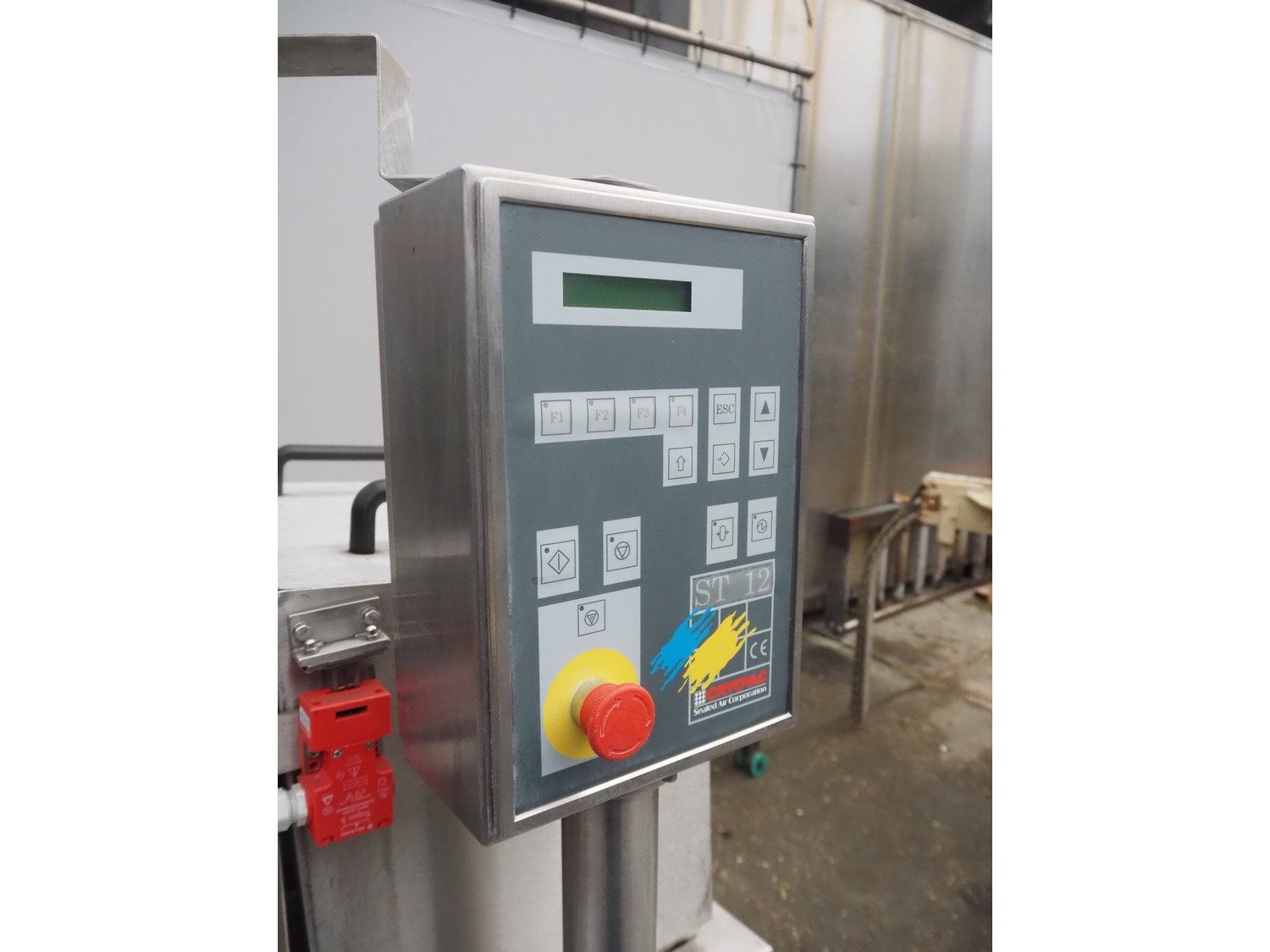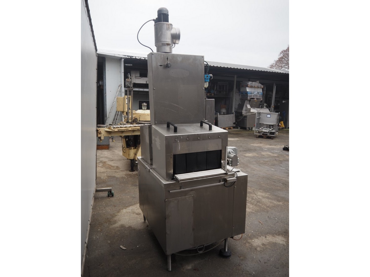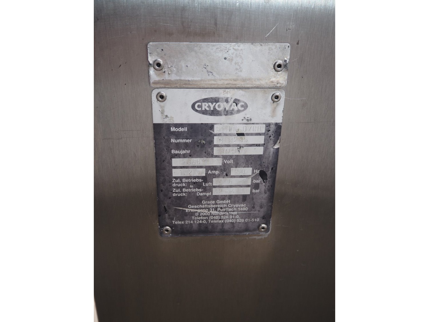Cryovac shrink tunnel, model: ST 106-D/RH, number: M3235, year of construction: 1991, 380 V, 50 Hz, 2 A, s/s belt, belt width: 440 mm, clearance: 475 mm x 250 mm, total dimensions: 1100 mm x 920 mm