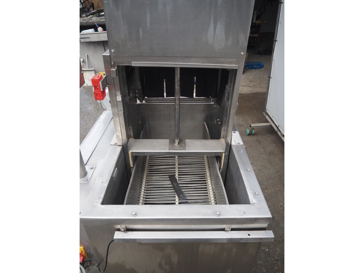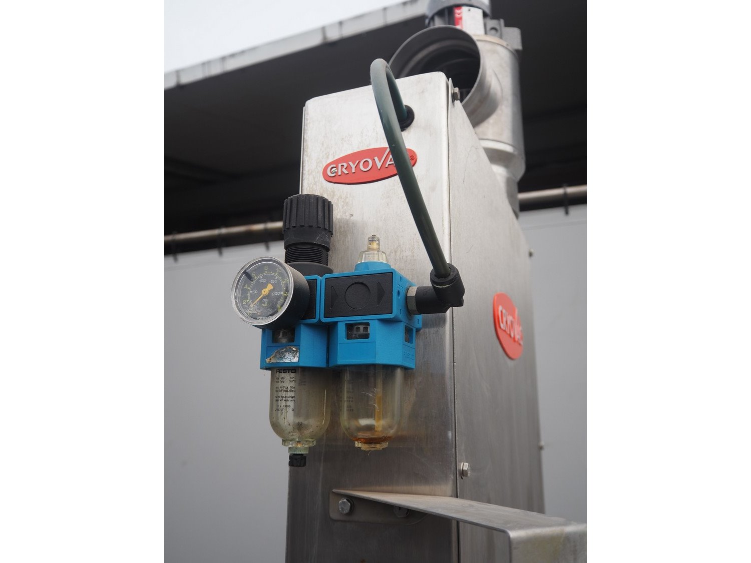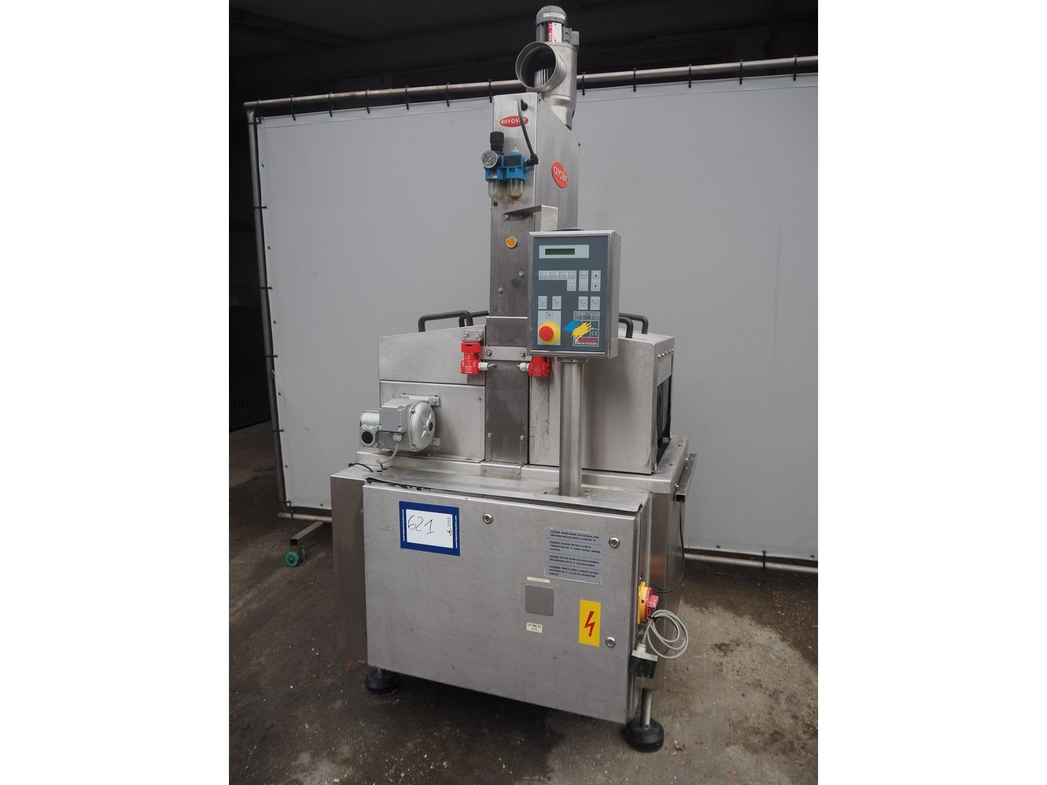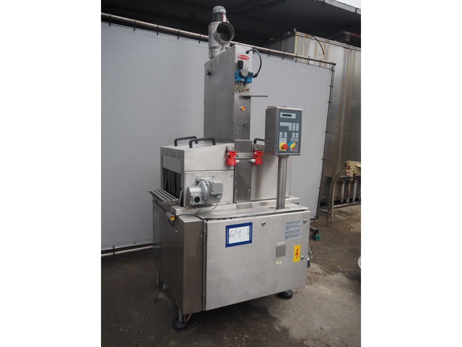 Cryovac shrink tunnel, model: ST 106-D/RH, number: M3235, year of construction: 1991, 380 V, 50 Hz, 2 A, s/s belt, belt width: 440 mm, clearance: 475 mm x 250 mm, total dimensions: 1100 mm x 920 mm