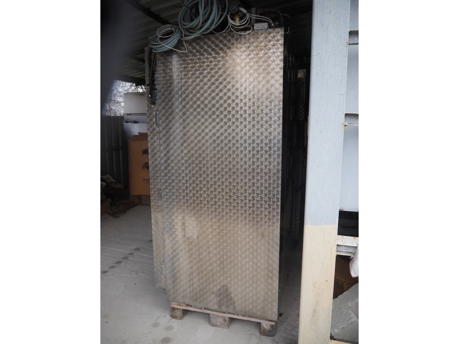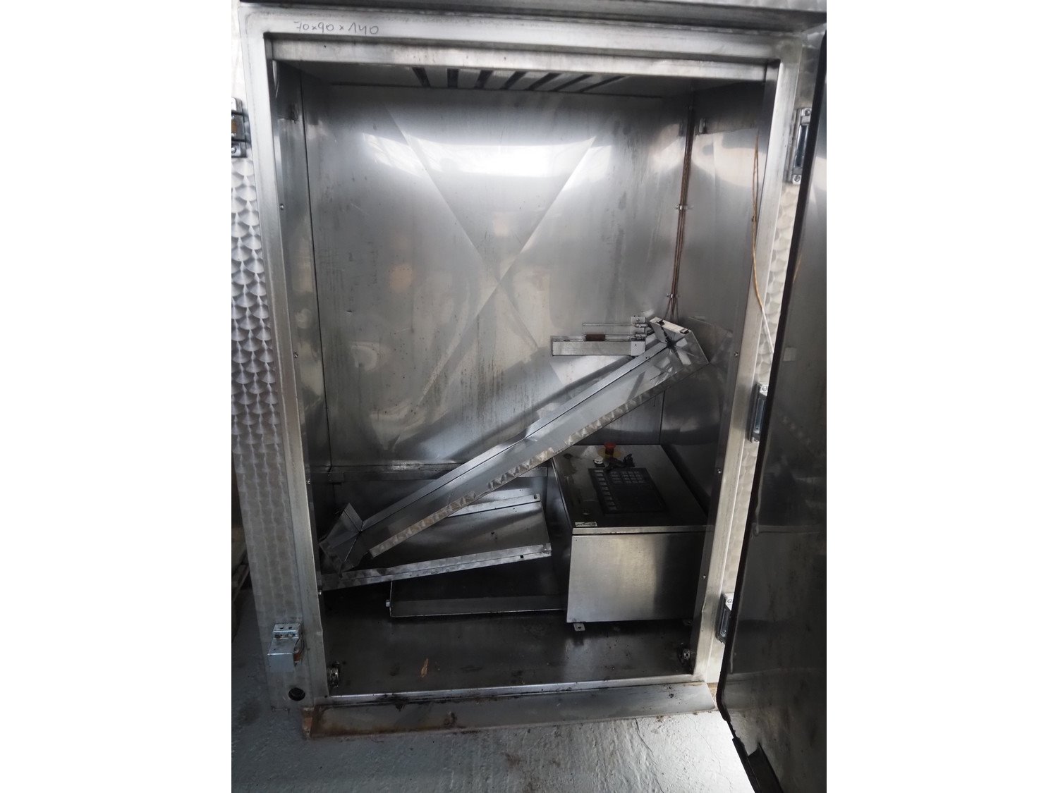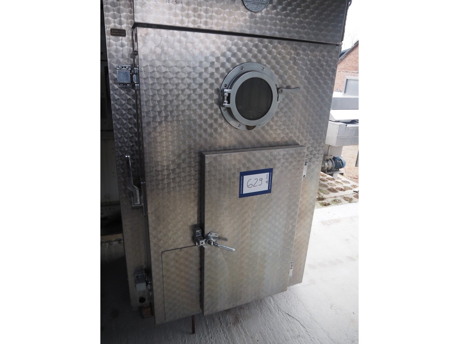 Bastra smoking chamber with wood chip smoke generator, type: 1001CTF, number: 5648, year of construction: 1-1991, 380 V, 3 Ph, 50 Hz, 19.05 kW, inside dimensions: 950 mm x 700 mm x 1430 mm, total dimensions: 1270 mm x 1130 mm x 1920 mm.