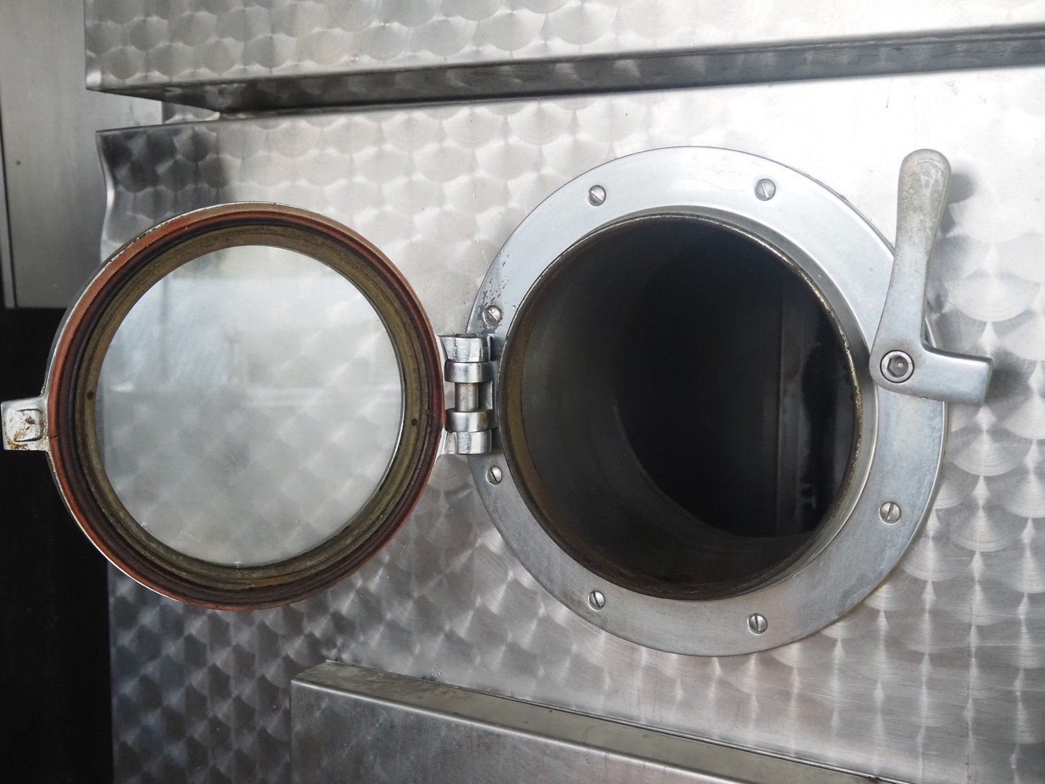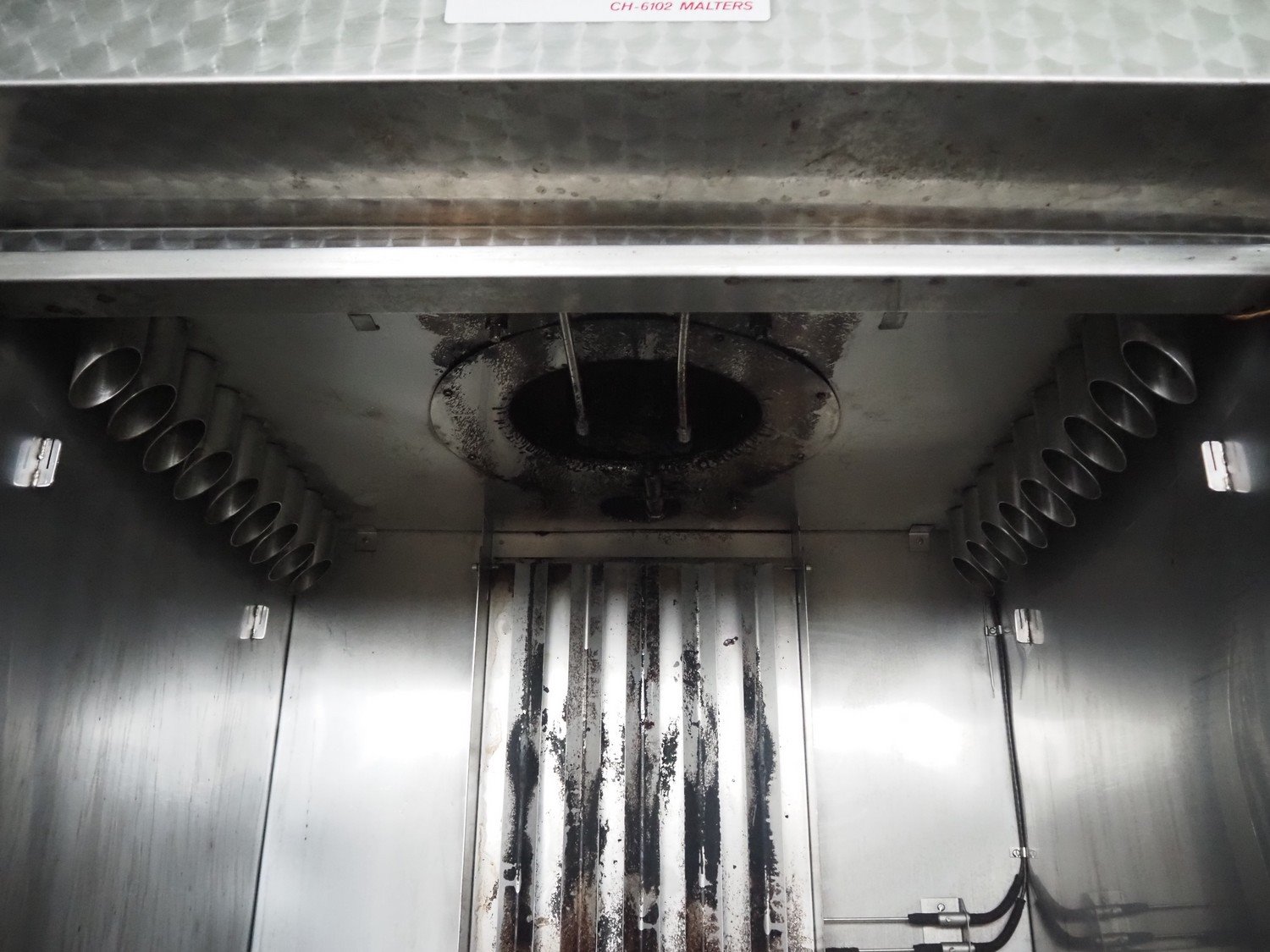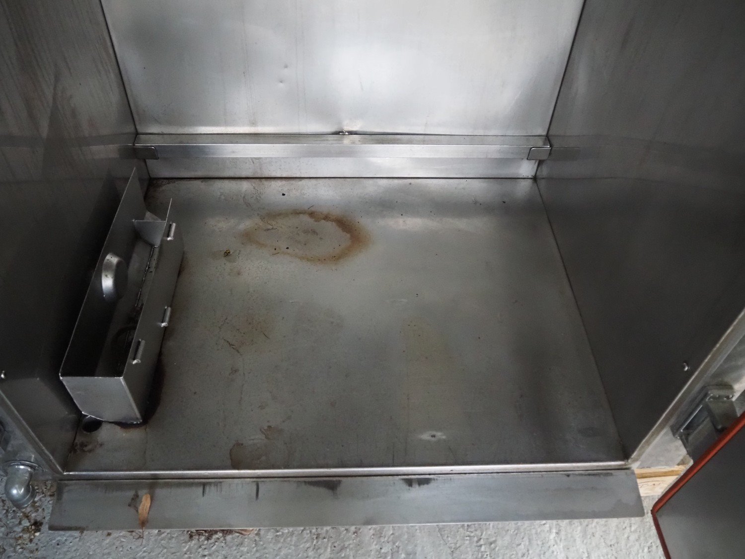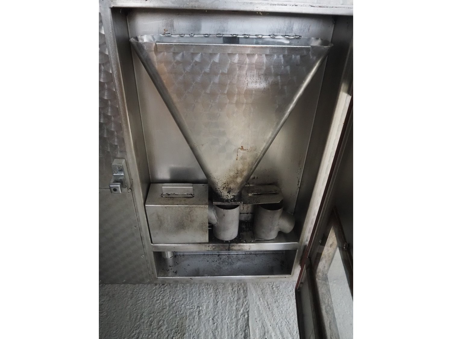 Bastra smoking chamber with wood chip smoke generator, model: Bastramat B 951, inside dimensions: 950 mm x 700 mm x 1430 mm, total dimensions: 1270 mm x 1130 mm x 1920 mm.