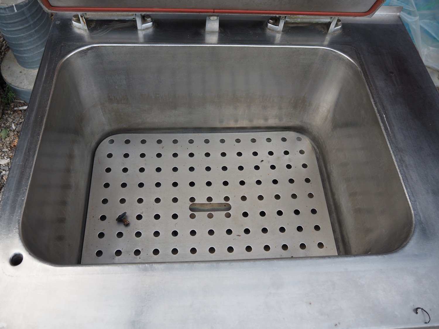 Cooking vessel, inside dimensions: 800 mm x 600 mm x 380 mm, total dimensions: 1060 mm x 1020 mm x 1000 mm.