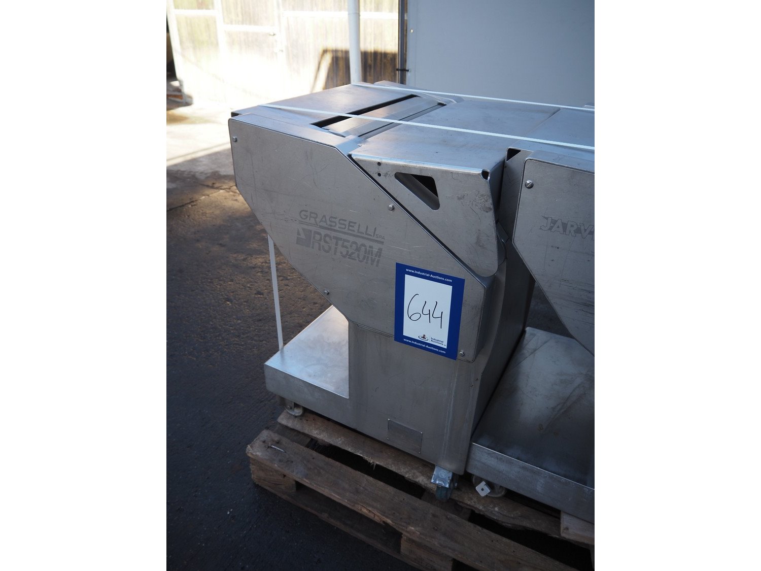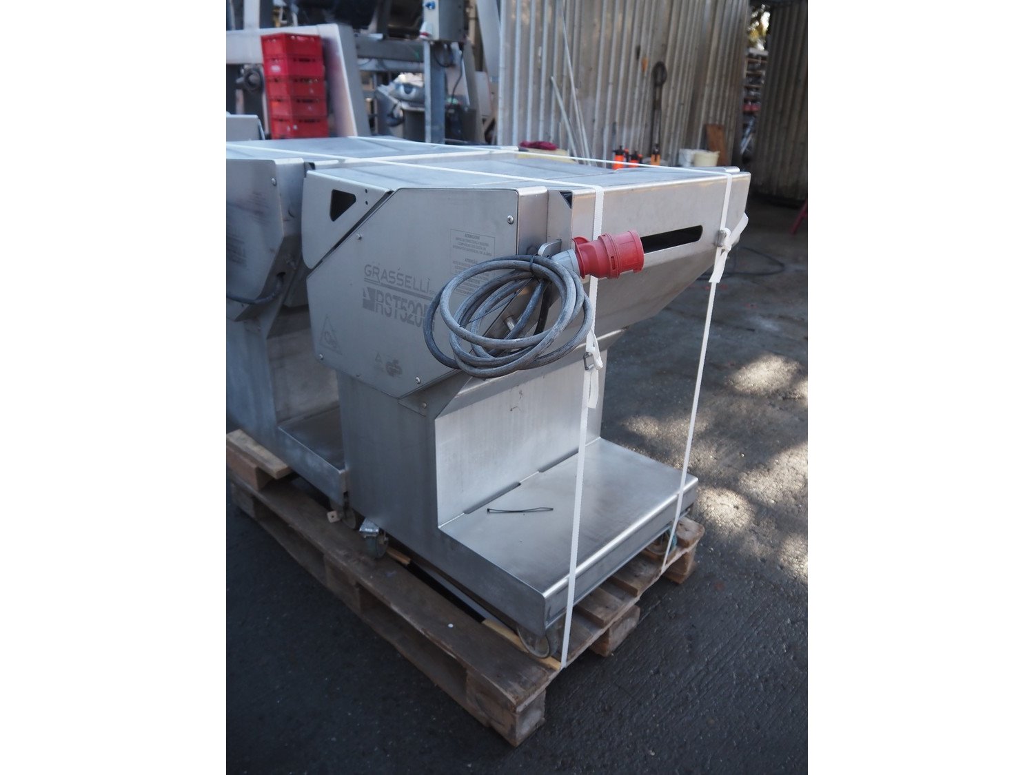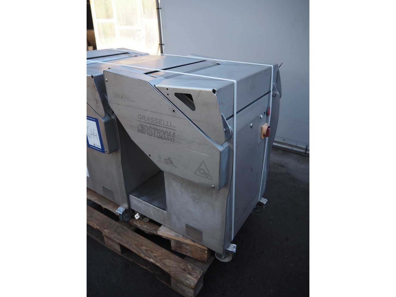 2 Grasselli mobile skinning machines, model: RST520-M, serial number: P11R03/M1382 and 033R00/M1275, year of construction: 2011 and 2010, 400 V, 3 pH, 50 Hz, 2.3 A, 0.9 kW, working width: 480 mm, total dimensions: (2x) 700 mm x 700 mm x 950 mm.