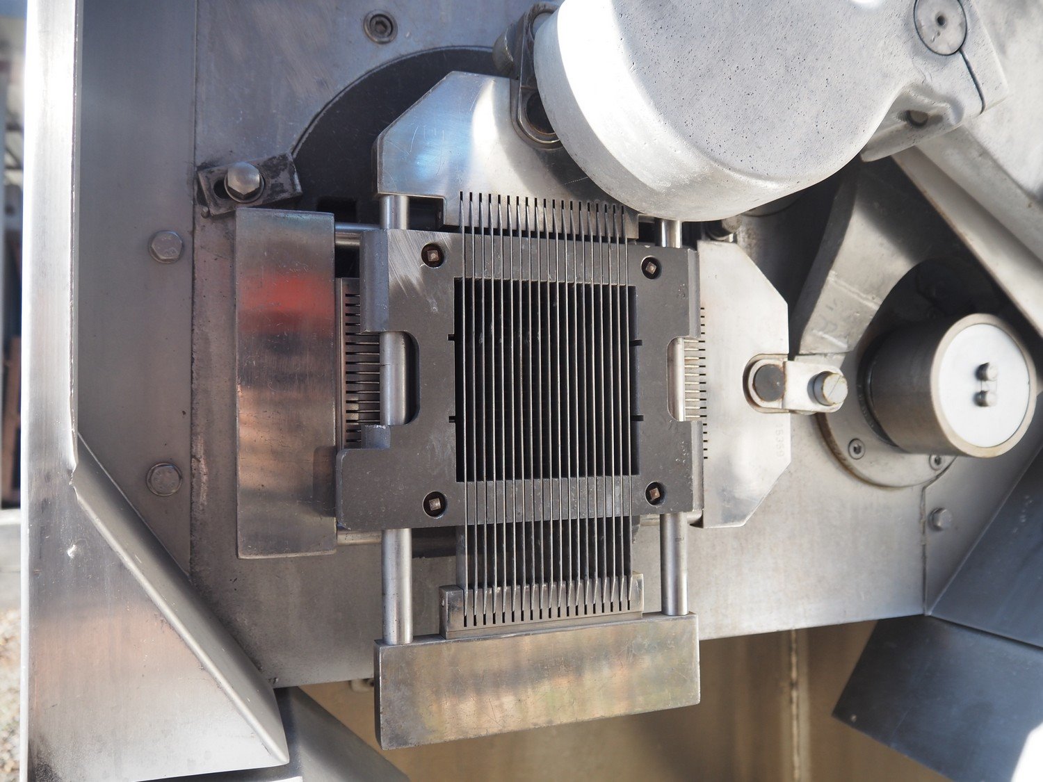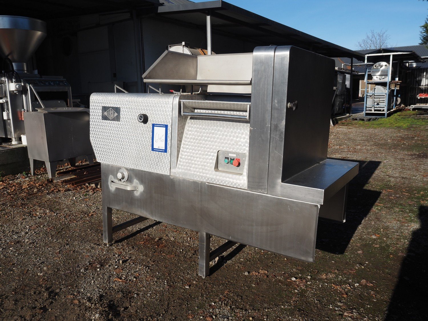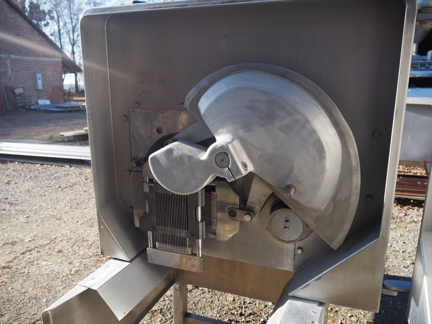 Treif dicer, type: 120, number: 19429/2007-1, year of construction: 1980, 380/220 V, 3 Ph, 50 Hz, 16.1 A, chamber dimensions: 520 mm x 120 mm x 110 mm, distance between knives: 5 mm, total dimensions: 1950 mm x 950 mm x 1550 mm. Extra dicer set with 10 mm blocks.