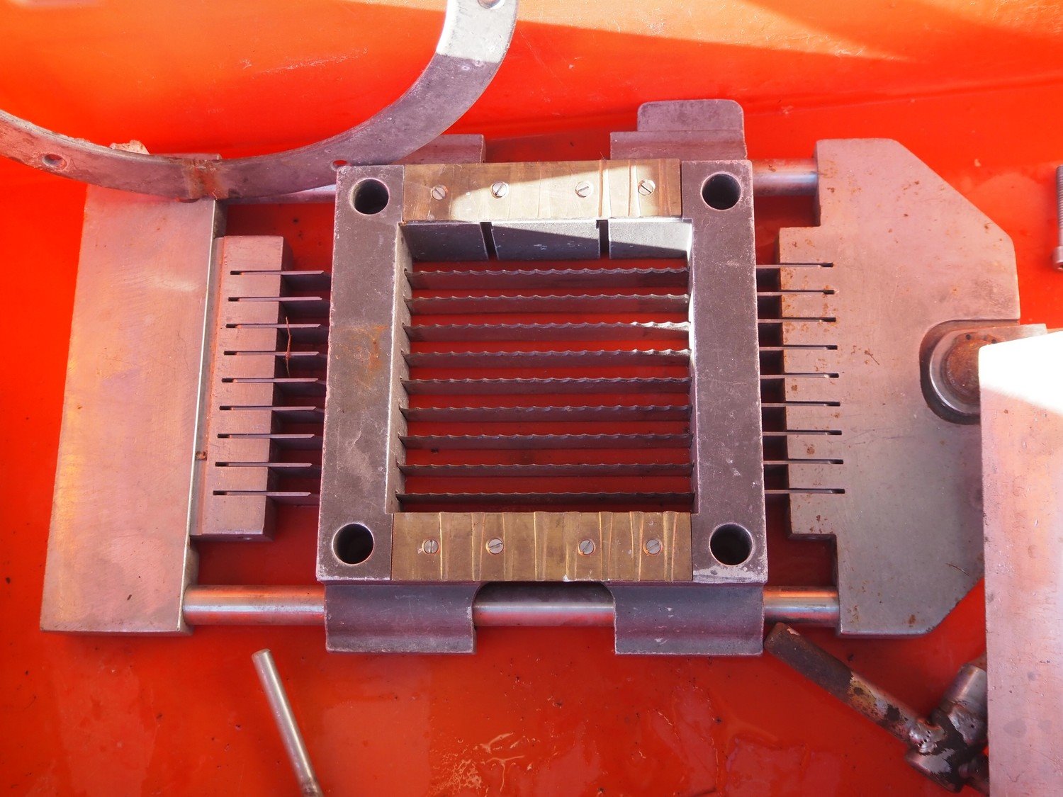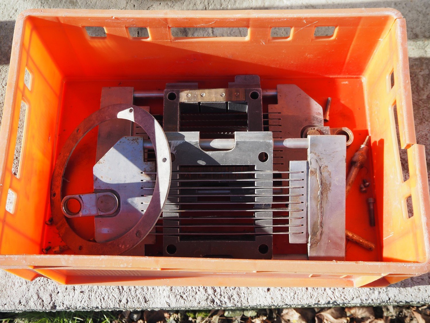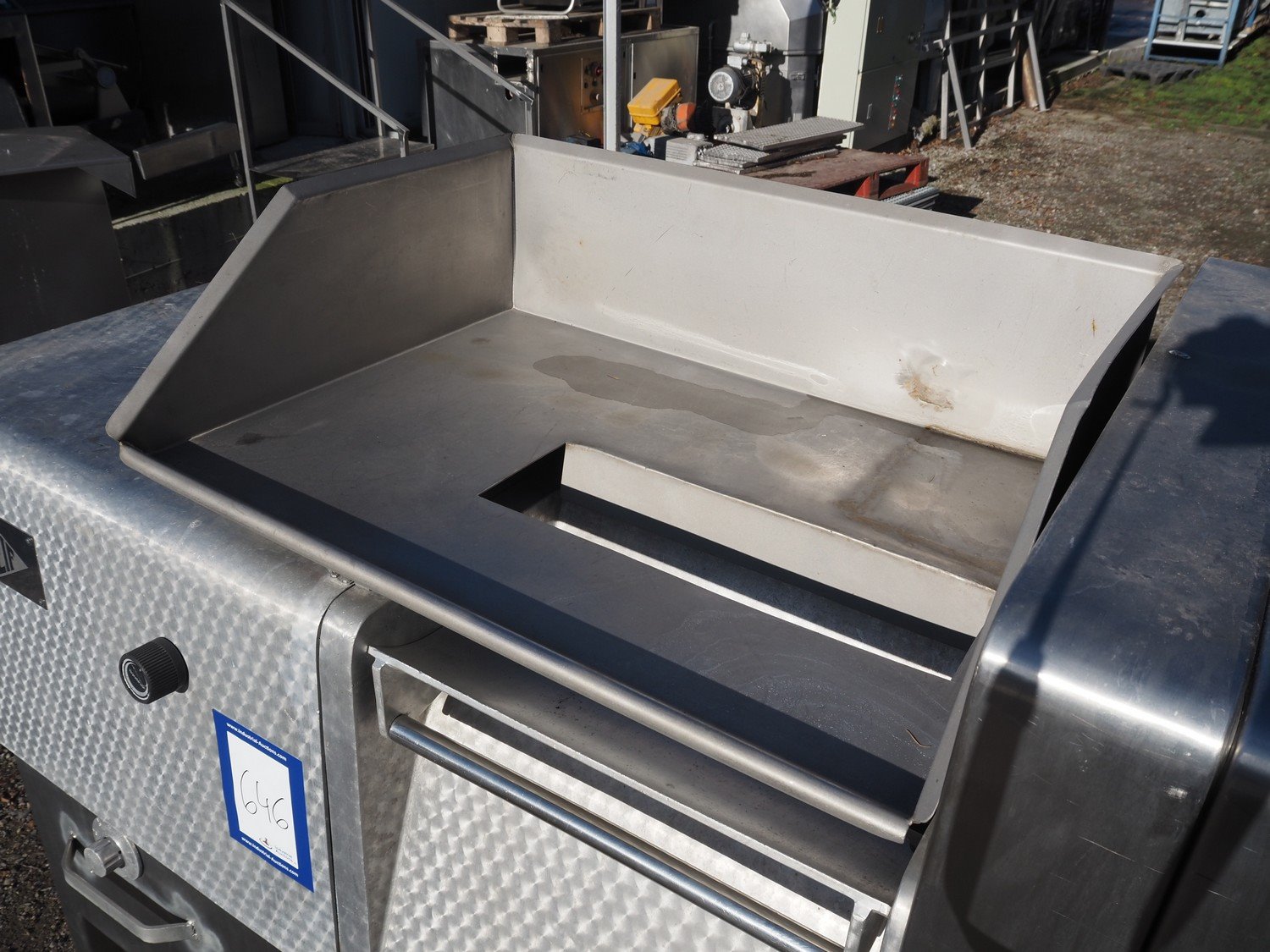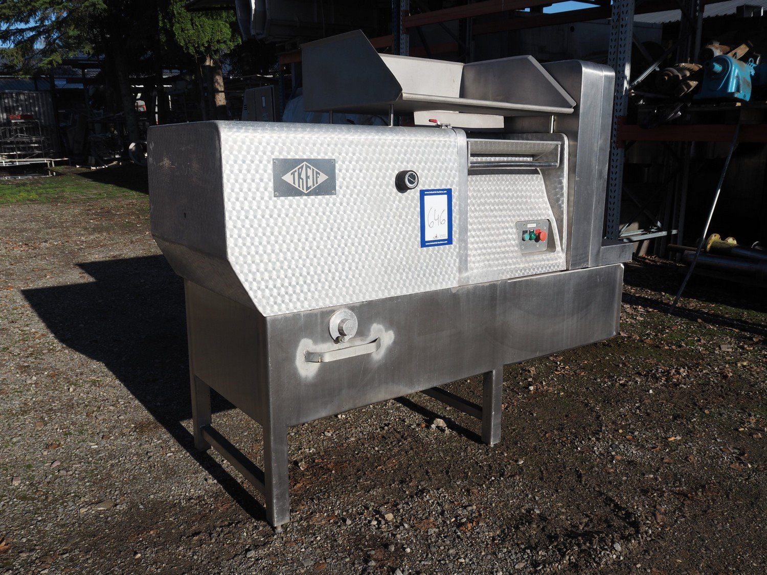 Treif dicer, type: 120, number: 19429/2007-1, year of construction: 1980, 380/220 V, 3 Ph, 50 Hz, 16.1 A, chamber dimensions: 520 mm x 120 mm x 110 mm, distance between knives: 5 mm, total dimensions: 1950 mm x 950 mm x 1550 mm. Extra dicer set with 10 mm blocks.