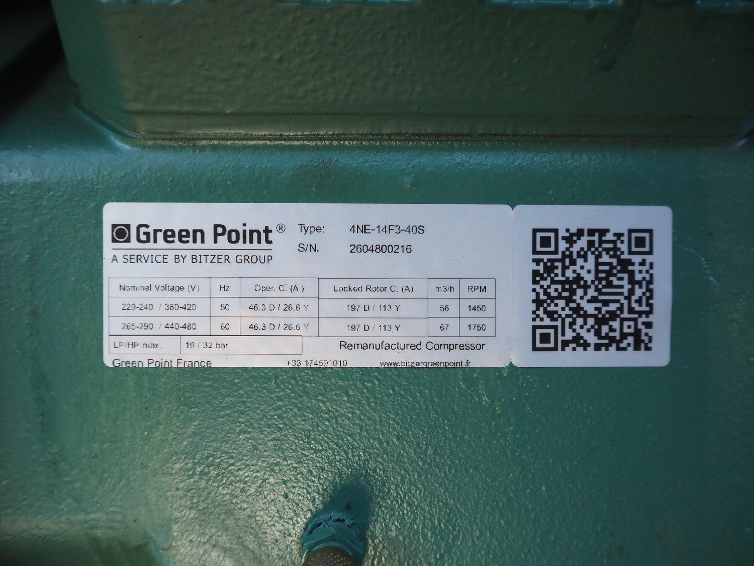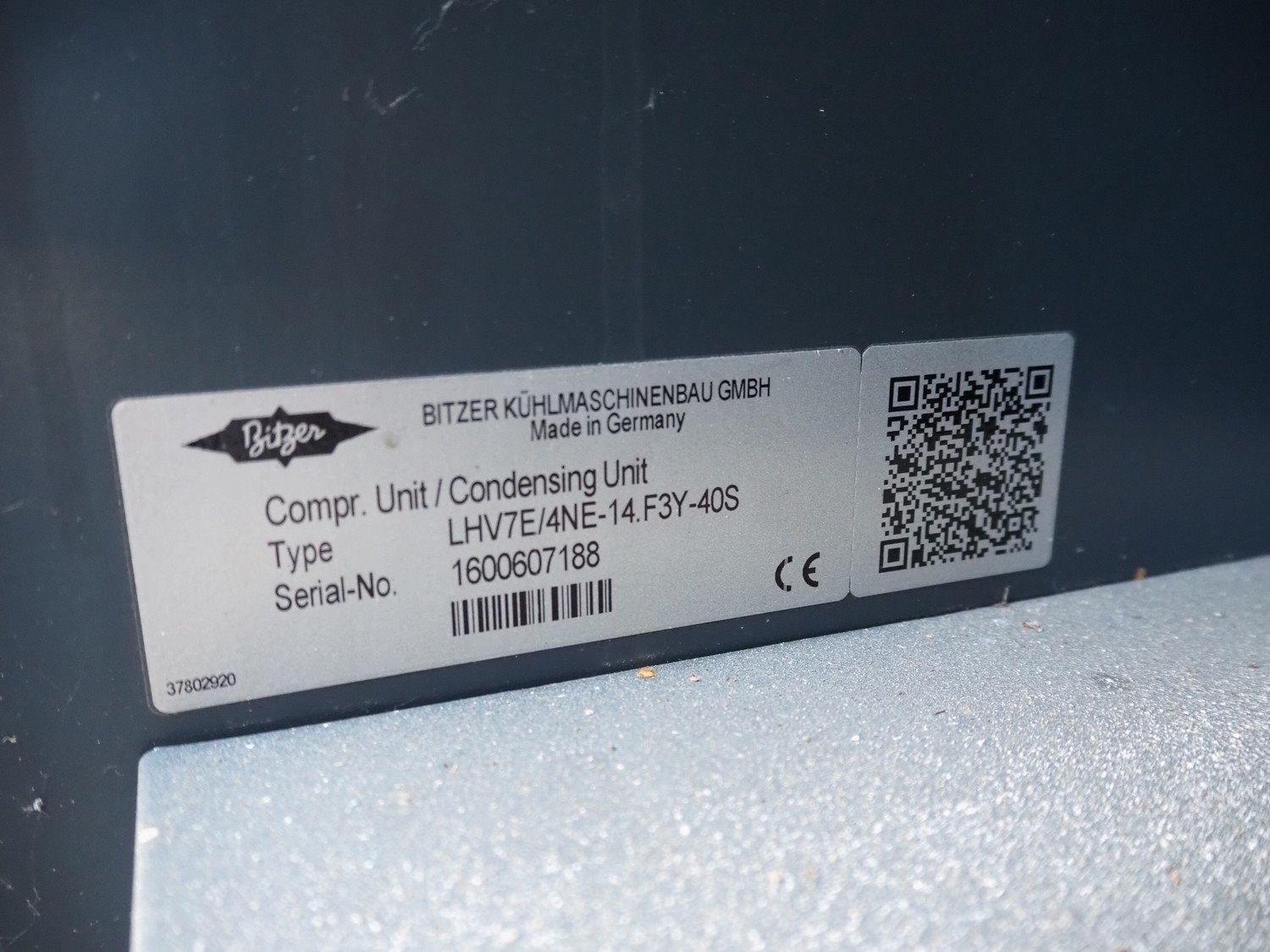 Bitzer Ecostar condensing unit with cooling compressor, type cooling compressor: 4NE-14F3-40S, serial number: 2604800216, 220-480 V, 50/60 Hz, refrigerant: R134A/16 kg, dimensions: 1550 mm x 700 mm x 1660 mm.