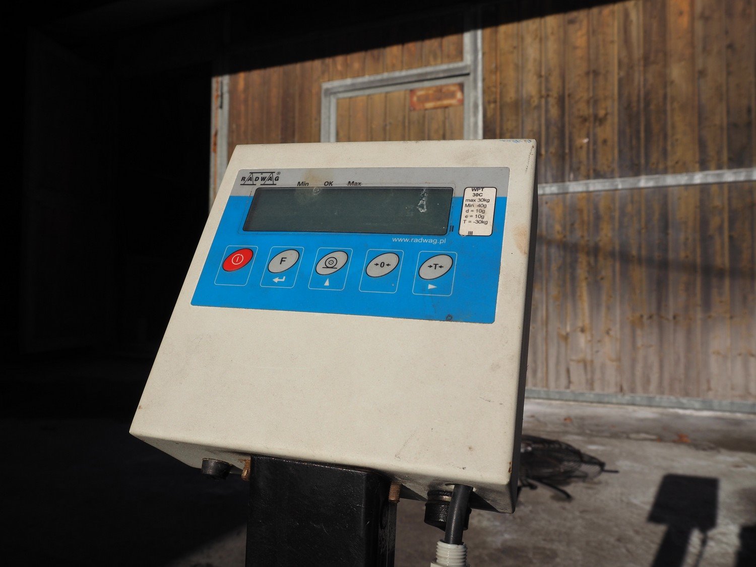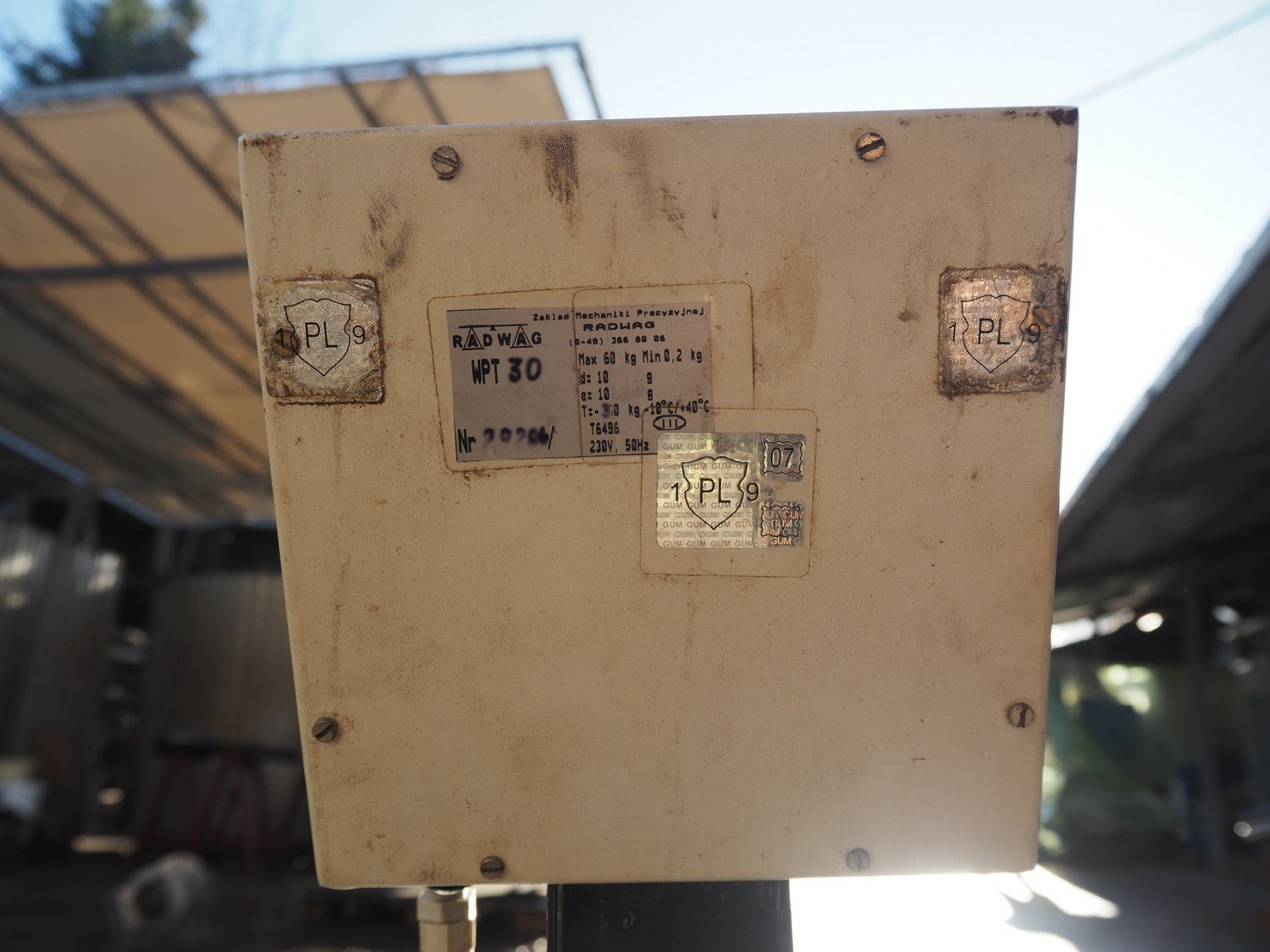 Radwag weighing scale, minimum load: 0.2 kg, maximum load: 60 kg, 230 V, 50 Hz, dimensions: 410 mm x 500 mm x 740 mm.