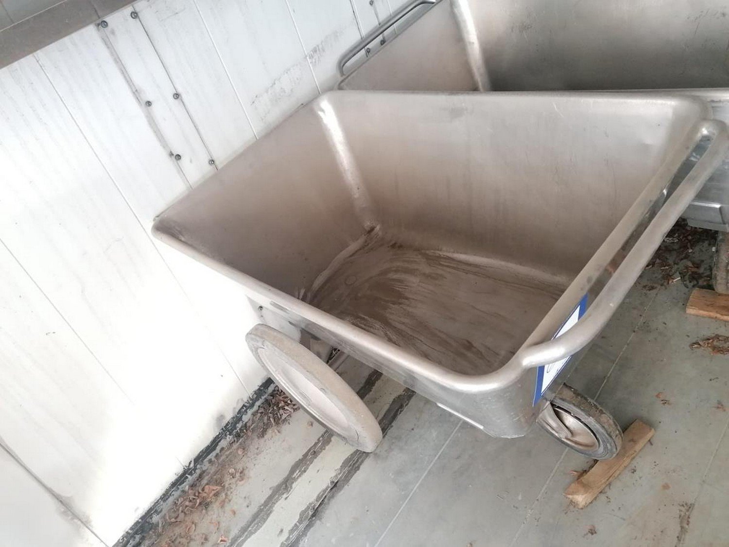 S/s mobile trolley with drain, dimensions: 1440 mm x 750 mm x 830 mm.