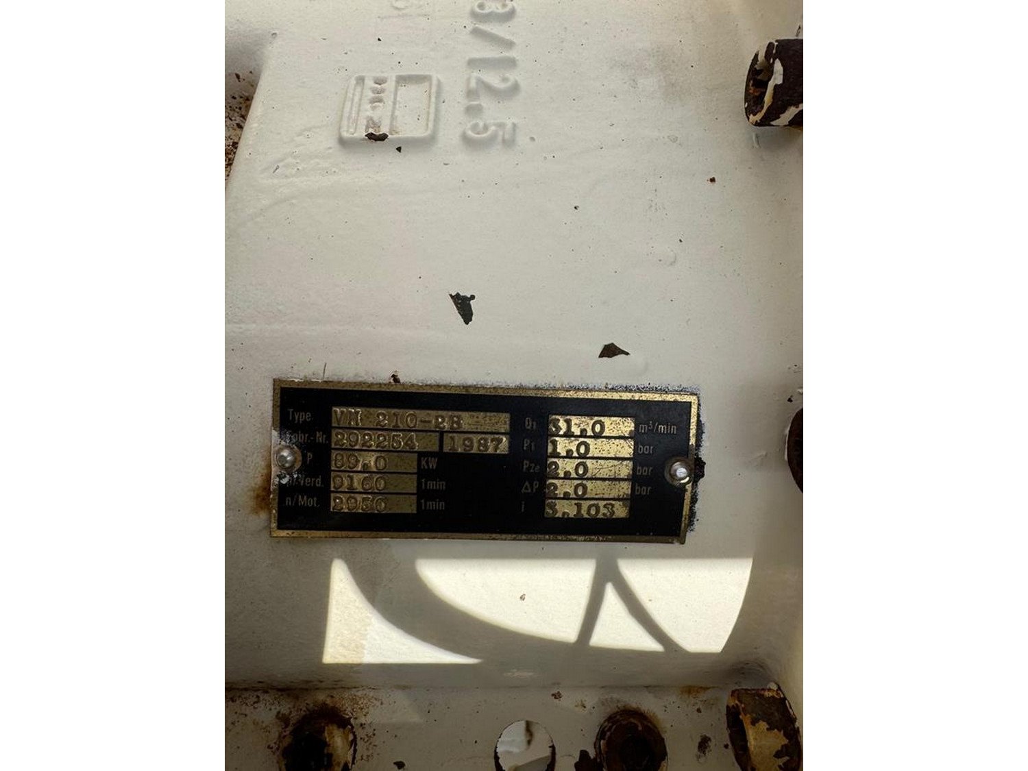Pump for dry products, type: VH 210 BB, number: 292254, year of construction: 1987, 89 kW, 31.0 m³/min, dimensions: 2200 mm x 1000 mm x 1600 mm.