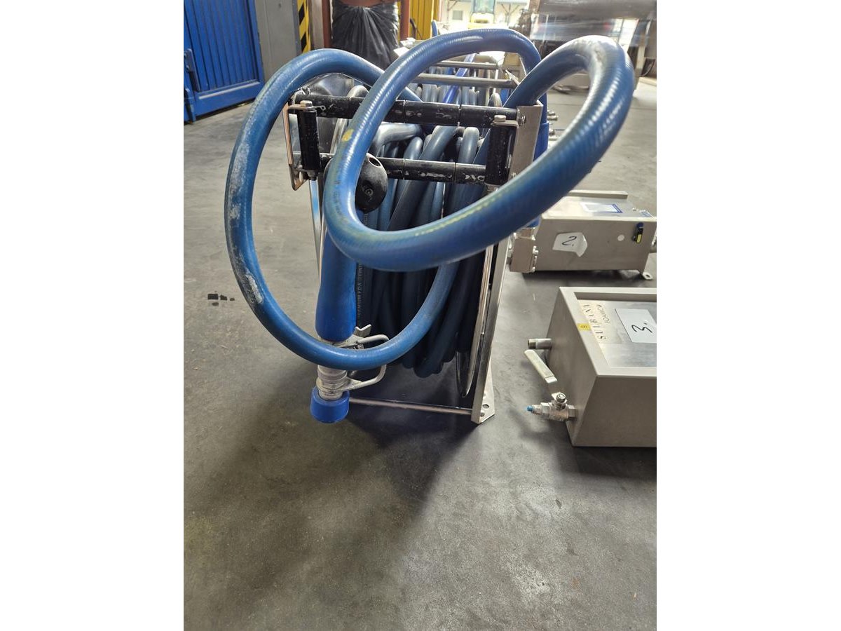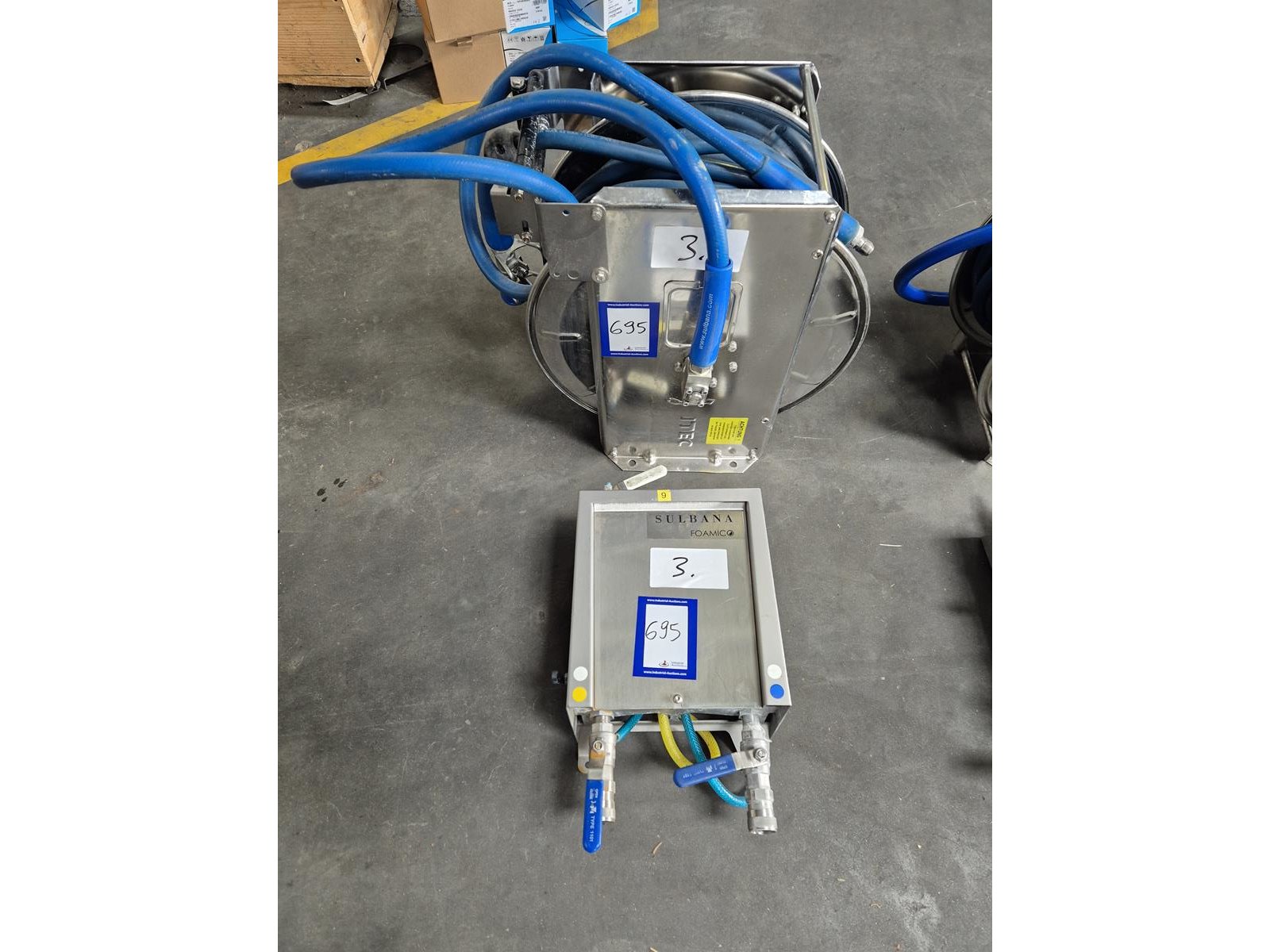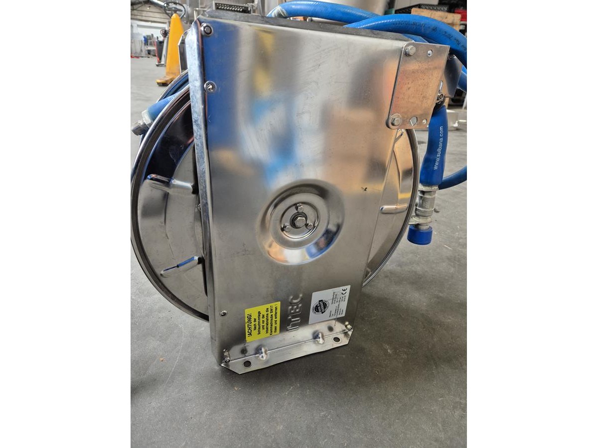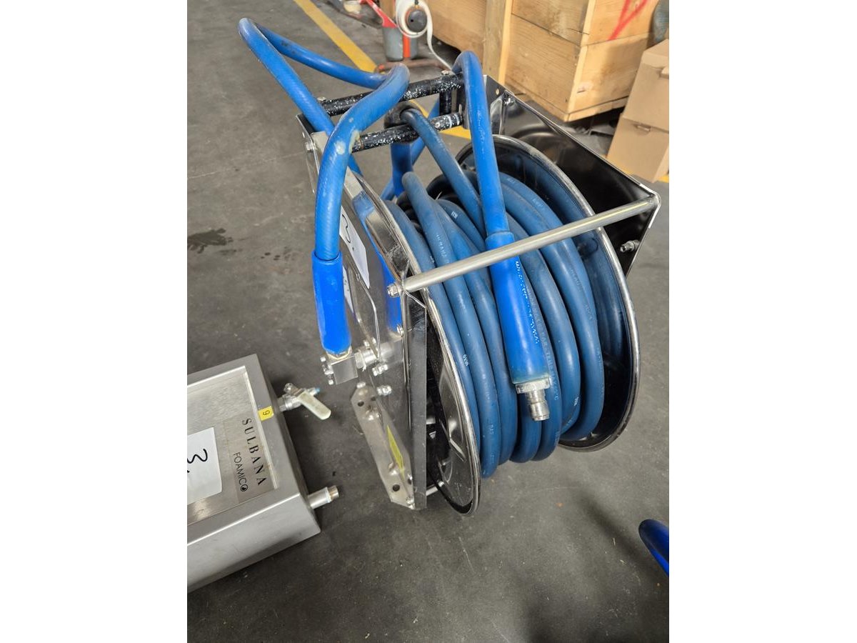 Itec s/s hose reel with hose and pistol, type: ST40/12/ep, year of construction: 05/2018, 200 bar, with Sulbana foam unit, dimensions: 600 mm x 600 mm x 600 mm.