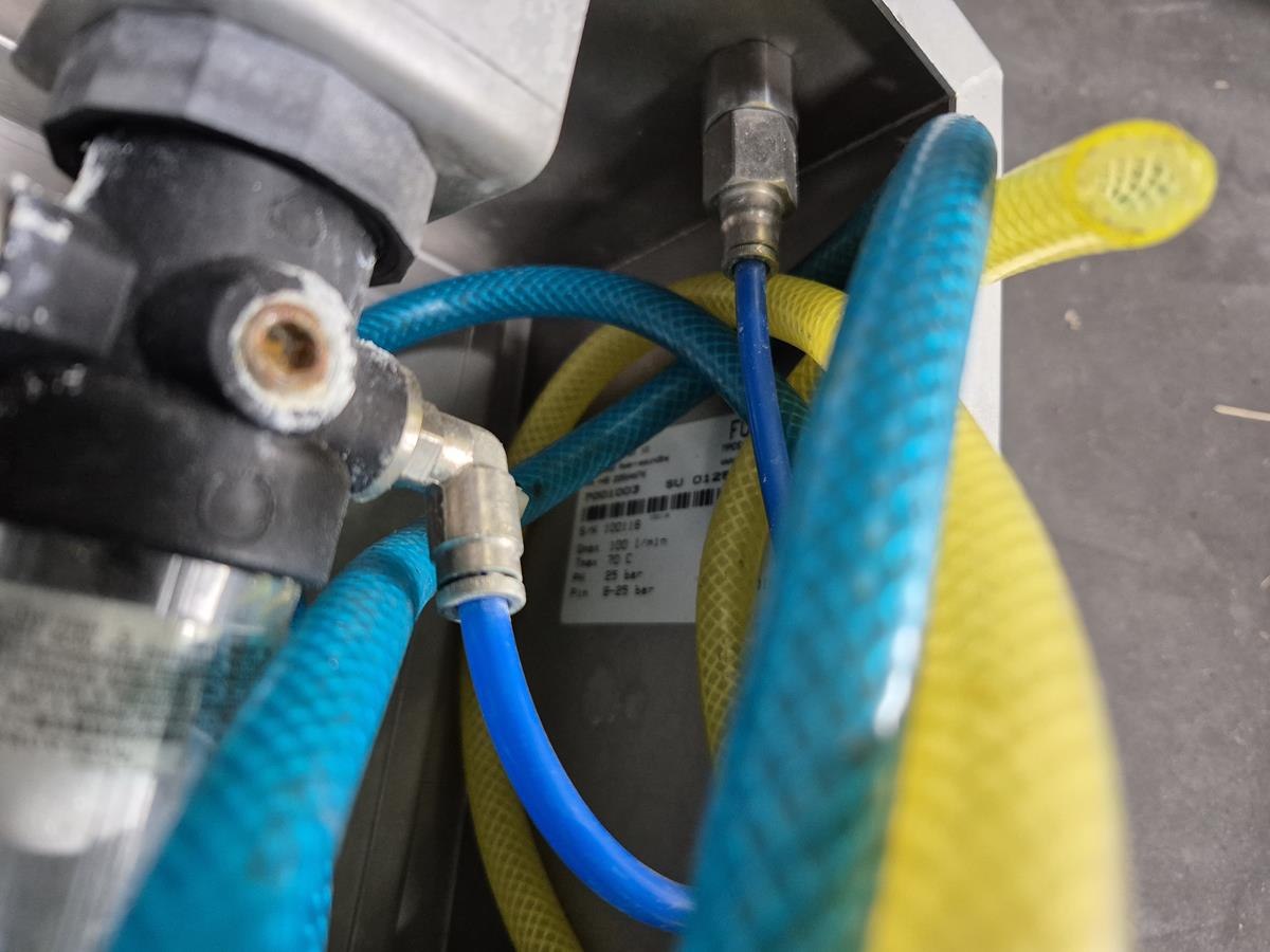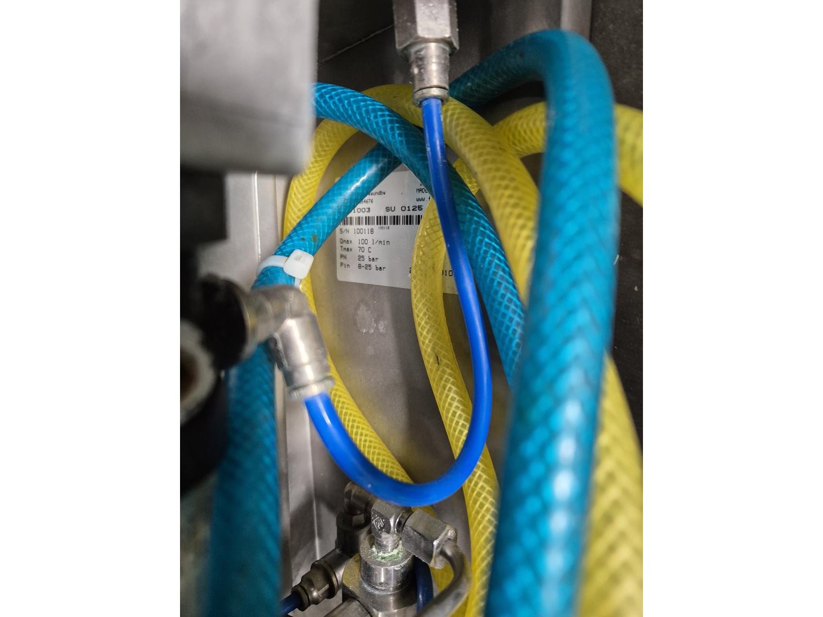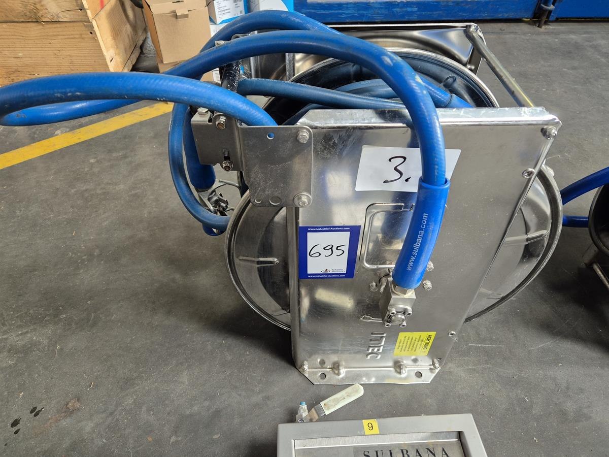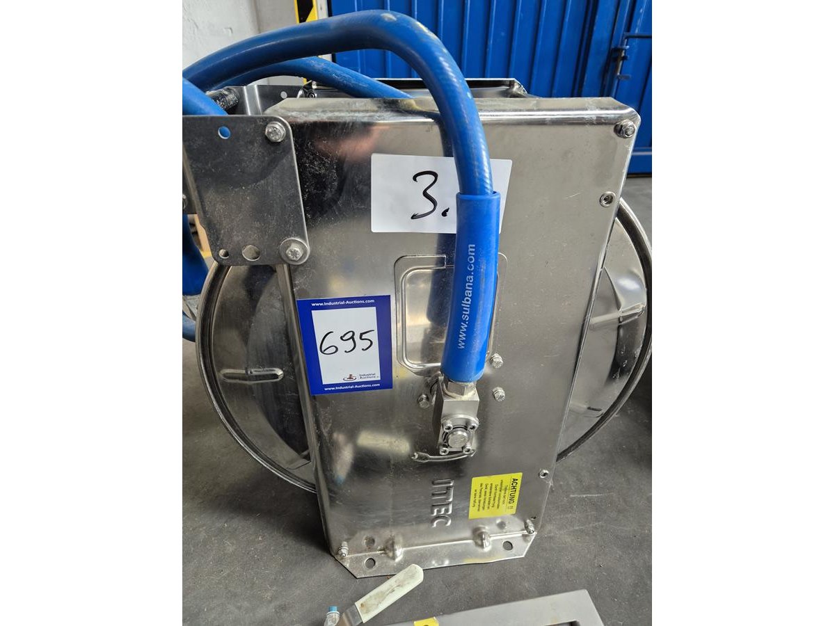 Itec s/s hose reel with hose and pistol, type: ST40/12/ep, year of construction: 05/2018, 200 bar, with Sulbana foam unit, dimensions: 600 mm x 600 mm x 600 mm.