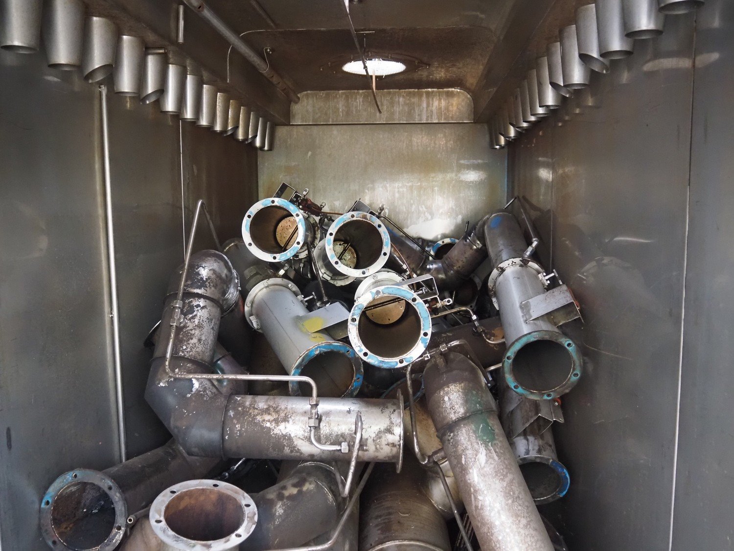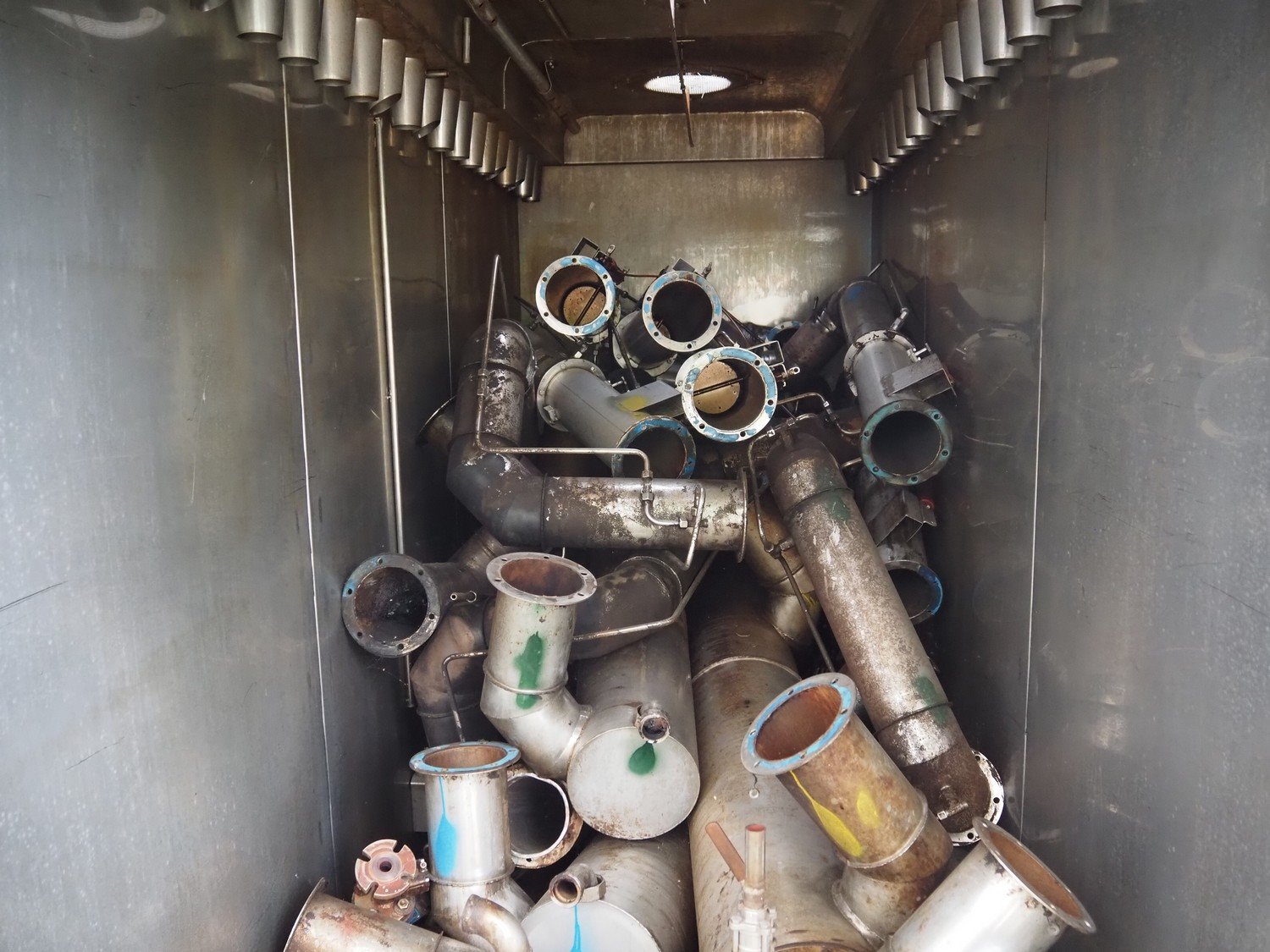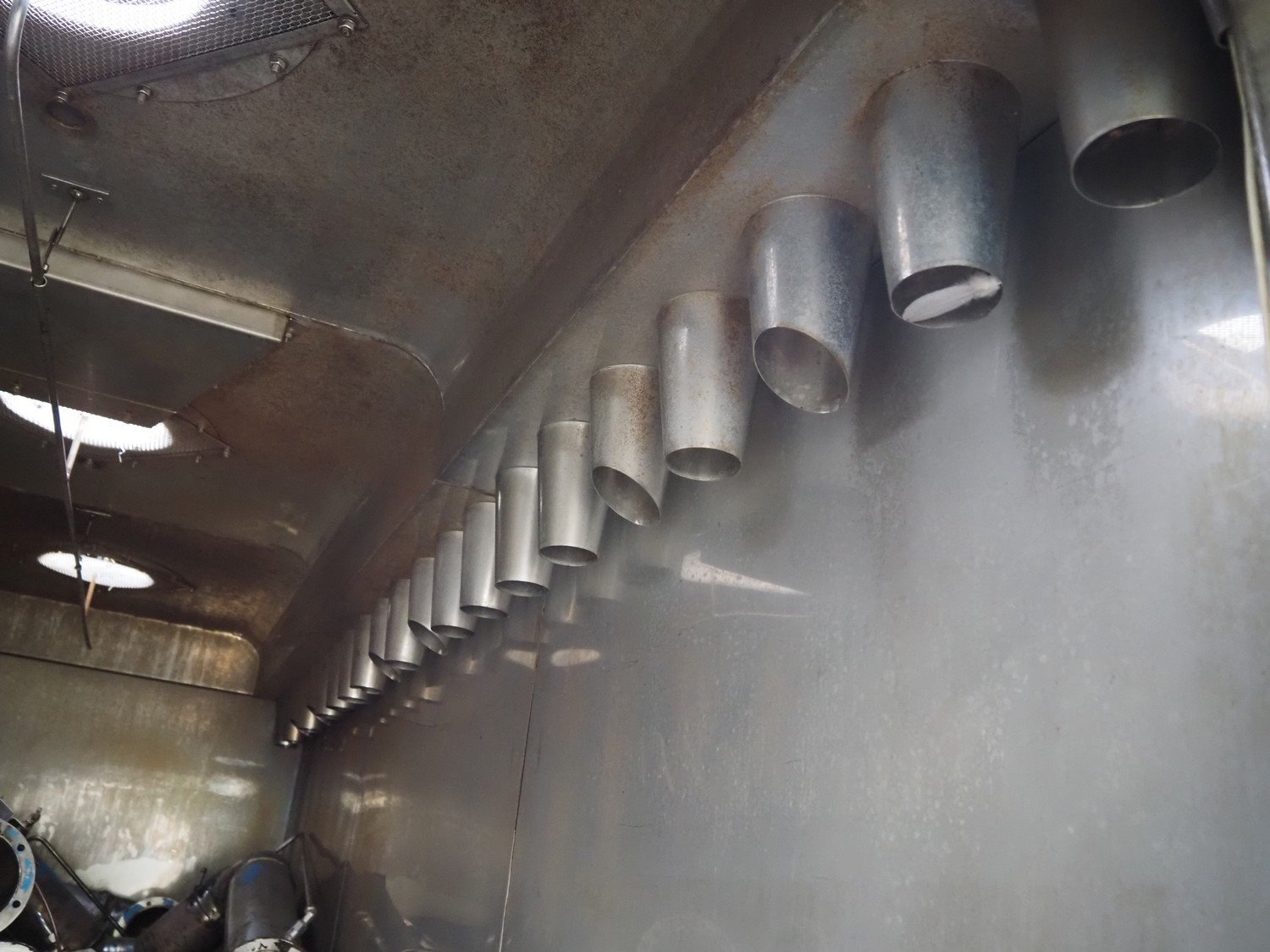 Sorgo smoke chamber for 3 trolleys, inside dimensions: 1300 mm x 3250 mm x 2040 mm, total dimensions: 1450 mm x 3600 mm x 2700 mm. Including smoke generator and switch cabinet, dimensions smoke generator: 880 mm x 1000 mm x 1660 mm.