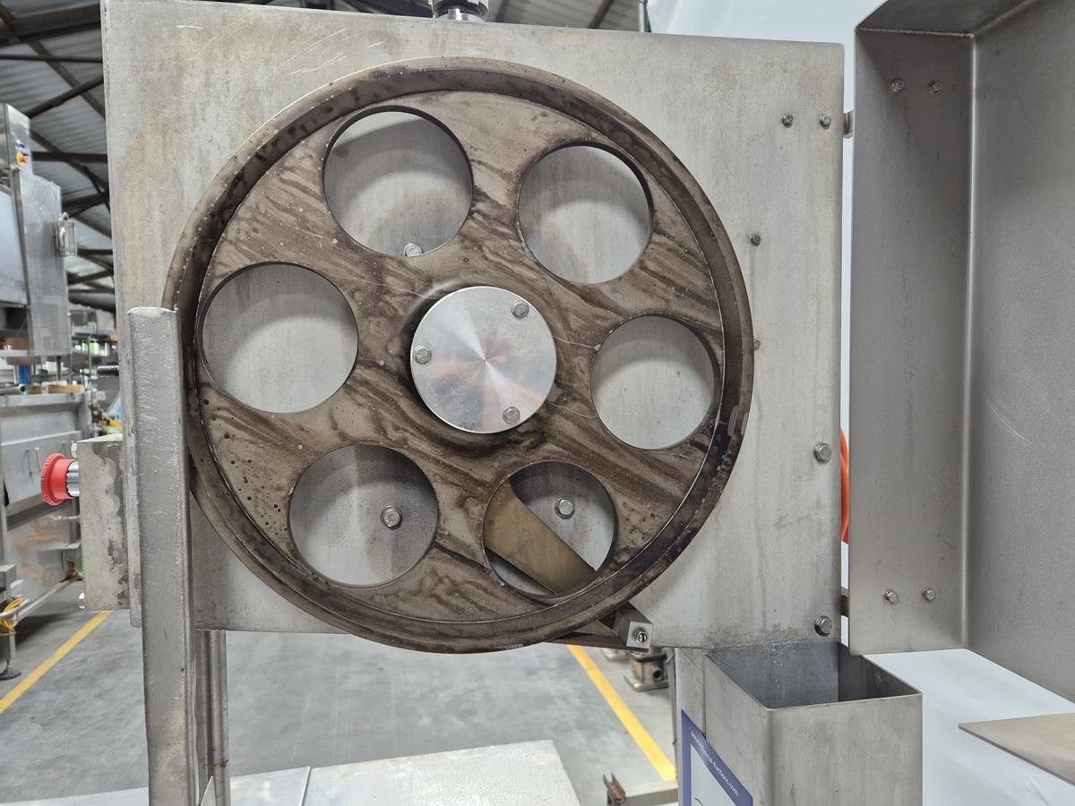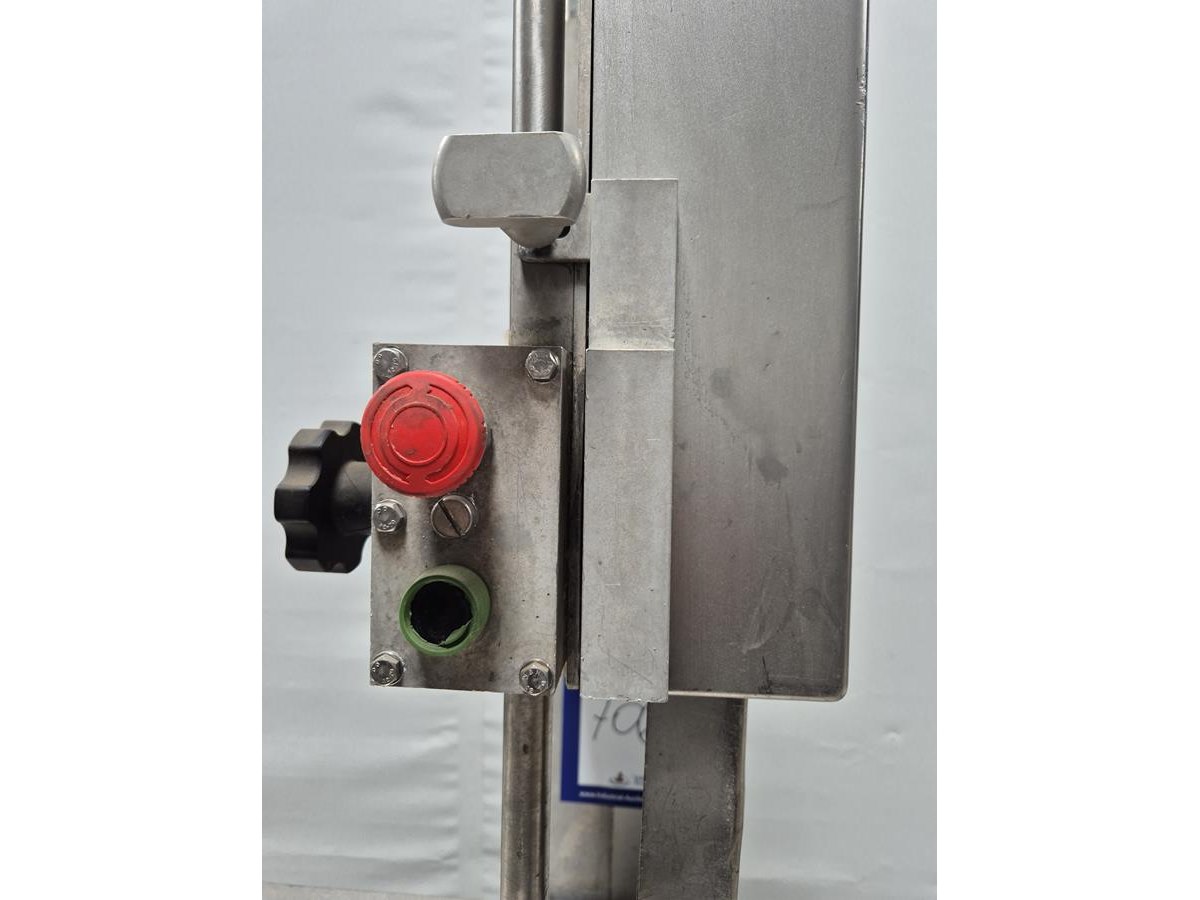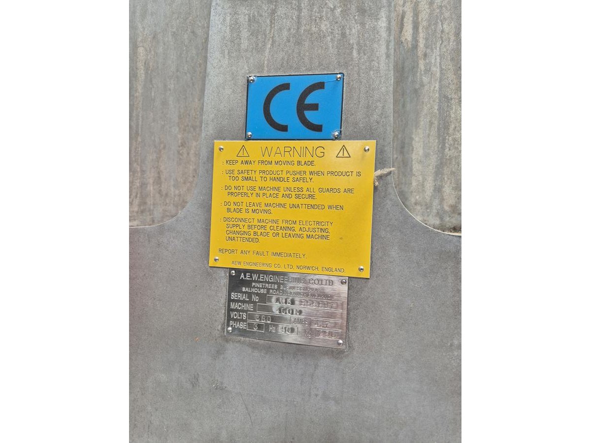 A.E.W. Engineering s/s bandsaw, model: 400 M, serial number: LHS.355897, 380 V, 3 Ph, 4.7 A, dimensions: 1050 mm x 880 mm x 1950 mm. Without saw blade.