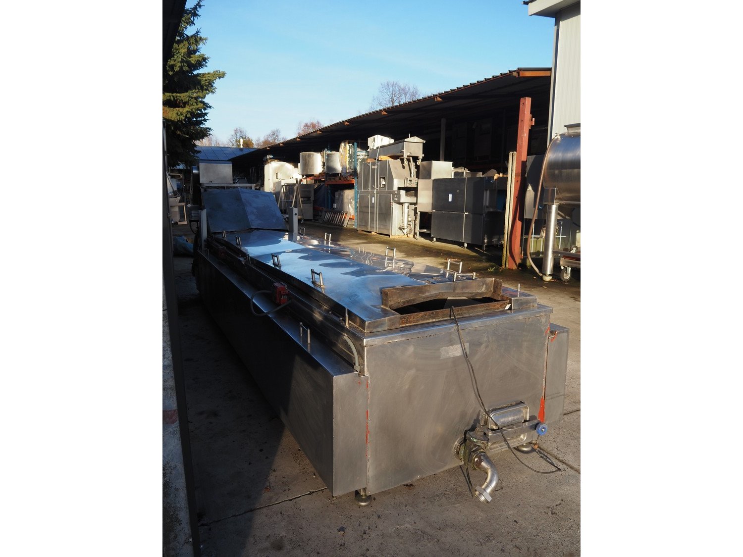 Famaco continuous fryer, model: F, serial number: 1324, year of construction: 2008, steel belt, belt width: 600 mm, total dimensions: 6400 mm x 1250 mm x 1700 mm.