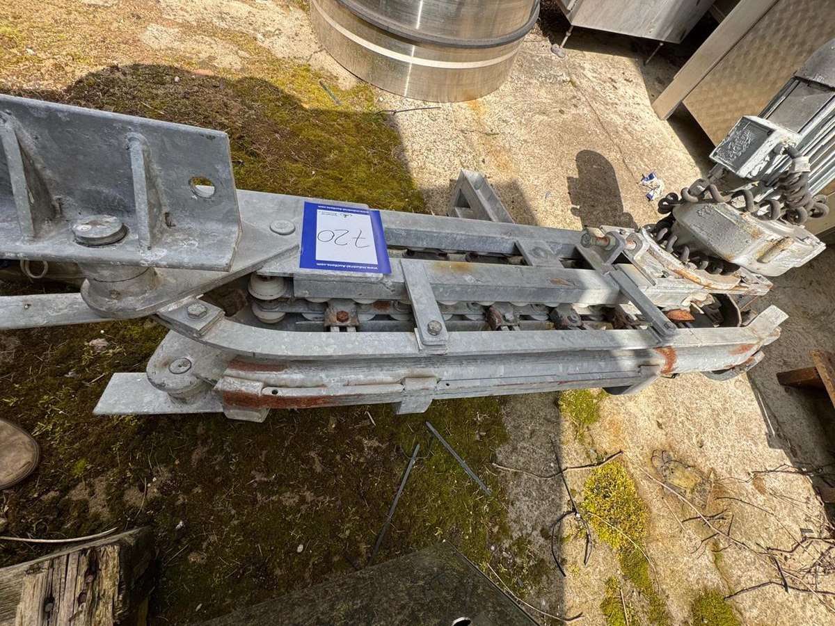 Banns differential conveyor for moving half-carcasses with electric drive, with adjustable angle and height: from 400 mm to 800 mm, total dimensions: 1400 mm x 600 mm x 400 mm.