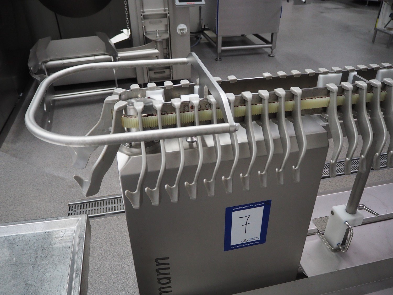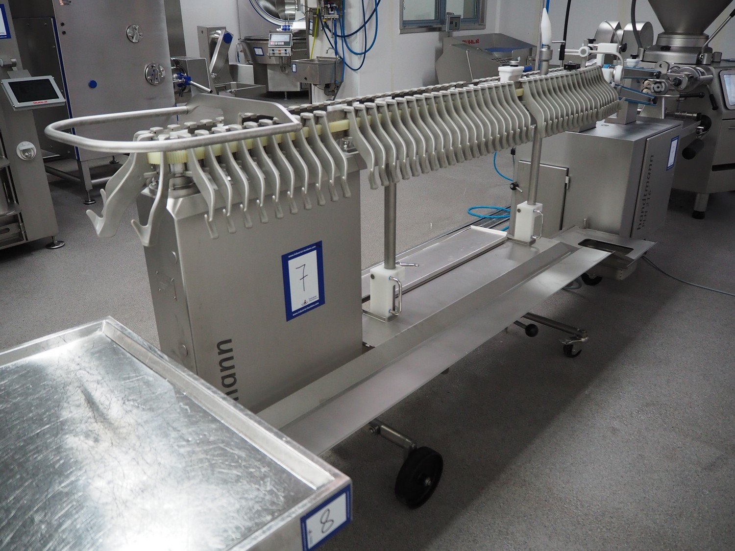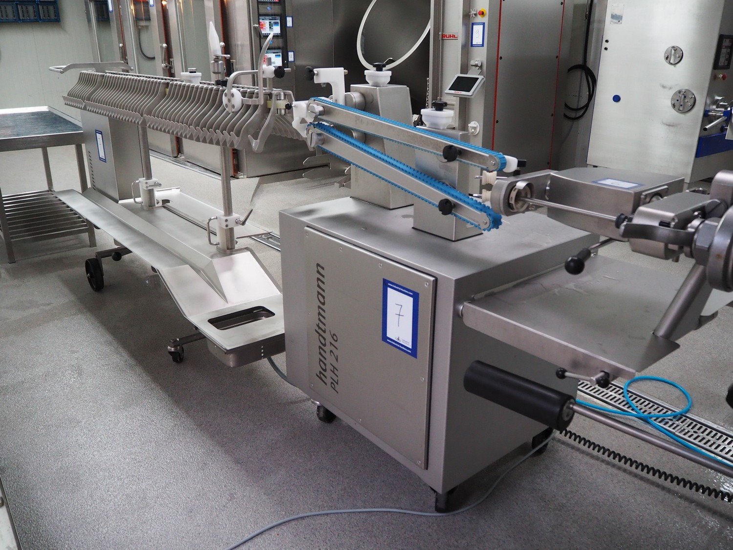 Handtmann linking and hanging line consisting of Handtmann AL-System linker, type: PLH 216, number: 52614, year of construction: 2024, 400 V, 3 Ph, 50 Hz, 5.3 A, 3.5 kW, weight: 280 kg, dimensions linker: 1400 mm x 700 mm x 1400 mm, Handtmann hanging line, type: AHE 228-16, number: 22600591, year of construction: 2024, dimensions hanging line: 2700 mm x 700 mm x 1600 mm.