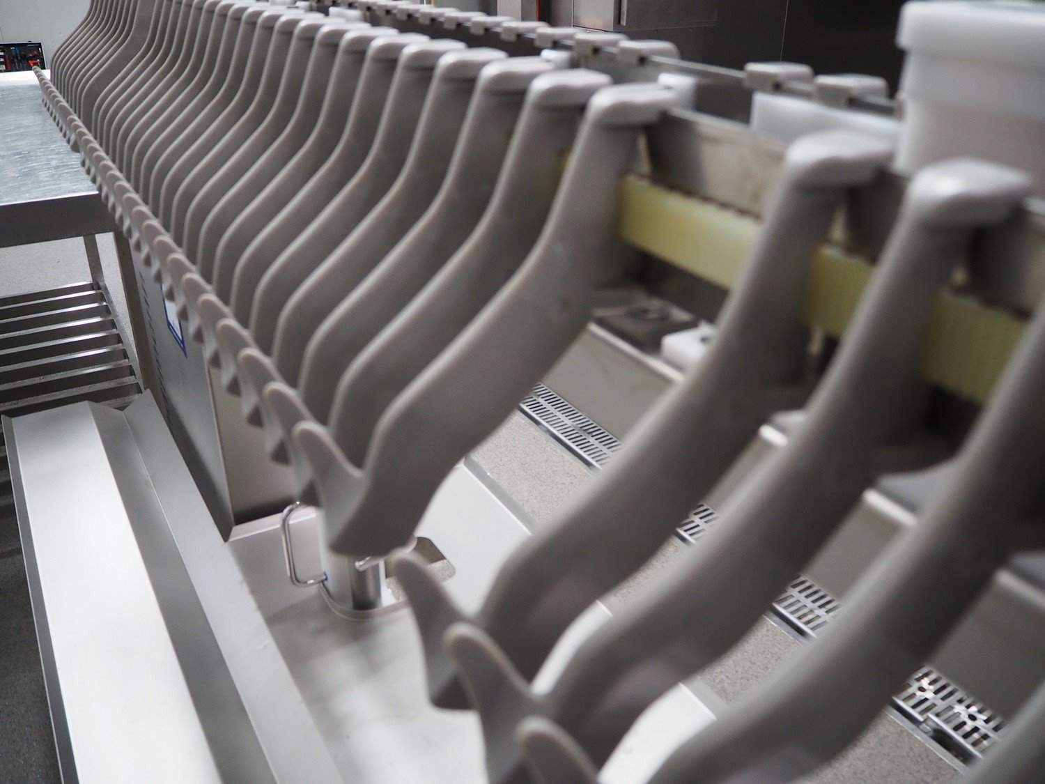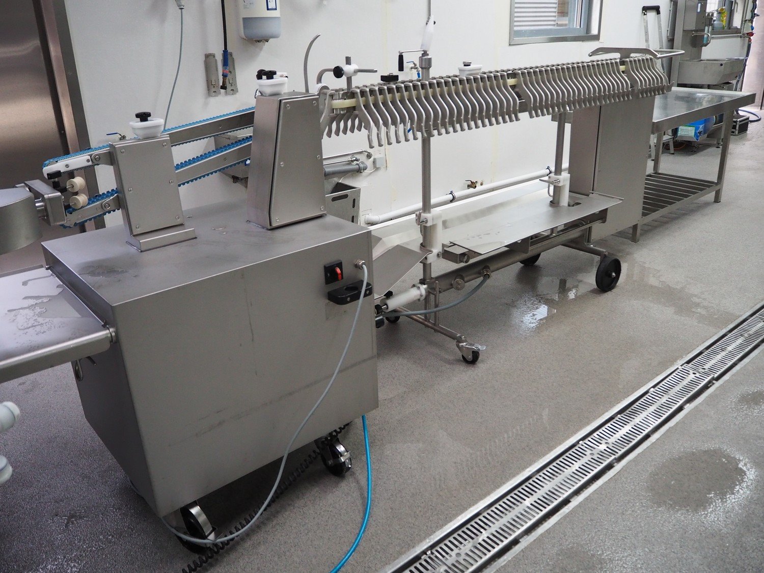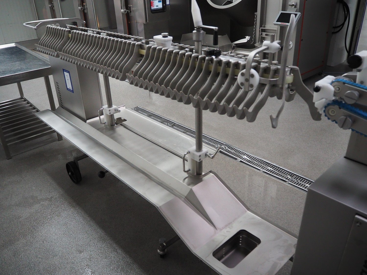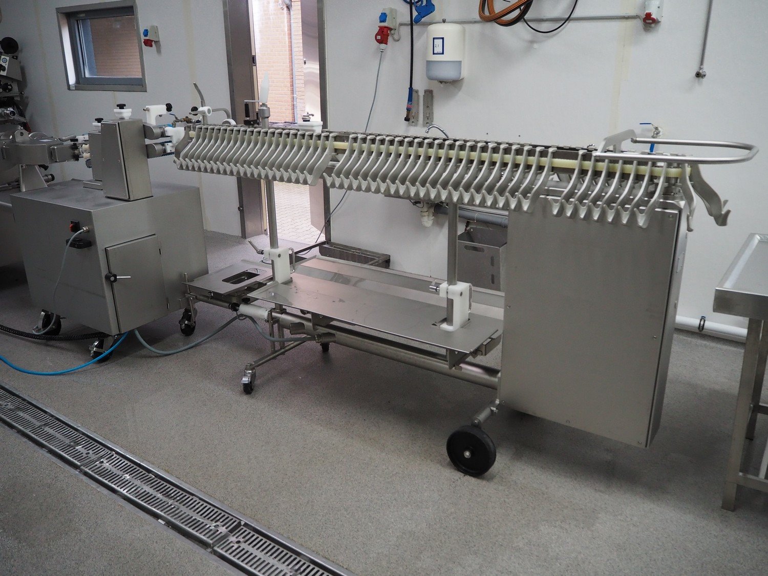 Handtmann linking and hanging line consisting of Handtmann AL-System linker, type: PLH 216, number: 52614, year of construction: 2024, 400 V, 3 Ph, 50 Hz, 5.3 A, 3.5 kW, weight: 280 kg, dimensions linker: 1400 mm x 700 mm x 1400 mm, Handtmann hanging line, type: AHE 228-16, number: 22600591, year of construction: 2024, dimensions hanging line: 2700 mm x 700 mm x 1600 mm.