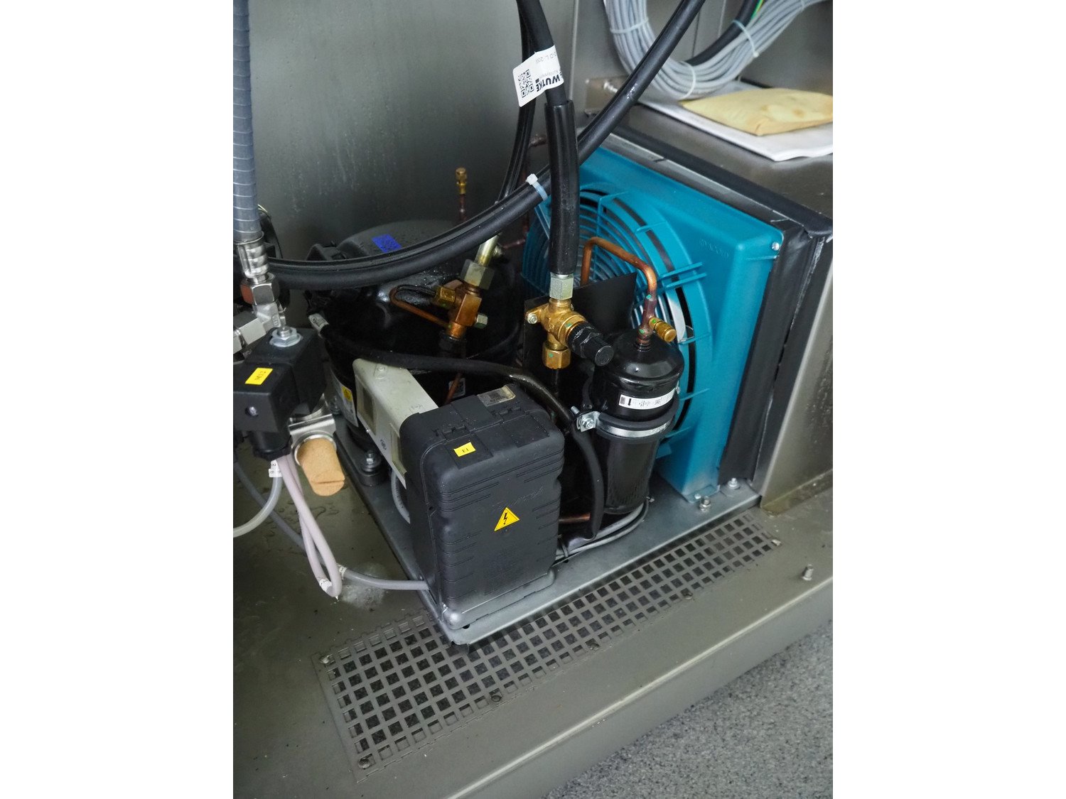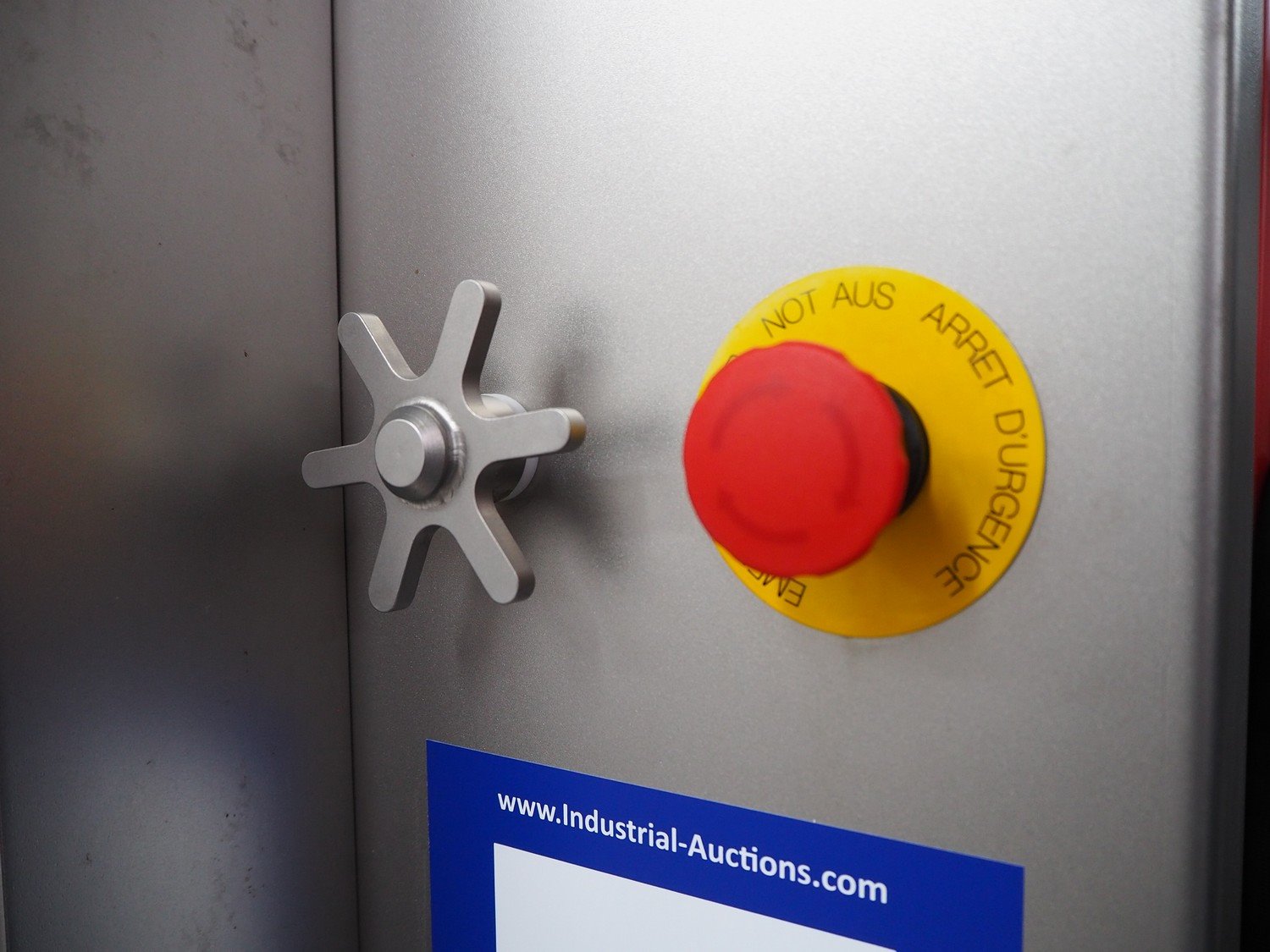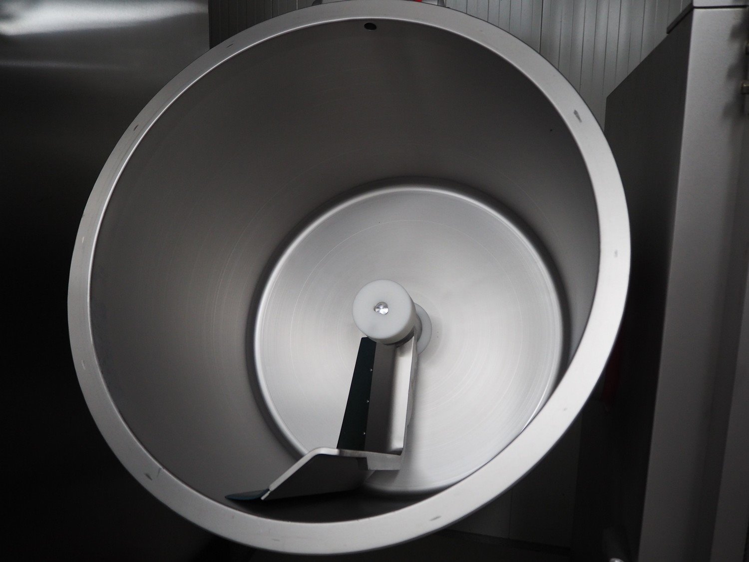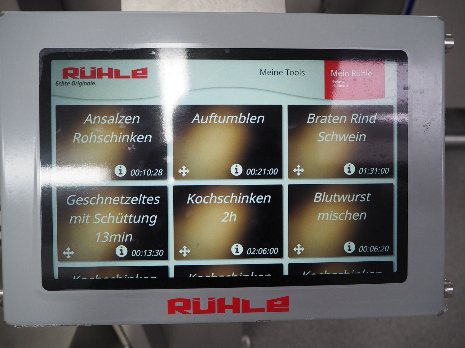Rühle cooled vacuum mixer / tumbler with lifter for 200 liter meat bins, model: MPR 500, serial number: 10130541, year of construction: 2024, 400 V, 3 Ph, 50/60 Hz, 18.1 A, 8.8 kW, volume: 500 liter, built-in Busch vacuum pump, type: KC 0016 E 3Z0 MMZZ, year of construction: 2024, volume: 19 m³ per hour, total dimensions: 2000 mm x 2400 mm x 2350 mm. Tumbler need to be removed by crane.