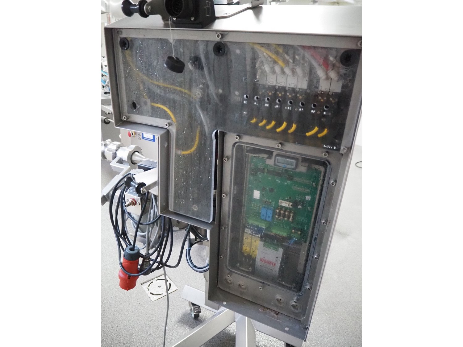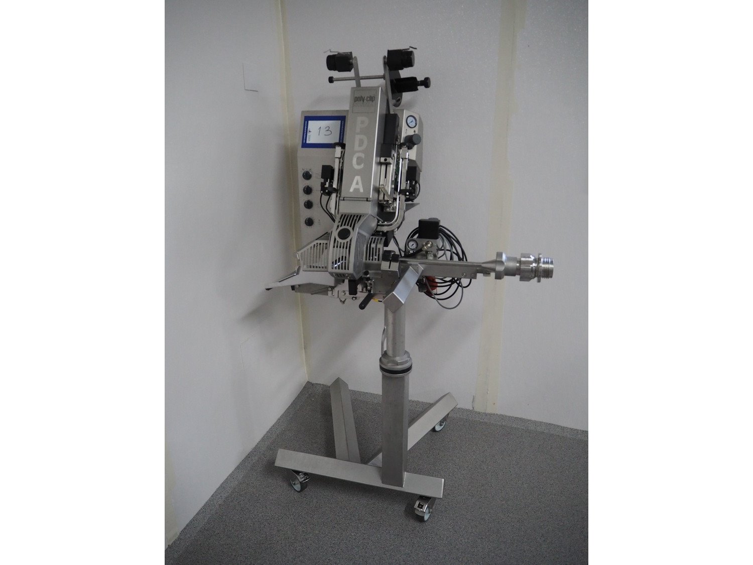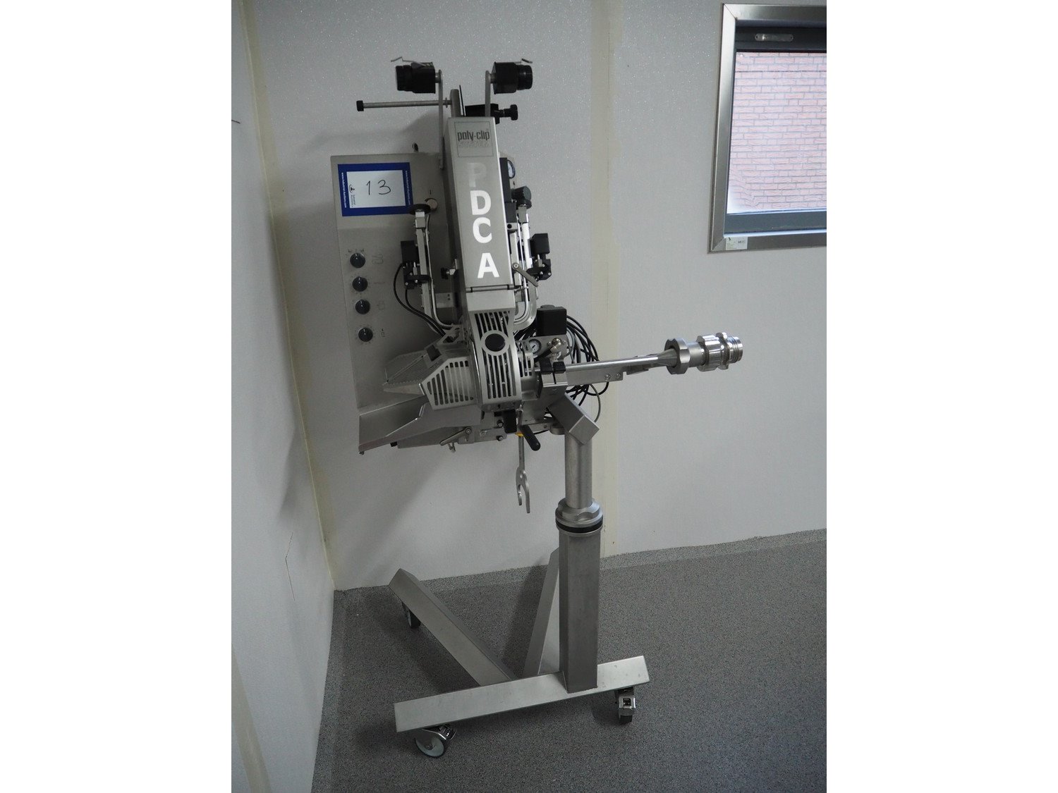 Poly-Clip System GmbH & Co. KG. mobile automatic double clipper, type: PDC A 700, number: 297, year of construction: 2024, 110-250 V, 50/60 Hz, 16 A, 0.8 kW, air pressure: 4 - 6 bar, weight: 164 kg, total dimensions: 1200 mm x 900 mm x 1900 mm.