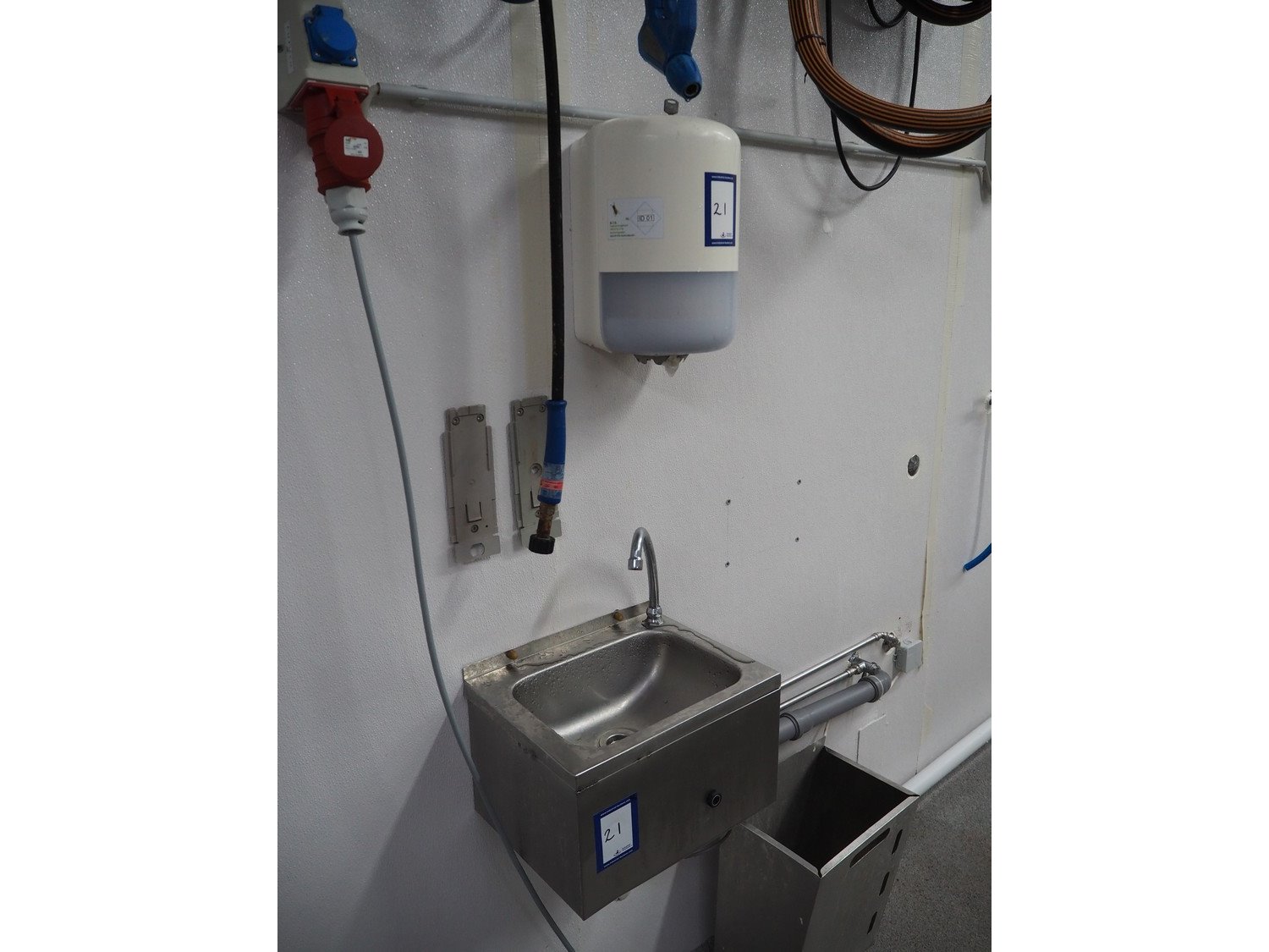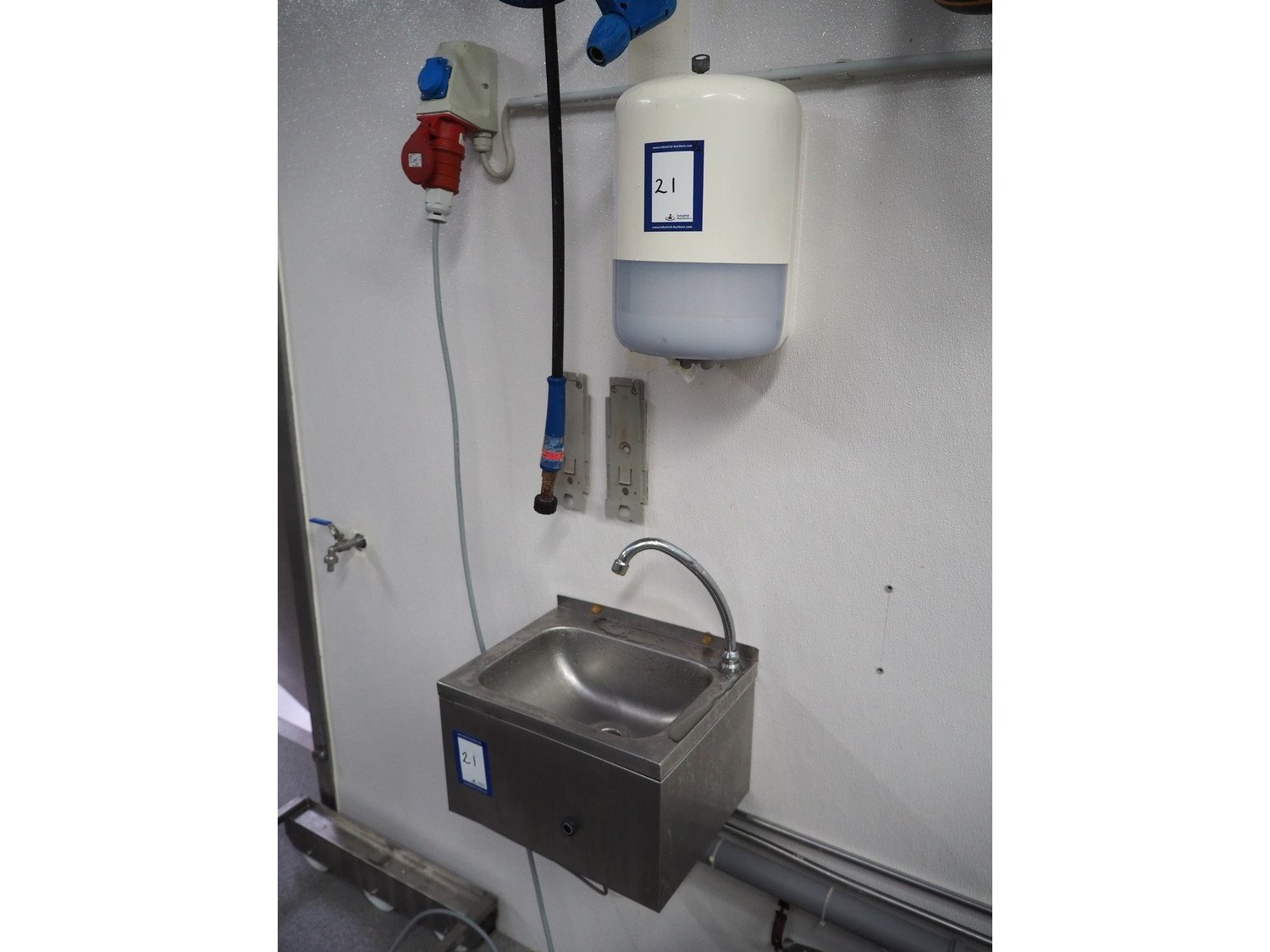 S/s sink with 1 faucet, sensor control, dimensions: 400 mm x 320 mm x 500 mm and plastic paper dispenser, dimensions: 250 mm x 250 mm x 350 mm.