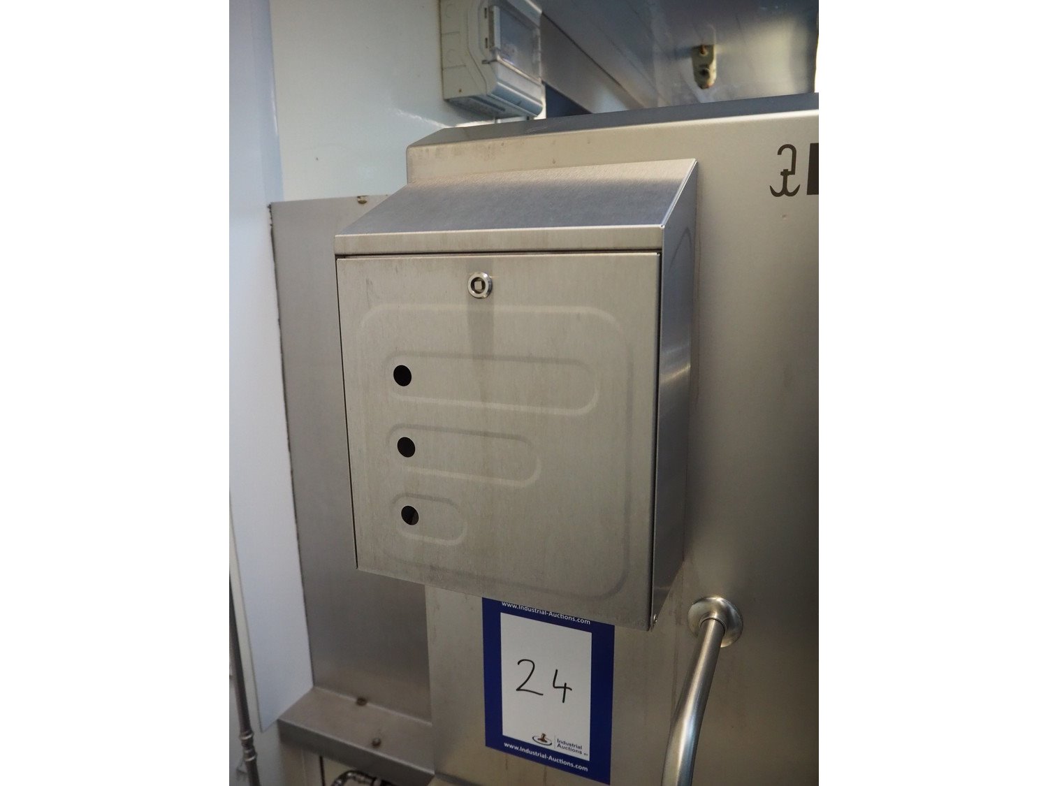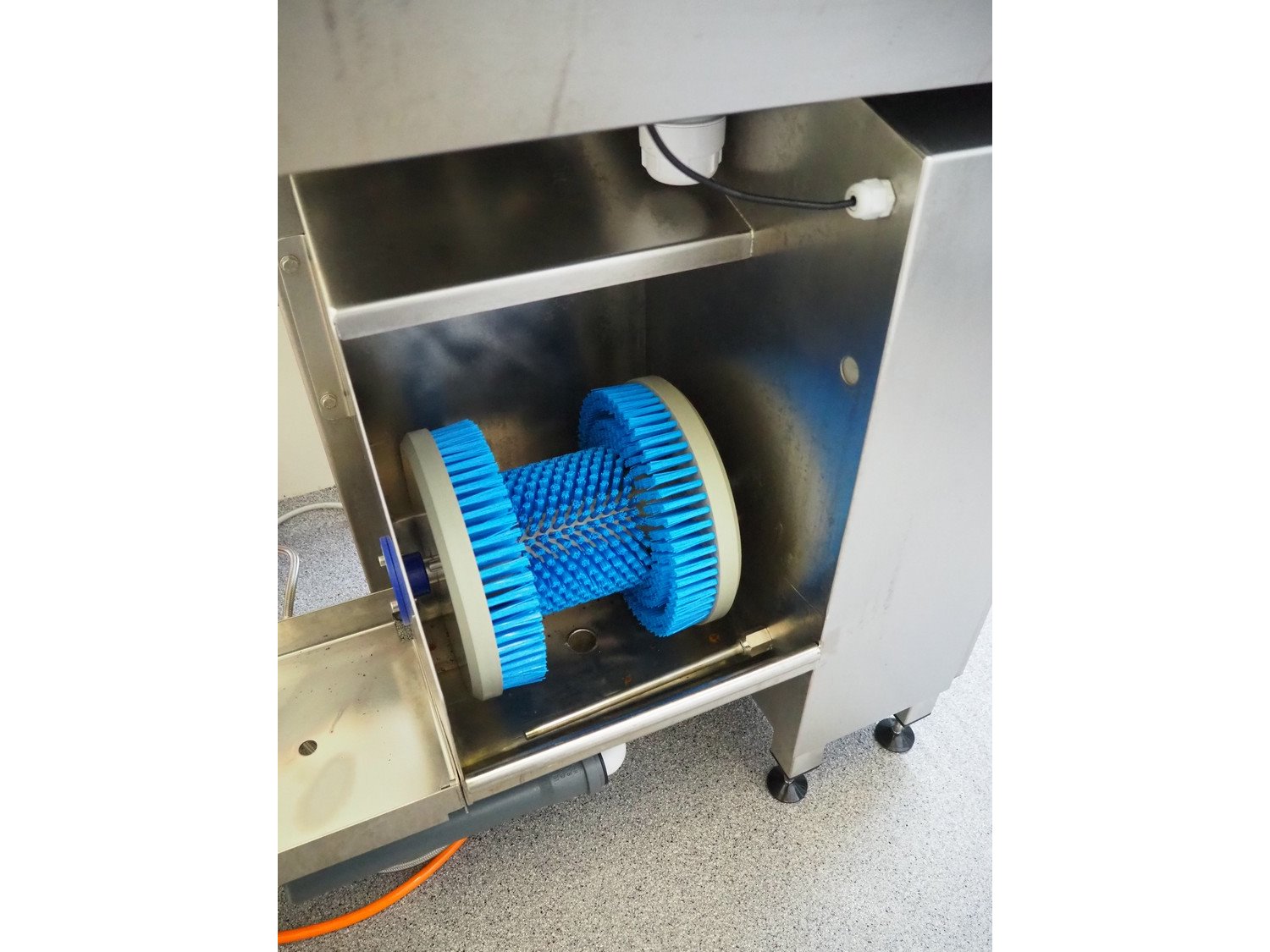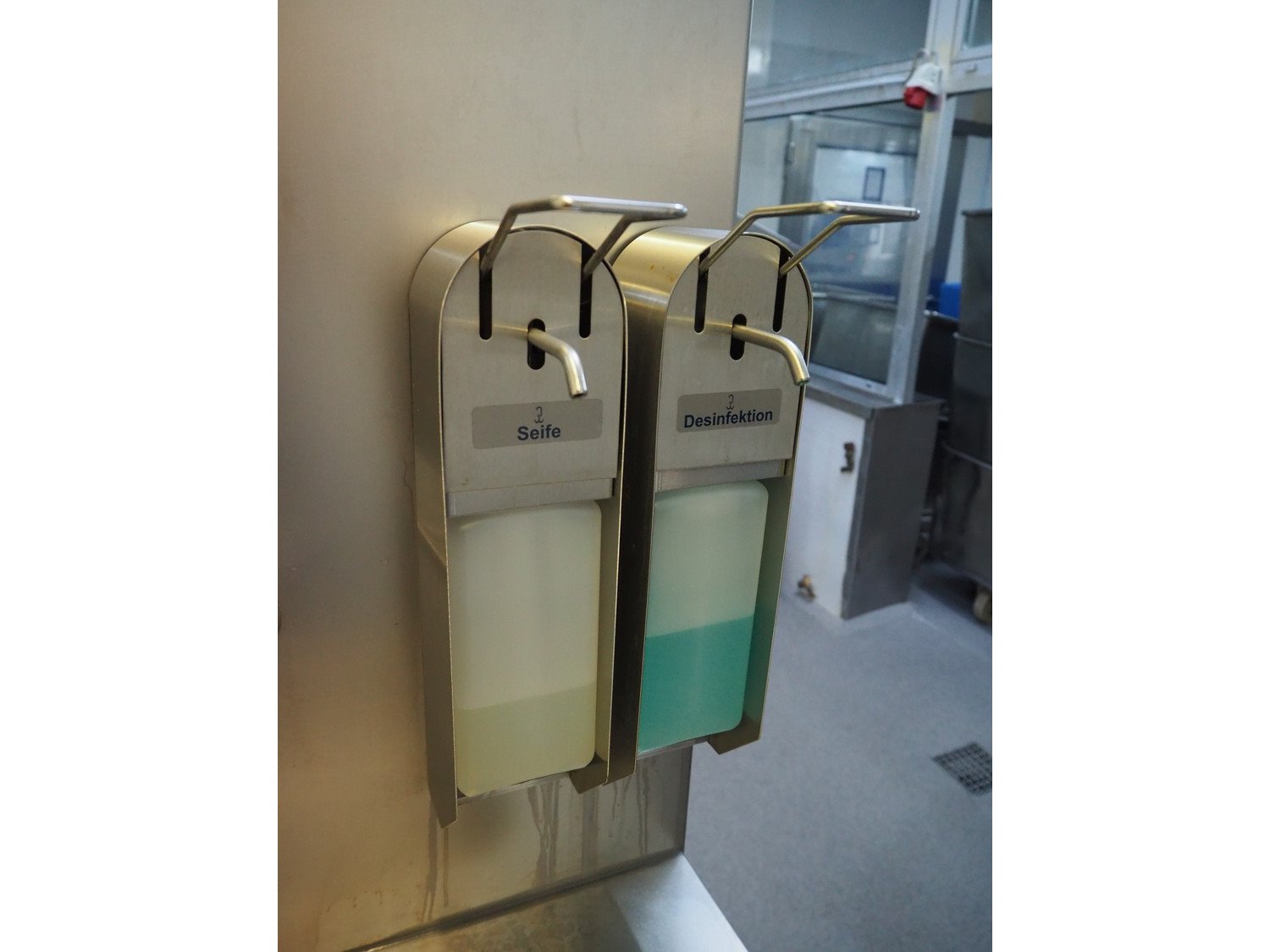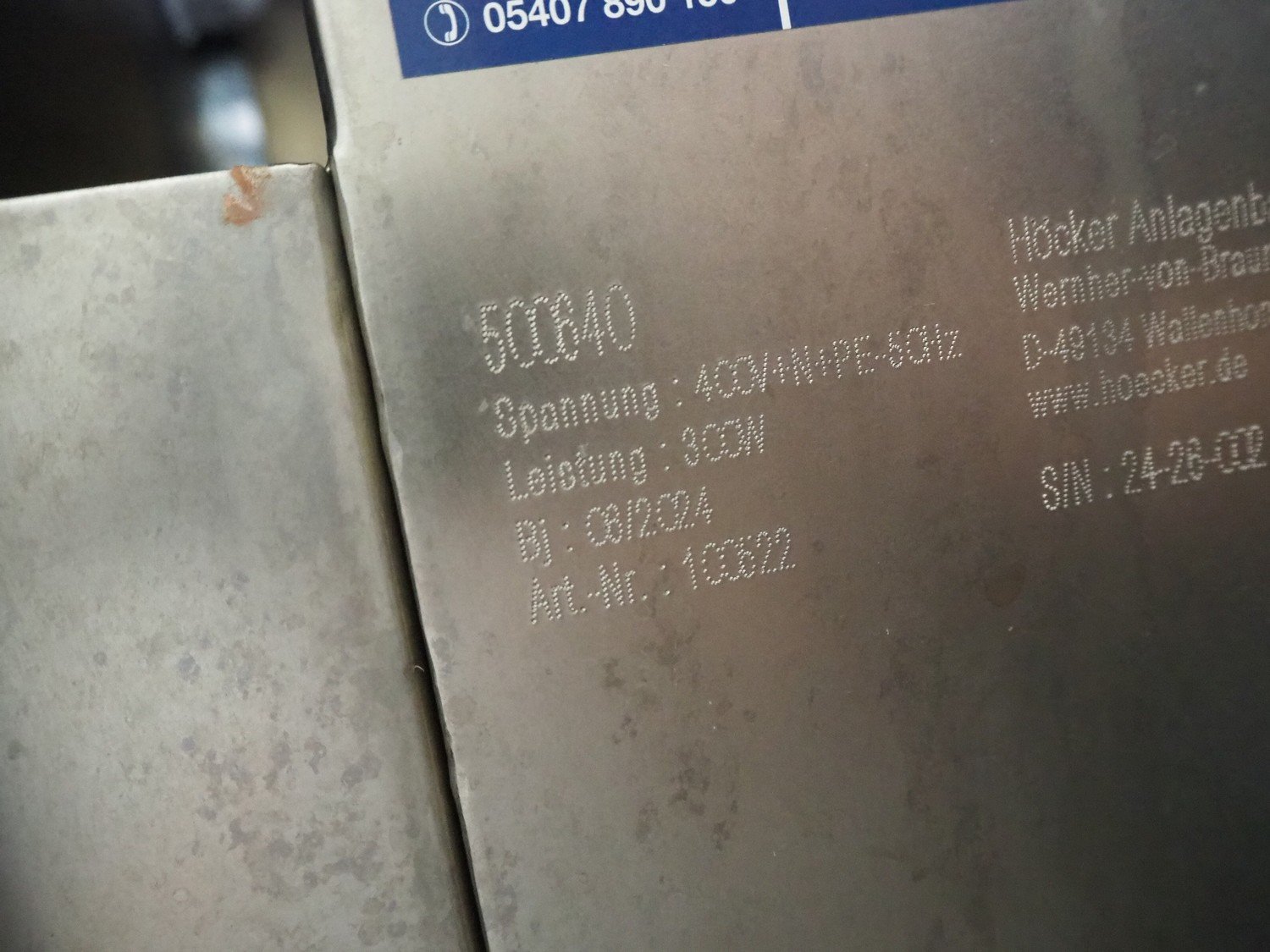 Hӧcker hygiene station consisting of sole cleaner, s/s sink with 1 faucet, paper dispenser, 2 soap dispenser and waste bin, serial number: 24-26-002, year of construction: 2024, 400 V, 3 Ph, 50-60 Hz, 300 W, dimensions: 1100 mm x 600 mm x 1700 mm.