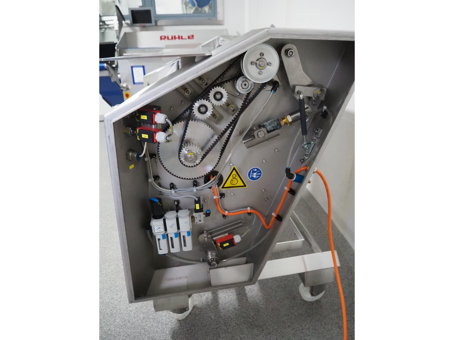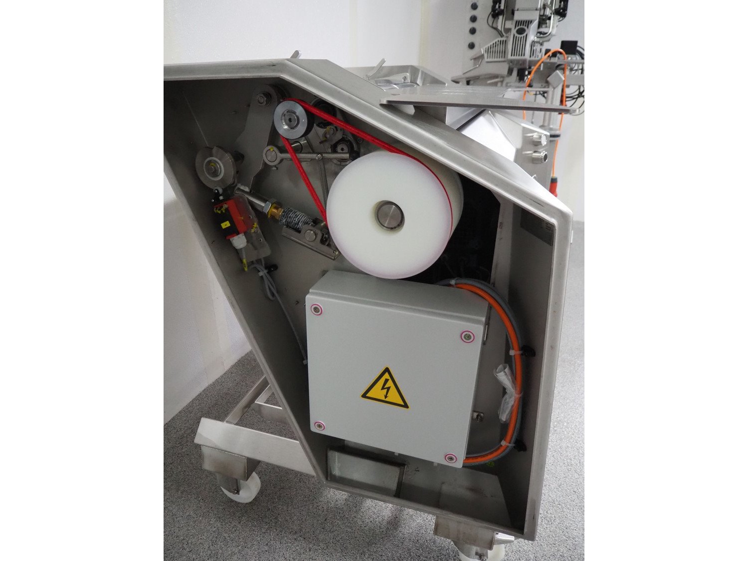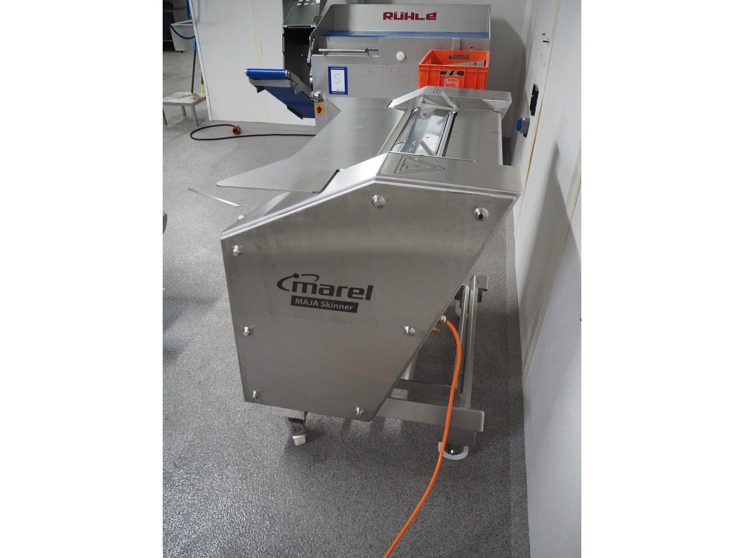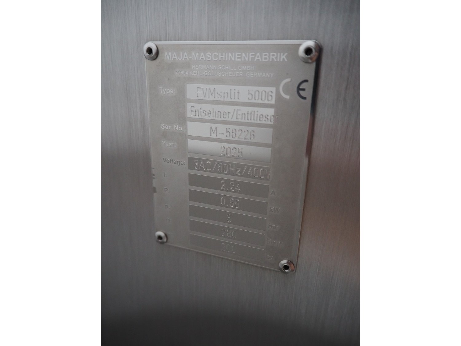 Maja-Maschinenfabrik mobile skinning machine, type: EVMsplit 5006, serial number: M-58226, year of construction: 2025, 400 V, 3 Ph, 50 Hz, 2.24 A, 0.55 kW, 6 bar, 280 liter per minute, weight: 200 kg, working width: 540 mm, foot control, total dimensions: 1000 mm x 750 mm x 1050 mm.